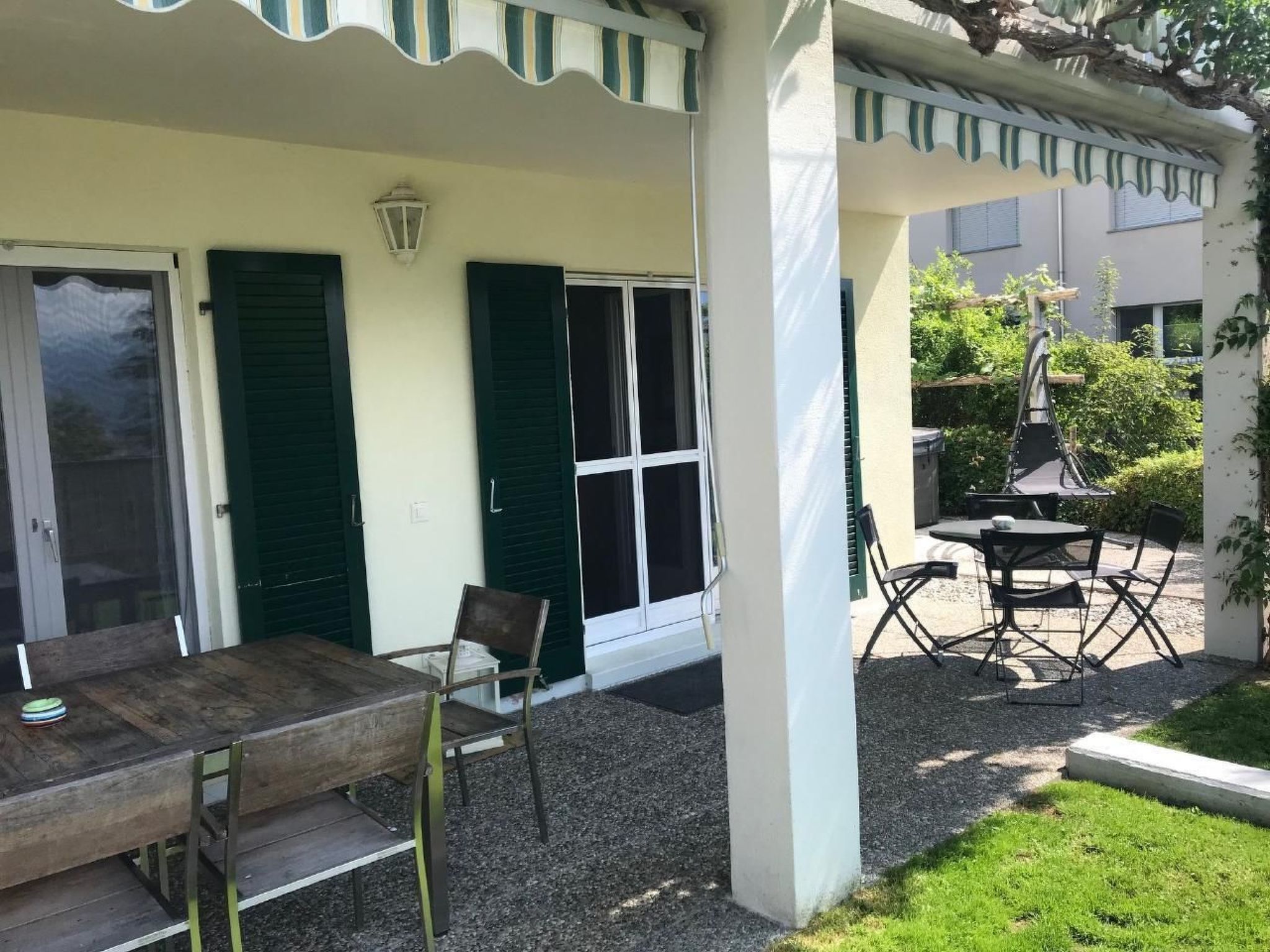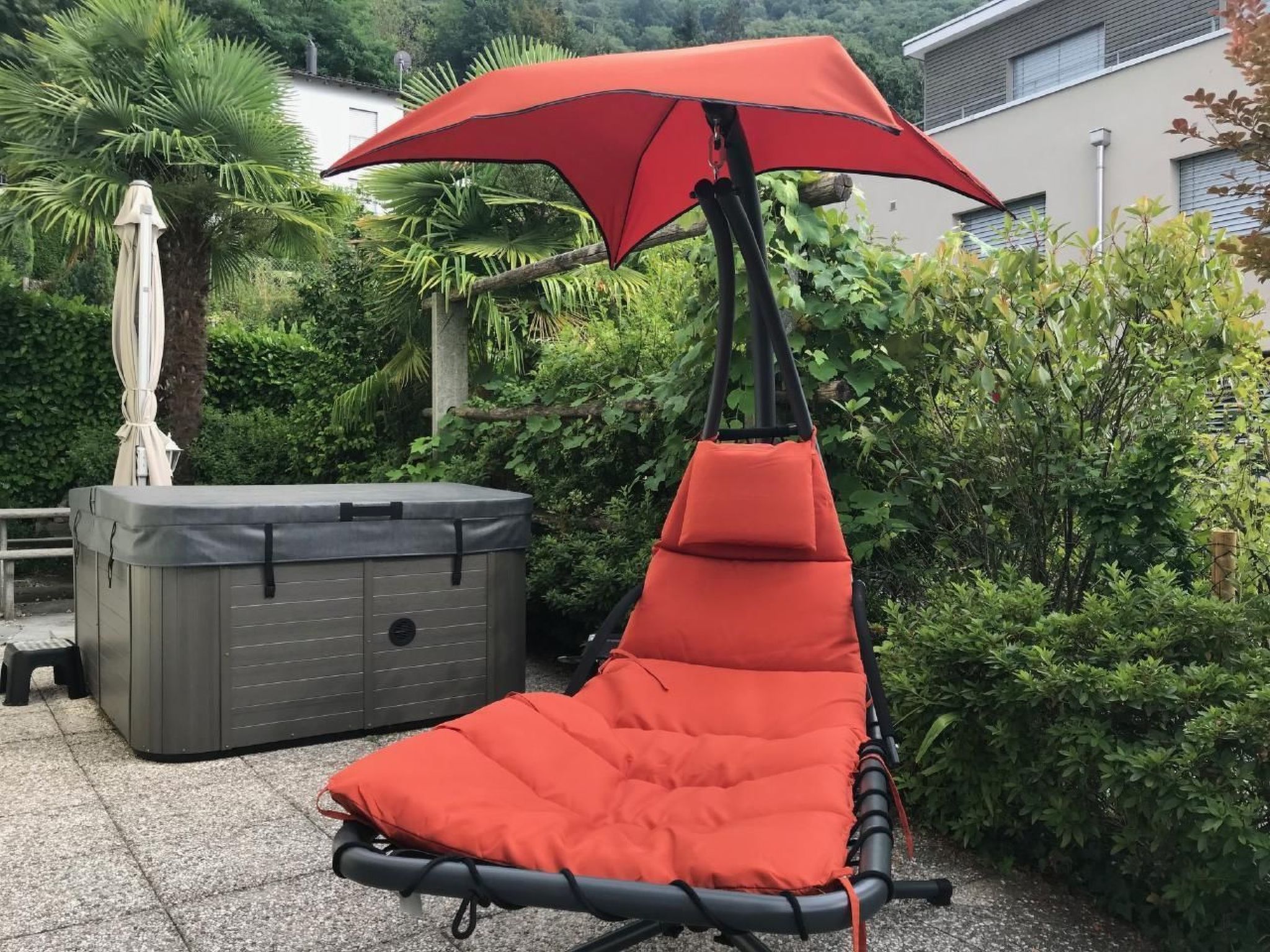 Im Außenbereich des Hauses finden Gäste vielfältige Möglichkeiten zur Erholung und Unterhaltung. Terrassen, teils überdacht und mit Sitzgruppen, eine kleine Liegewiese und ein 3-sitziger Jacuzzi, sowie der Zugang zu einem Gemeinschaftspool bieten Entspannung und Vergnügen in einer spektakulären Umgebung. Diese exzellent gestalteten Außenanlagen laden dazu ein, die malerische Kulisse in vollen Zügen zu genießen.