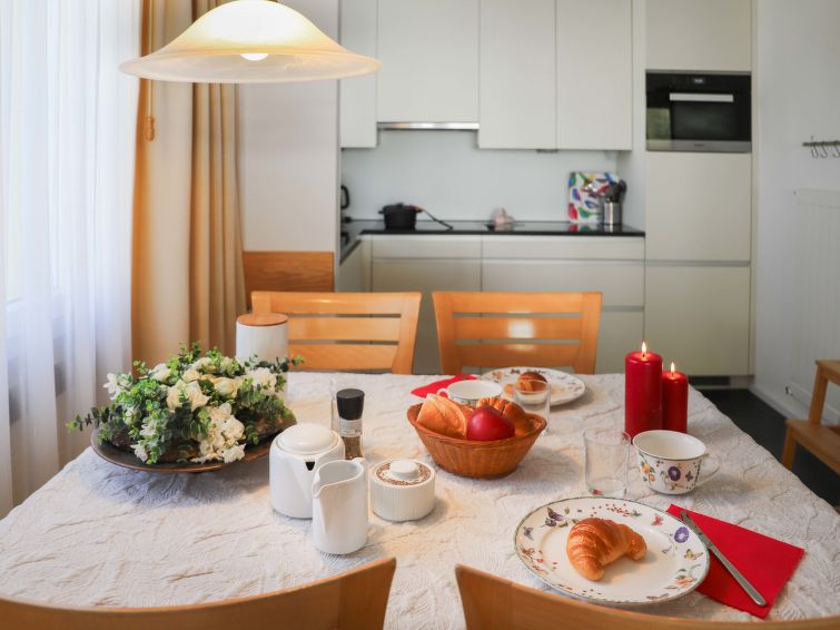 "Attika Wohnung Allod Park Haus C 807", 2-Zimmer-Attikawohnung 65 m2 im 8. Stock, Westlage. Vollständig renoviert im Jahre 2020, sehr geschmackvoll und gemütlich eingerichtet: offenes Wohn-/Esszimmer mit 1 Doppeldiwanbett, Kabel-TV, Flachbildschirm und Radio. Ausgang zur Terrasse. 1 Zimmer mit 1 Doppelbett (2 x 90 cm). Ausgang zur Terrasse, Richtung Westen. Offene Küche (Backofen, Geschirrspüler, 4 Induktionskochplatten, elektrische Kaffeemaschine, Kapseln für die Kaffeemaschine (Nespresso) extra, Fondue Set (Käse)). Bad oder Dusche/WC, Doppelwaschbecken. Heizung. Holzdielenboden. Grosse Terrasse 45 m2, Westlage. Terrassenmöbel, Liegestühle (4). Herrliche Panoramasicht auf die Berge, das Tal und die Ortschaft. Zur Verfügung: Internet (WLAN, gratis). Parkplatz (extra) beim Haus. Bitte beachten: Wohnung auf Strassenseite. Nichtraucher-Unterkunft. Maximal 1 Haustier/Hund erlaubt. Apt Mit Rollstuhl max 70cm erreichbar. Badezimmer Türe 75cm. 13528