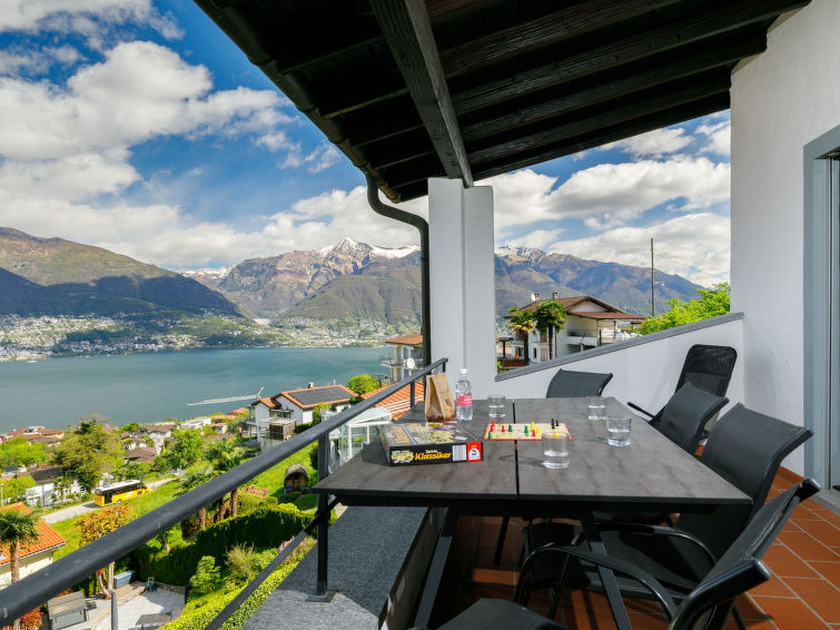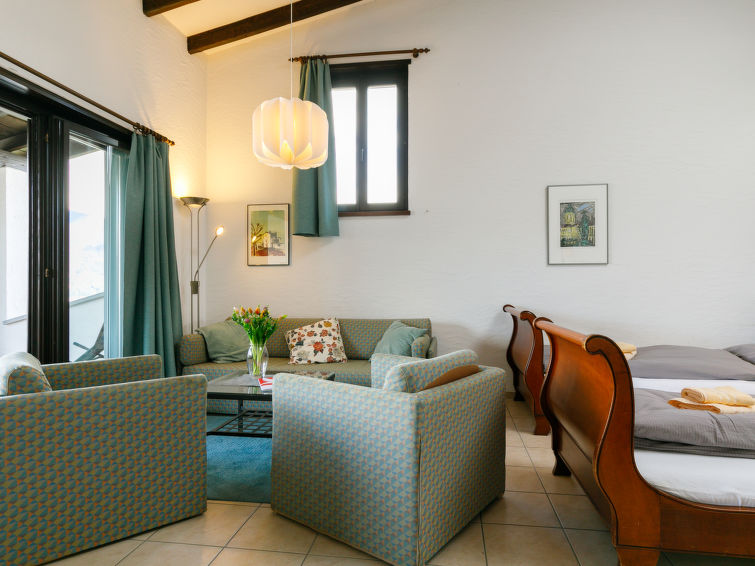 Piazzogna 19 km von Ascona: Moderne, komfortable Residenz "Miralago", umgeben von Bäumen und Wiesen. 4 Häuser in der Residenz. 39 Wohnungen in der Residenz. Oberhalb von Vira (3 km), im Bezirk Gambarogno, ruhige, sonnige, erhöhte Lage am Hang, direkt am Waldrand, 3 km vom See, in einer Sackgasse, Richtung Südosten. Zur Mitbenutzung: Liegewiese, Schwimmbad eckig beheizt (170 - 170 cm tief, saisonale Verfügbarkeit: 15.Apr. - 15.Okt.) mit Innentreppe und Rollladenabdeckung. Aussendusche, Terrasse, Gartenmöbel. In der Anlage: Empfang, Aufenthaltsraum, Zentralheizung, Waschmaschine (zur Mitbenutzung, extra). Zufahrt bis zum Haus zum Grundstück. Parkplatz. Lebensmittelgeschäft, Restaurant 300 m, Bushaltestelle 50 m. Minigolf 4.5 km, Wanderwege ab Haus 100 m. Nahe gelegene Sehenswürdigkeiten: Parco Botanico, Piazzogna 300 m, Mercato Luino IT, Mercato Ponte Tresa IT, Bellinzona Unesco-Mercato, Swissminiature, Melide, Schokomuseum, Caslano. Bekannte Seen in der Umgebung sind gut erreichbar: Lago Maggiore, Lago di Lugano, Lago di Como, Lago Orta. Wandergebiete: Gambarogno, Indemini, Monte Tamaro und Splash and SPA, Rivera, Locarno - Ascona Cardada. Die vier typischen Tessiner Häuser verfügen über einen herrlichen Rundblick über den See. Pro Wohnung ist 1 Parkplatz gratis, jeder weitere kostet CHF 35.00/Woche. Wichtig, Bitte beachten: Der Pool ist unbeaufsichtigt und die Benützung erfolgt auf eigene Gefahr. Die Aufsichtspflicht für Kinder muss durch die Eltern wahrgenommen werden.