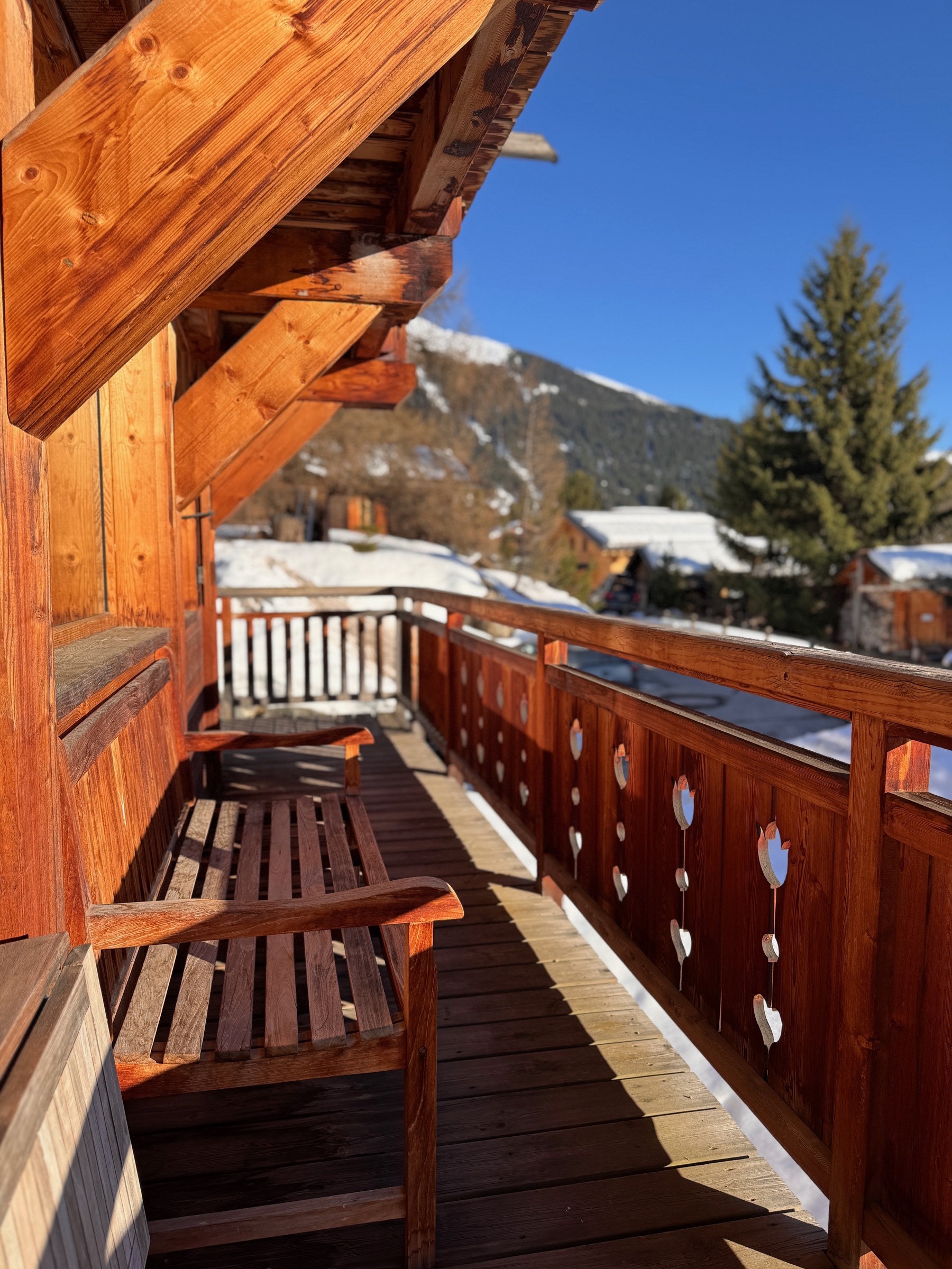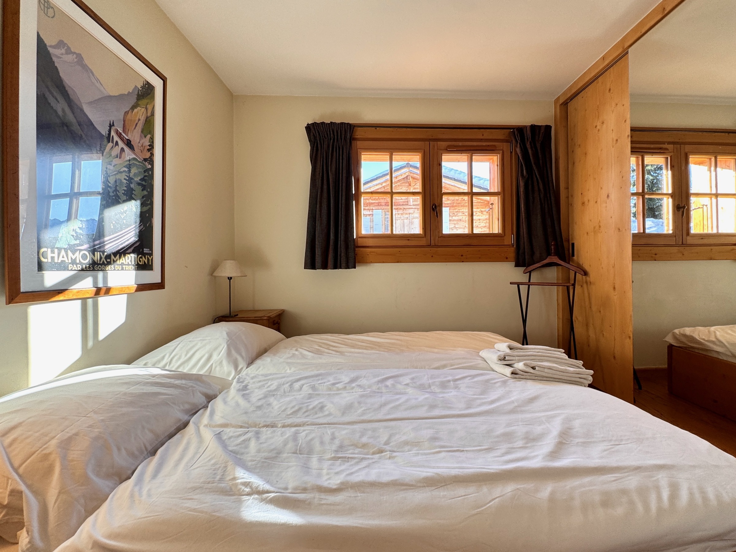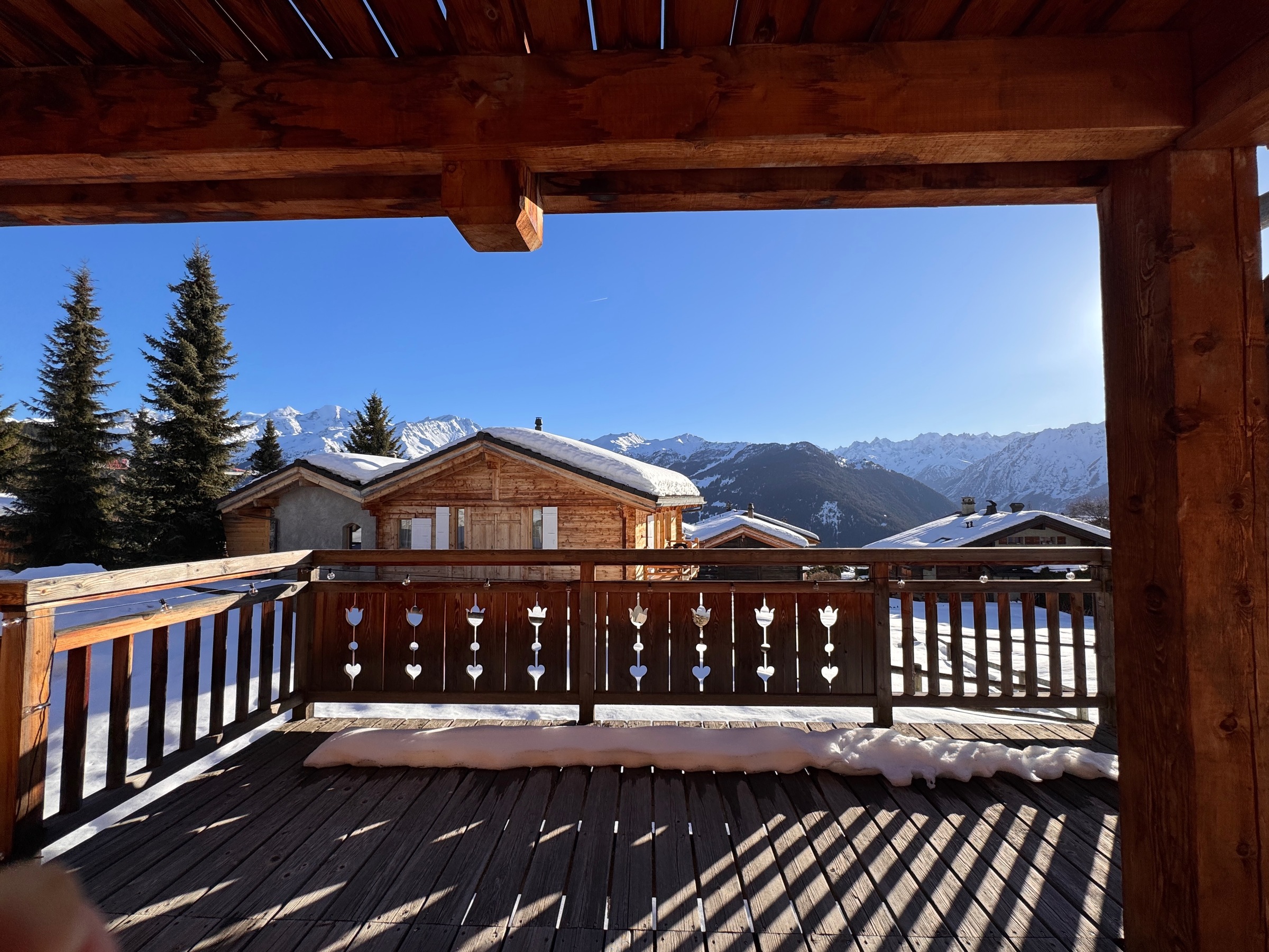 Charming south-facing free-standing chalet maintained with care by its owners which sleeps six people in three bedrooms all with their own ensuite bathrooms. Master bedroom enjoys a dedicated balcony with 180 degree views. Master bathroom has a spacious shower and full length bath.