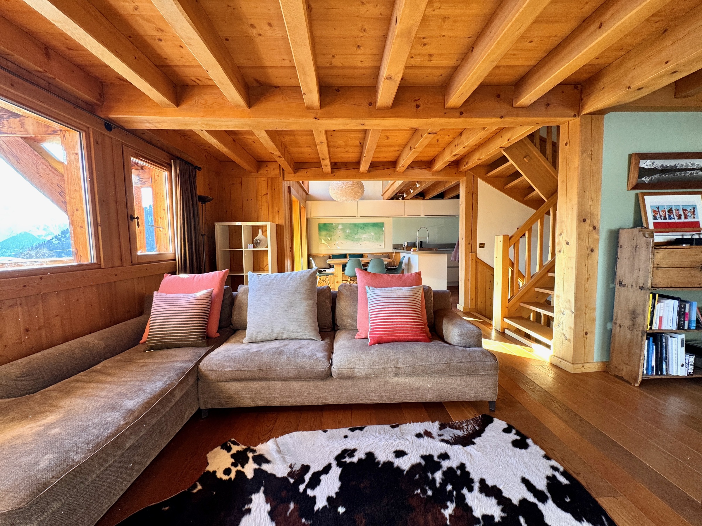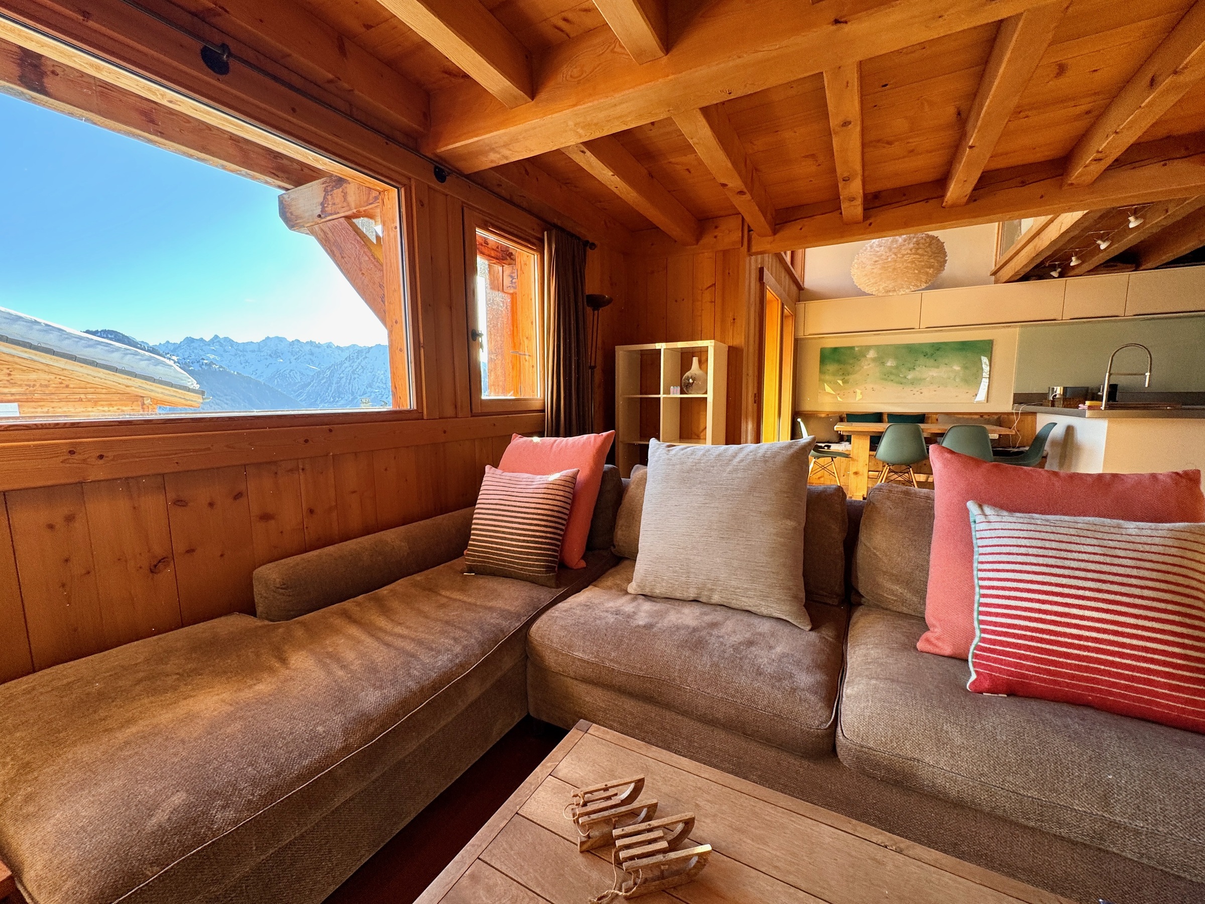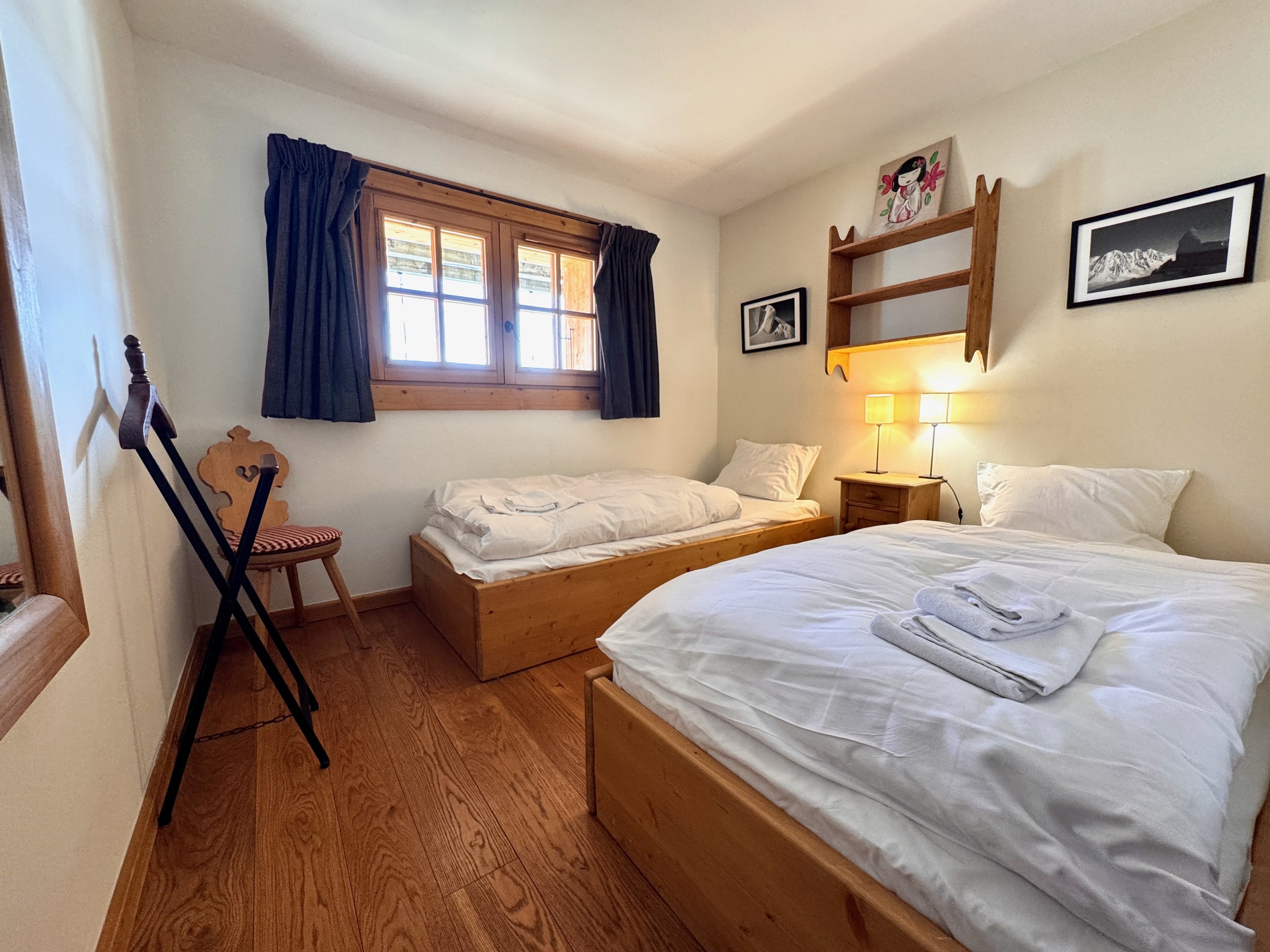 Charming south-facing free-standing chalet maintained with care by its owners which sleeps six people in three bedrooms all with their own ensuite bathrooms. Master bedroom enjoys a dedicated balcony with 180 degree views. Master bathroom has a spacious shower and full length bath.
