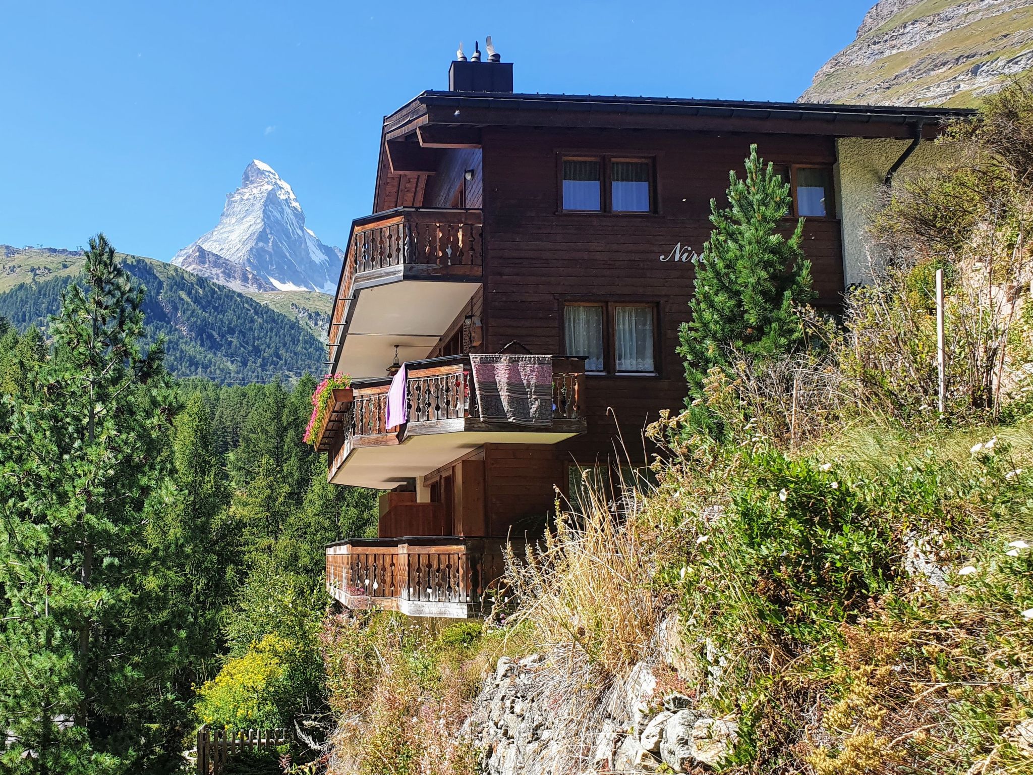 Schönes Mehrfamilienhaus "Nirwana", auf 4 Stockwerken. Im Ortsteil Schluhmatte, 1.7 km vom Zentrum von Zermatt, ruhige Lage. Im Hause: Skiraum, Zentralheizung. Lebensmittelgeschäft 950 m, Supermarkt 1.4 km, Restaurant 95 m, Bäckerei 950 m, Zentrum zu Fuss in 15 Minuten erreichbar, Bushaltestelle "Schluhmatt" 95 m, Bahnstation "Bahnhof Zermatt" 1.7 km. Bergeisenbahn 300 m, Skiverleih 300 m, Skibushaltestelle 95 m, Skischule 1.3 km. Bitte beachten: Babyausstattung auf Anfrage. Taxi kann nicht bis zum Haus fahren. Die Schlüsselübergabe findet bei der Agentur Interhome in Zermatt statt.