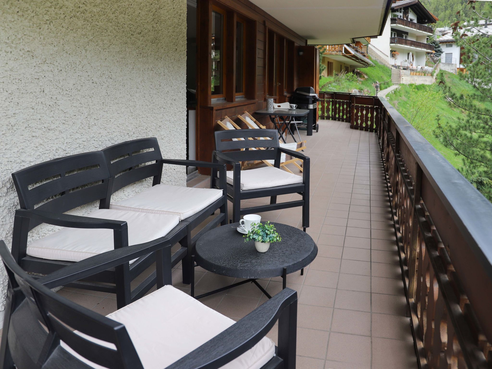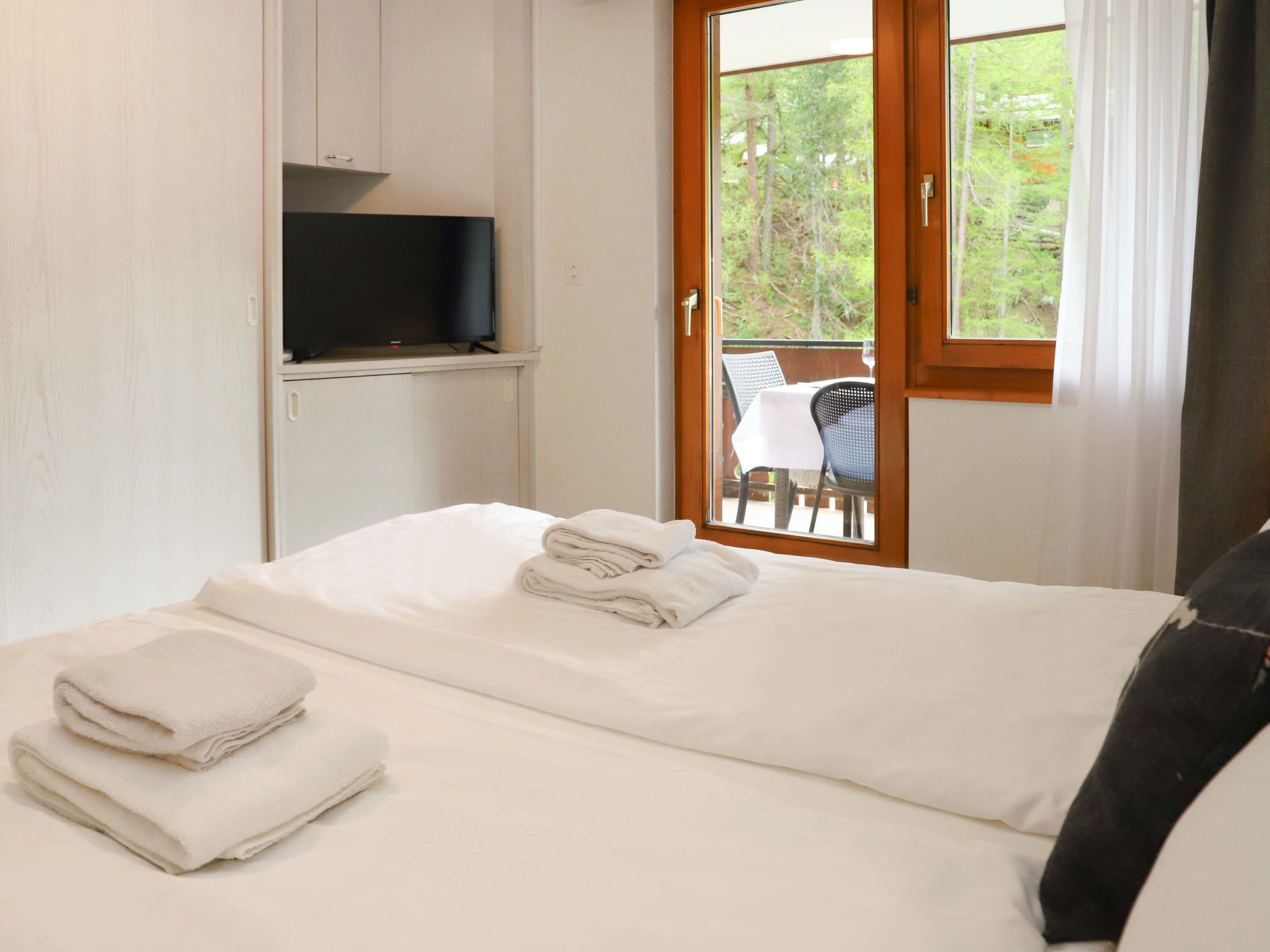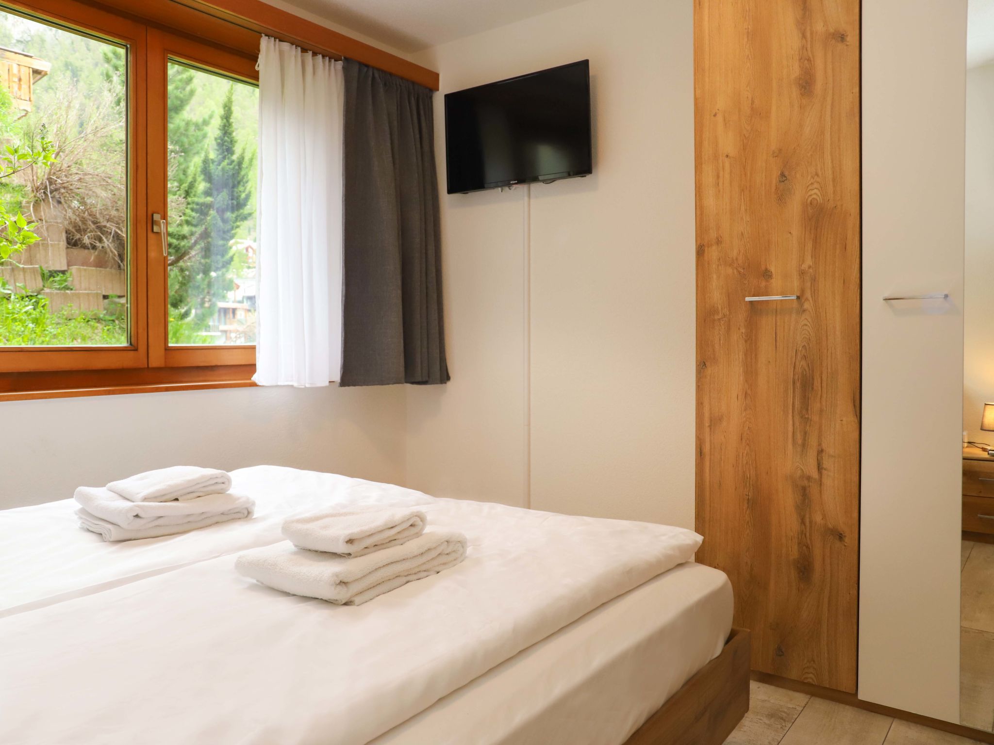 4-Zimmer-Wohnung 101 m2, im Erdgeschoss. Hell, renoviert im Jahre 2021, schön und modern eingerichtet: Wohn-/Esszimmer mit Schwedenofen, Esstisch und TV. Ausgang zum Balkon. 1 Doppelzimmer mit 1 Doppelbett (2 x 90 cm, Länge 200 cm), TV. Ausgang zum Balkon. 1 Doppelzimmer mit 1 Doppelbett (1 x 160 cm, Länge 200 cm), TV. 1 Doppelzimmer mit 1 Doppelbett (2 x 90 cm, Länge 200 cm), TV. Offene Küche (Backofen, Geschirrspüler, 4 Glaskeramikplatten, Toaster, Wasserkocher, Tiefkühler, elektrische Kaffeemaschine, Racletteofen, Kombinationsmikrowelle, Fondue Set (Käse)). Bad/WC, Dusche/WC. Bodenheizung. Grosser Balkon 32 m2. Balkonmöbel, Elektrogrill. Schöne Sicht auf das Matterhorn. Zur Verfügung: Waschmaschine, Wäschetrockner. Internet (Wireless LAN, gratis). Bitte beachten: Nichtraucher-Unterkunft.