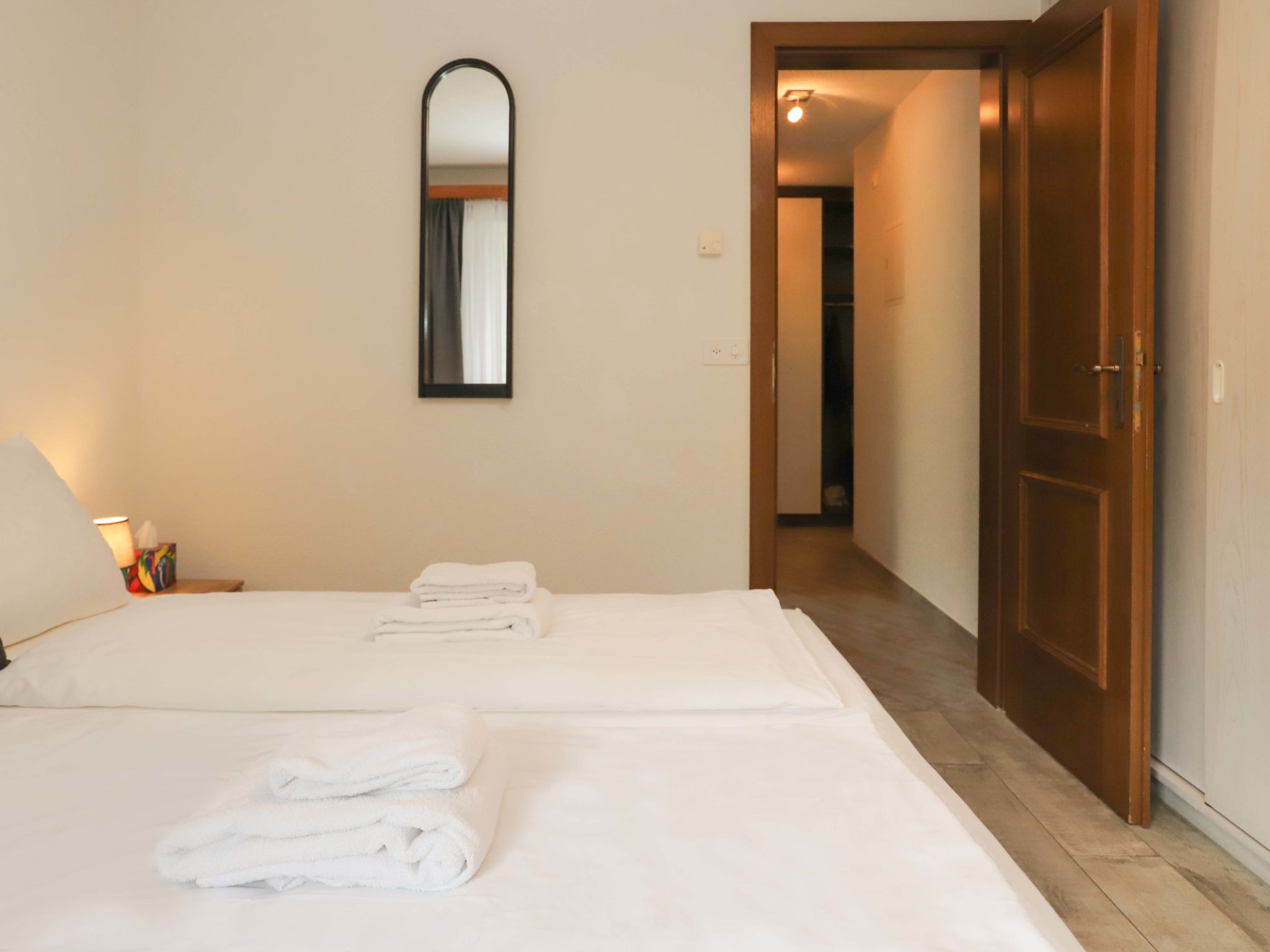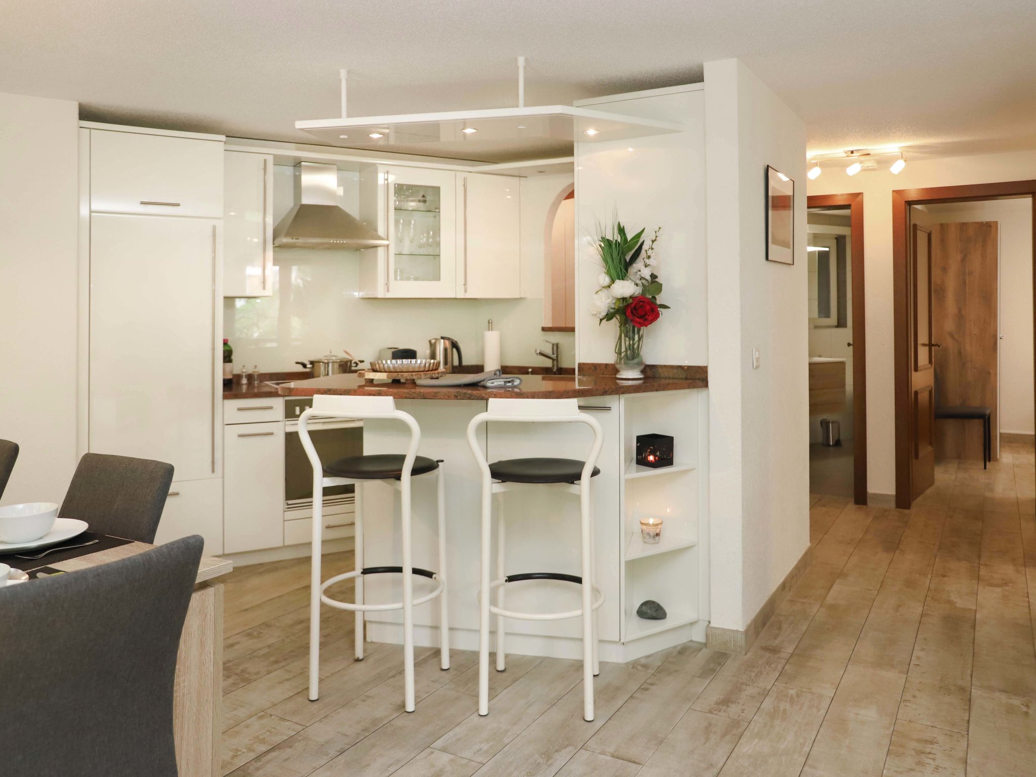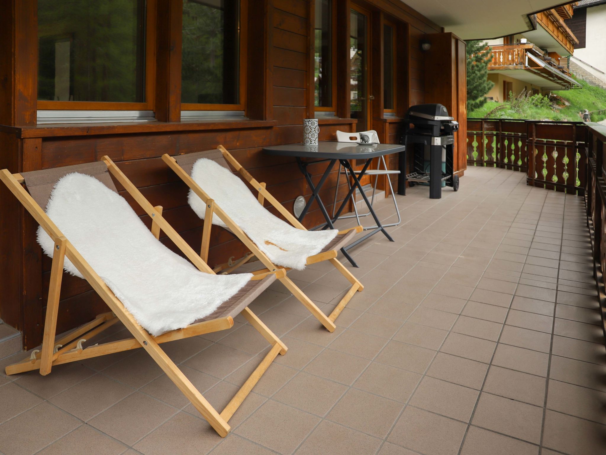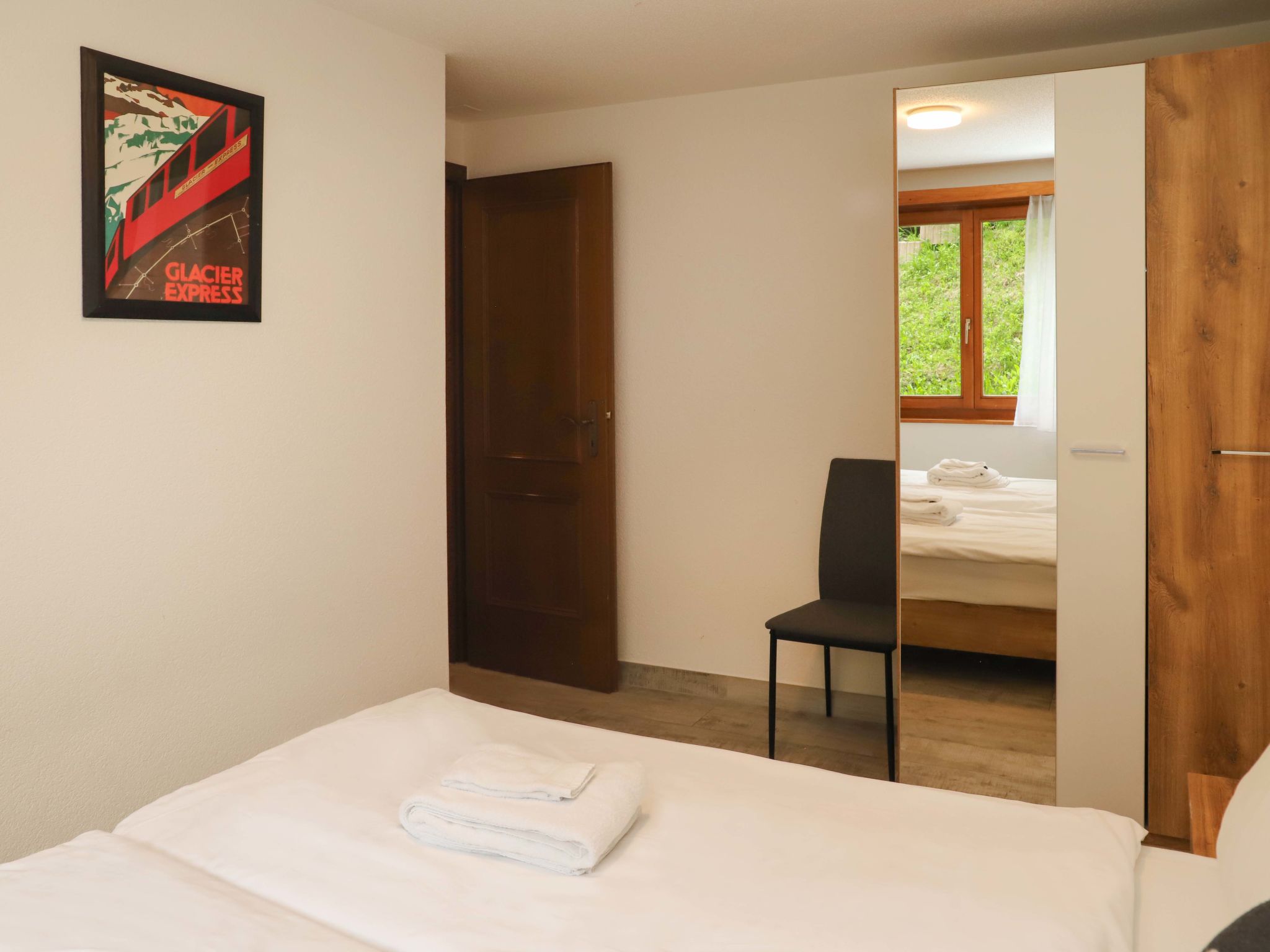4-Zimmer-Wohnung 101 m2, im Erdgeschoss. Hell, renoviert im Jahre 2021, schön und modern eingerichtet: Wohn-/Esszimmer mit Schwedenofen, Esstisch und TV. Ausgang zum Balkon. 1 Doppelzimmer mit 1 Doppelbett (2 x 90 cm, Länge 200 cm), TV. Ausgang zum Balkon. 1 Doppelzimmer mit 1 Doppelbett (1 x 160 cm, Länge 200 cm), TV. 1 Doppelzimmer mit 1 Doppelbett (2 x 90 cm, Länge 200 cm), TV. Offene Küche (Backofen, Geschirrspüler, 4 Glaskeramikplatten, Toaster, Wasserkocher, Tiefkühler, elektrische Kaffeemaschine, Racletteofen, Kombinationsmikrowelle, Fondue Set (Käse)). Bad/WC, Dusche/WC. Bodenheizung. Grosser Balkon 32 m2. Balkonmöbel, Elektrogrill. Schöne Sicht auf das Matterhorn. Zur Verfügung: Waschmaschine, Wäschetrockner. Internet (Wireless LAN, gratis). Bitte beachten: Nichtraucher-Unterkunft.