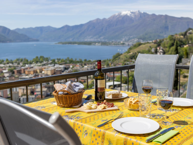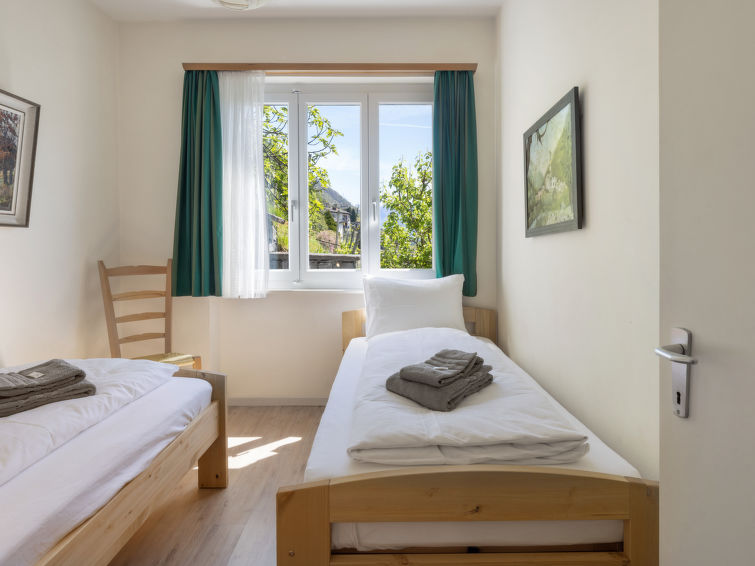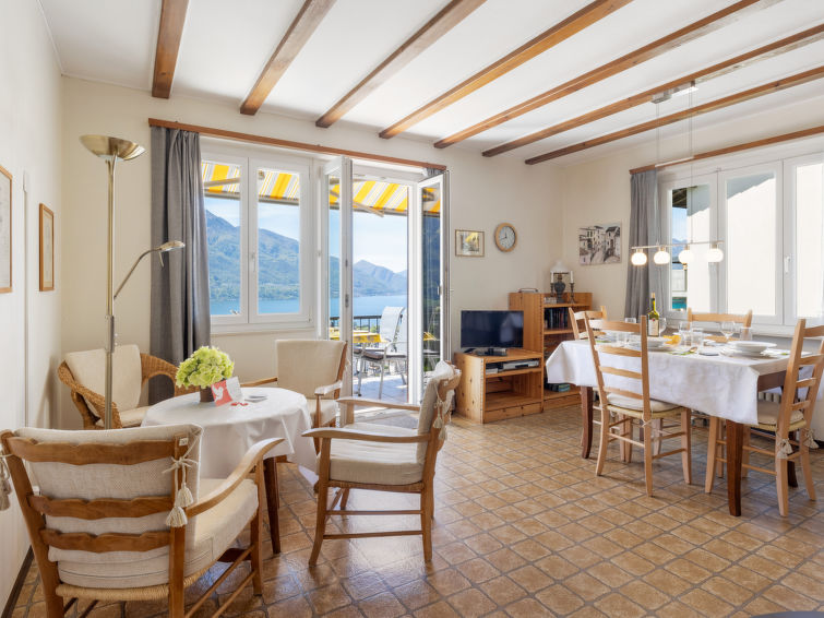 "Fontanella Amazingview", 3-Zimmer-Haus 60 m2. Komfortabel und gemütlich eingerichtet: Wohnzimmer mit Esstisch und TV (Flachbildschirm). Ausgang zum Balkon. 2 Zimmer, jedes Zimmer mit 2 Betten (90 cm, Länge 200 cm). Kleine Küche (Backofen, Toaster, Wasserkocher, Grill, elektrische Kaffeemaschine, Kapseln für die Kaffeemaschine (Nespresso mitbringen) extra, Fondue Set (Käse)). Dusche/WC. E-Heizung. Balkon. Liegestühle (2). Sehr schöne Panoramasicht auf den See, die Berge und die Landschaft. Zur Verfügung: Bügeleisen, Kinderhochstuhl, Babybett bis 2 Jahre (extra), Haartrockner. Internet (Wireless LAN, gratis). Parkplatz beim Haus. Bitte beachten: Nichtraucher-Unterkunft. Maximal 1 Haustier/Hund erlaubt. NL-00005244