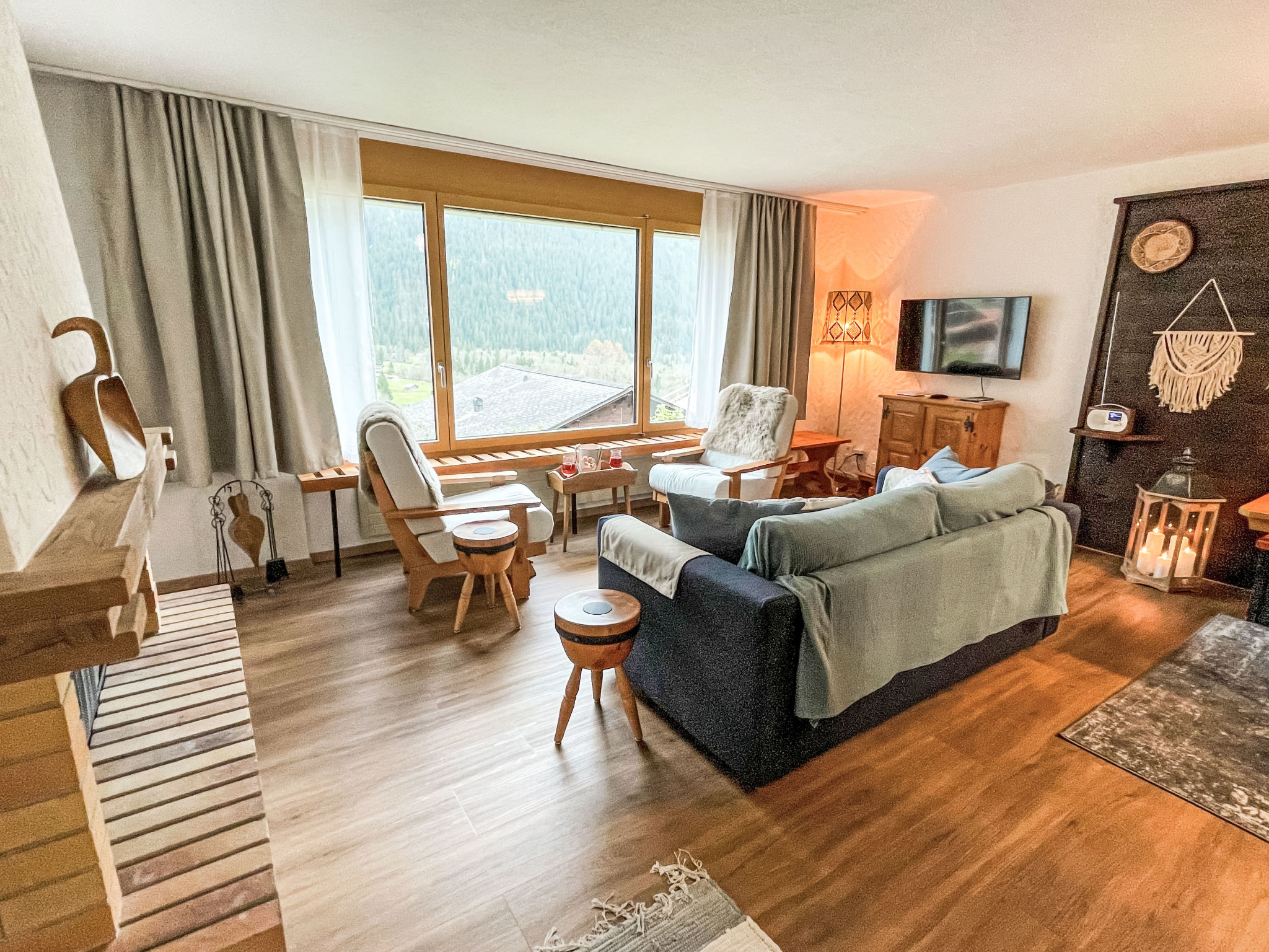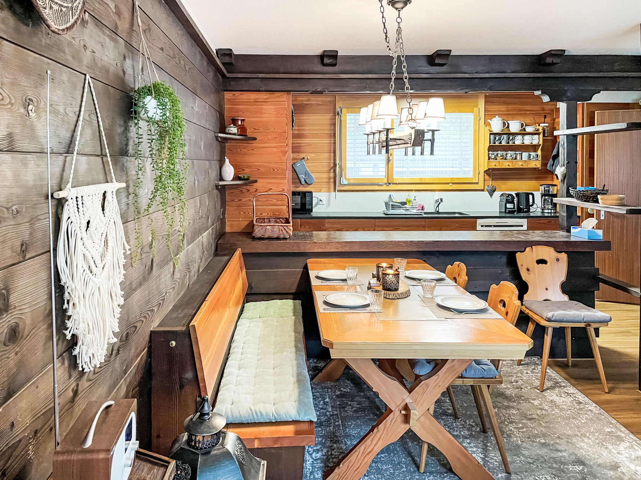 "SnowKaya Grindelwald", 2-Zimmer-Wohnung 65 m2, im erhöhten Erdgeschoss, Südlage. Hell, gemütlich eingerichtet: Wohn-/Schlafzimmer mit 2 Betten (90 cm, Länge 200 cm), offenem Kamin, Kabel-TV, Flachbildschirm und Radio. Ausgang zum Balkon, Richtung Süden. 1 Doppelzimmer. Ausgang zum Balkon. Offene Küche (4 Kochplatten, Backofen, 4 Glaskeramikplatten, Toaster, Mikrowelle, elektrische Kaffeemaschine, Kapseln für die Kaffeemaschine (Nespresso) extra, Racletteofen, Fondue Set (Käse)) mit Durchreiche. Bad/WC. Balkon 9 m2, Südlage. Balkonmöbel. Herrliche Sicht auf die Berge und Eigernordwand. Zur Verfügung: Internet (Wireless LAN, gratis). Parkplatz, Garage beim Haus. Bitte beachten: geeignet für Familien. Nichtraucher-Unterkunft. Eigener Eingang.