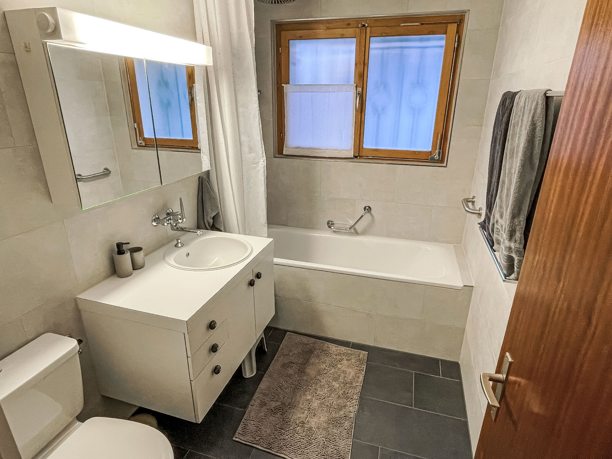 Mehrfamilienhaus "Casa Almis". Im Ortsteil Almis, 300 m vom Zentrum, exzellente Lage: Absolut zentral und dennoch ruhig, Richtung Süden. Im Hause: Skiraum, Zentralheizung, Waschmaschine, Wäschetrockner, Trockenraum. Im Winter bitte Schneeketten mitbringen. Parkplatz beim Haus, Einzelgarage. Einkaufszentrum 300 m, Restaurant 200 m, Bar, Bäckerei 400 m, Bushaltestelle 250 m, Bahnstation "Grindelwald Dorf" 800 m, Hallenbad 600 m. Golfplatz (6 Loch) 2 km, Tennis 1.5 km, Minigolf 500 m, Sportzentrum 700 m, Gondelbahn 300 m, Skiverleih 250 m, Skibushaltestelle 250 m, Langlaufloipe 1.5 km. Bekannte Skigebiete sind gut erreichbar: First, 250 m, kl. Scheidegg/Männlichen 3 km. Bekannte Seen in der Umgebung sind gut erreichbar: Thuner-/Brienzersee 18 km. Bitte beachten: kein Fahrstuhl vorhanden. Geeignet für Familien. Gratis Skibus. Der gratis Skibus fährt zum Skigebiet kl. Scheidegg/Männlichen. Die Schlüsselübergabe findet bei der Agentur Interhome in Grindelwald statt.