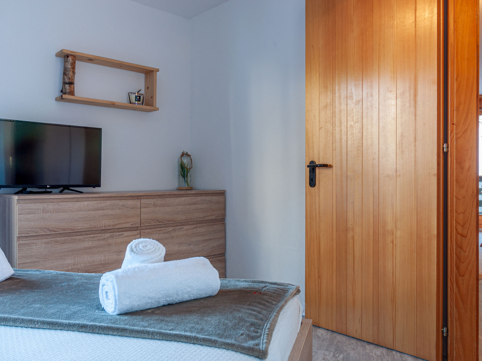 "Mont-Fort 26", 2-Zimmer-Wohnung 40 m2 im 2. Stock. Objekt geeignet für 2 Erwachsene + 1 Kind. Renoviert im Jahre 2023, komfortabel und schön eingerichtet: Wohn-/Esszimmer mit 1 Diwanbett (120 cm, Länge 190 cm), Kabel-TV. 1 Zimmer mit 1 franz. Bett (160 cm, Länge 200 cm), Kabel-TV. Ausgang zum Balkon. Offene Küche (Backofen, 2 Glaskeramikplatten, Toaster, Wasserkocher, Mikrowelle, elektrische Kaffeemaschine, Kapseln für die Kaffeemaschine (Dolce Gusto) extra, Fondue Set (Chinoise, Käse)). Bad/WC. 2 Balkone, Ostlage und Nordlage. Balkonmöbel, Gartengrill. Sicht auf die Berge. Zur Verfügung: Internet (WLAN, gratis). Parkplatz Nr. 10 in 400 m. Bitte beachten: Nichtraucher-Unterkunft.