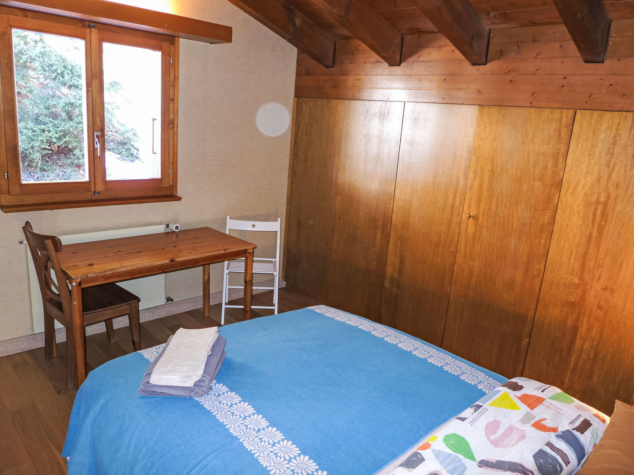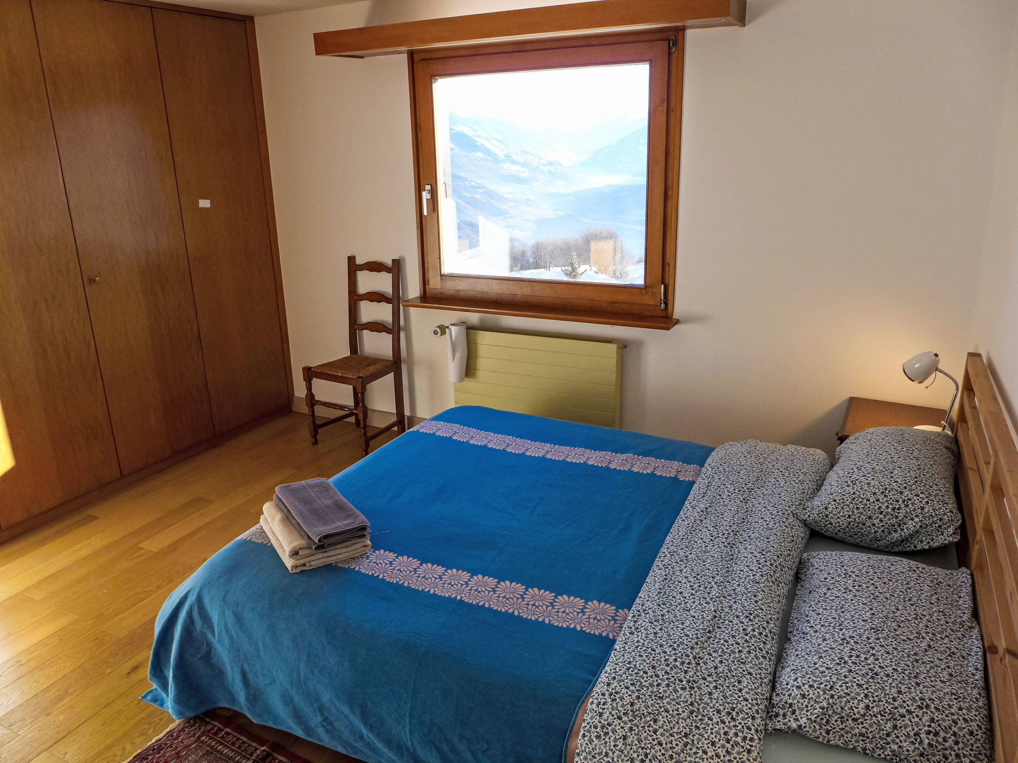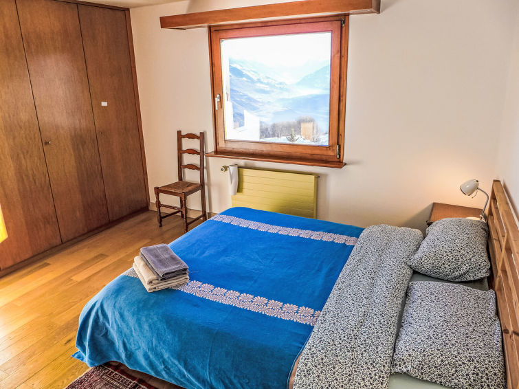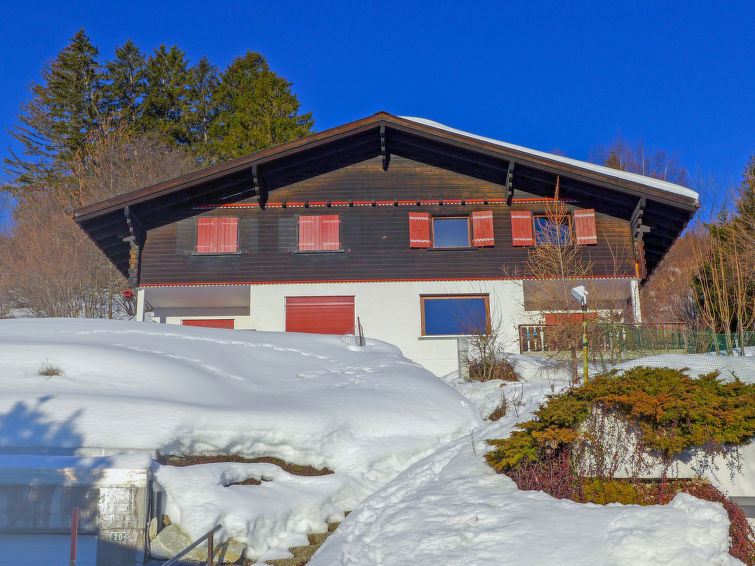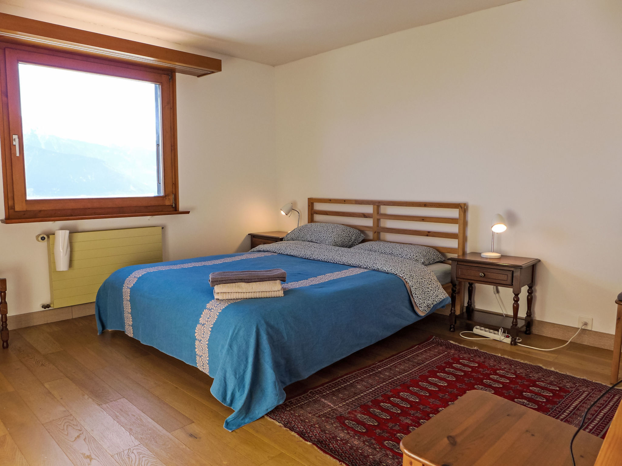 "Chalet Aglaia", 5-Zimmer-Chalet 220 m2 auf 3 Stockwerken, Südlage. Objekt geeignet für 8 Erwachsene + 2 Kinder. Geräumig, komfortabel und schön eingerichtet: Wohn-/Esszimmer mit offenem Kamin, Kabel-TV und Flachbildschirm. Ausgang zum Balkon. Küche (Backofen, Geschirrspüler, 4 Glaskeramikplatten, Toaster, Wasserkocher, Mikrowelle, Tiefkühler, elektrische Kaffeemaschine, Racletteofen, Fondue Set (Käse)). Ausgang zur Terrasse. Unteres Geschoss: 1 Zimmer mit 2 Betten (90 cm, Länge 200 cm), sep. WC. Obergeschoss: 1 abgeschrägtes grosses Zimmer mit 2 Betten (80 cm, Länge 200 cm), 1 franz. Bett (160 cm, Länge 200 cm). 1 Zimmer mit 1 franz. Bett (160 cm, Länge 200 cm). 1 abgeschrägtes Zimmer mit 1 franz. Bett (140 cm, Länge 200 cm). Bad/WC, Dusche/WC. Grosser Balkon, Südlage und Ostlage, kleine Terrasse, Nordlage und Ostlage. Balkonmöbel, Gartengrill (mobil), Liegestühle (2). Sehr schöne Sicht auf die Berge, das Tal und die Landschaft. Zur Verfügung: Waschmaschine, Bügeleisen, Kinderhochstuhl, Babybett bis 3 Jahre, Haartrockner. Internet (WLAN, gratis). Garage (2 Autos) beim Haus, Höhe 190 cm, Breite 230 cm. Bitte beachten: geeignet für Familien. Nichtraucher-Haus. Babybett ohne Bettwäsche und ohne Decke. Nach 22 Uhr ist es verboten, Lärm zu machen, da die Umgebung sehr lärmempfindlich ist.