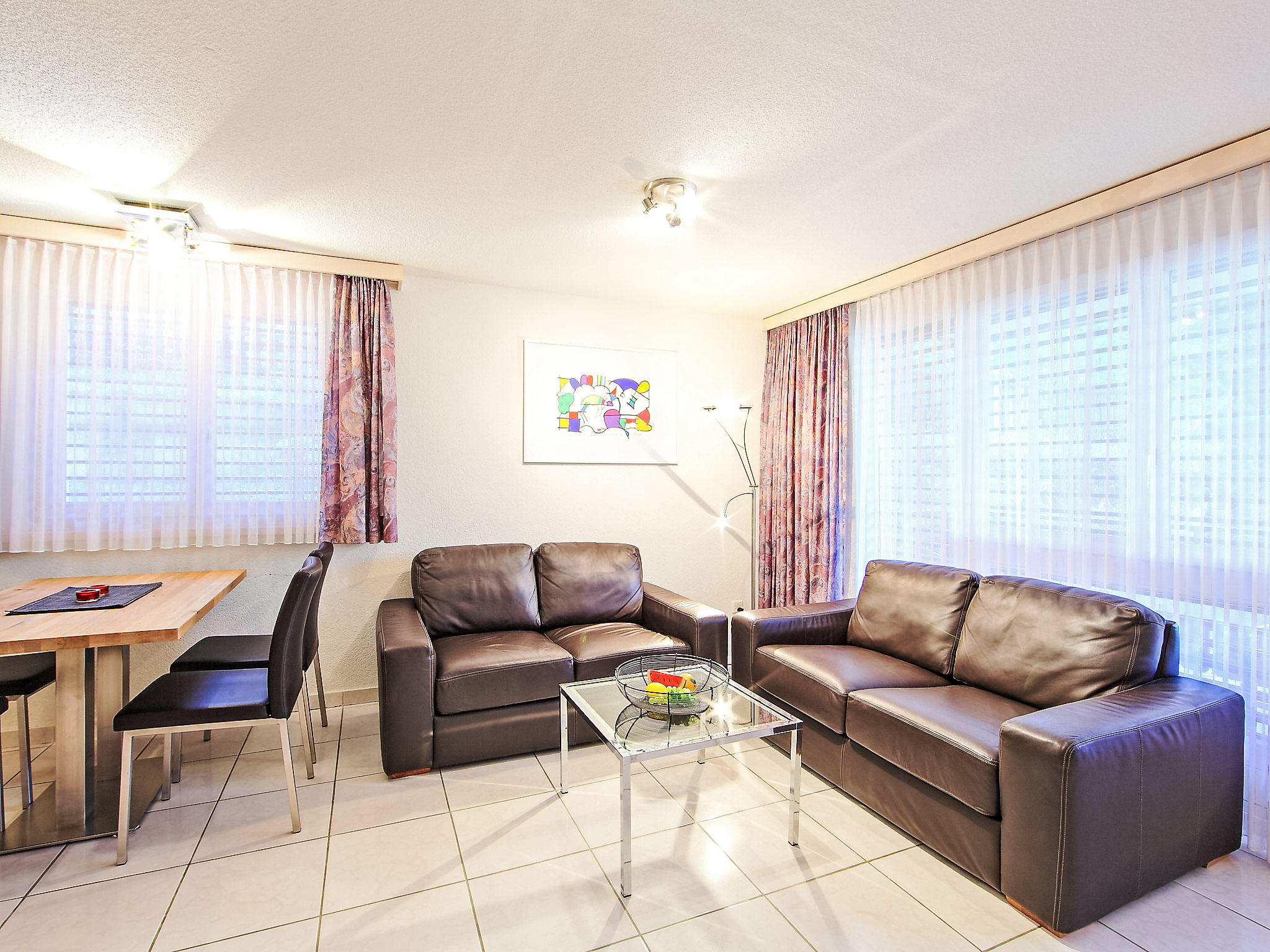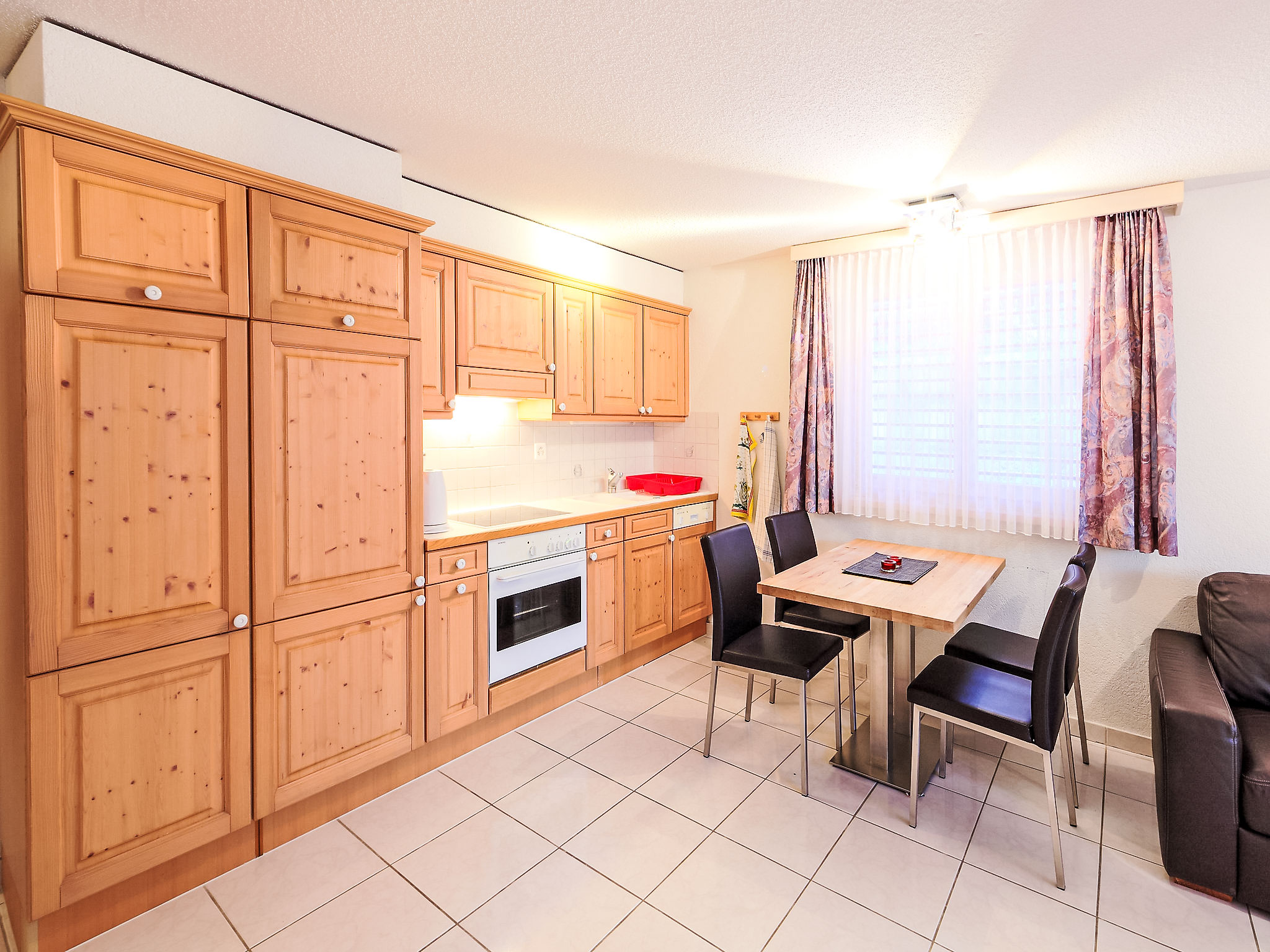 2-Zimmer-Wohnung 47 m2 im 4. Stock. Schön und gemütlich eingerichtet: Wohn-/Esszimmer mit 1 Doppelwandklappbett (2 x 90 cm, Länge 200 cm), TV und Radio. Ausgang zum Balkon. 1 Doppelzimmer mit 2 Betten (90 cm, Länge 200 cm). Offene Küche (Backofen, Geschirrspüler, 4 Glaskeramikplatten, Toaster, Wasserkocher, Tiefkühler, elektrische Kaffeemaschine, Fondue Set (Käse)). Bad/WC. Bodenheizung. Balkon 8 m2, Südlage und Westlage. Balkonmöbel. Schöne Sicht auf das Matterhorn. Zur Verfügung: Haartrockner. Internet (Wireless LAN, gratis). Bitte beachten: Nichtraucher-Unterkunft. Maximal 1 Haustier/Hund erlaubt.