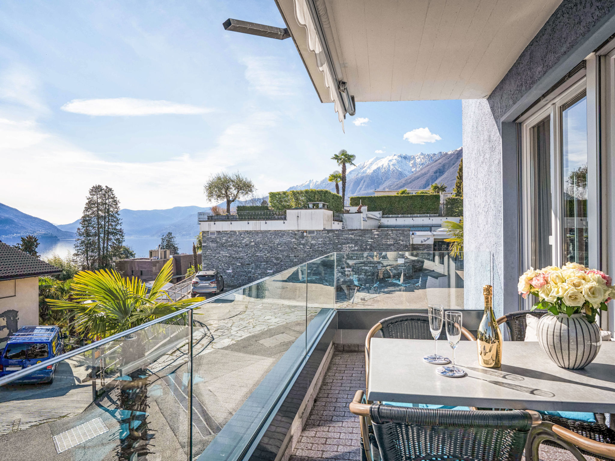 Ascona: Modernes Haus "Palazzo Miralago", auf 4 Stockwerken, Baujahr 1960, renoviert. 22 Wohnungen im Ferienhaus. Oberhalb von Ascona, 400 m vom Zentrum von Ascona, im Bezirk Lago Maggiore, ruhige, sonnige Lage am Hang, 400 m vom See. Im Hause: Empfang, Wireless LAN, Fahrstuhl, Einstellraum für Fahrräder, Zentralheizung, Waschmaschine (extra), Wäschetrockner (zur Mitbenutzung, extra). Brötchenservice möglich. Parkplatz (beschränkte Anzahl, extra) auf dem Grundstück, Gemeinschaftsgarage (extra). Parkplatz/Garage nur für kleine - mittlere Fahrzeuge geeignet. Maße: Höhe 205 cm Breite 220 cm. Einkaufsgeschäft 400 m, Lebensmittelgeschäft, Supermarkt 600 m, Einkaufszentrum 1.4 km, Bäckerei, Fußgängerzone 400 m, Zentrum zu Fuss in 10 Minuten erreichbar, Bushaltestelle "Ascona Centro (Bus Nr. 1)" 400 m, Bahnstation "SBB-CFF Locarno-Muralto" 4.7 km, Sandstrand "Bagno Pubblico Ascona" 1.3 km, Badesee "Lago Maggiore" 1.3 km, See Lago Maggiore 500 m. Golfplatz (18 Loch) 1 km, Tennis 1 km. Nahe gelegene Sehenswürdigkeiten: Madonana del Sasso, Orselina, Locarno-Ascona, Ronco sopra Ascona, Falconeria, Kamelienpark, Piazza Grande, Castelli di Bellinzona, Monte Verità, Ascona, Brissago Inseln. Bekannte Seen in der Umgebung sind gut erreichbar: Lago Maggiore, Lago di Lugano, Lago di Como, Lago di Orta. Wandergebiete: Monte Veritè, Ronco s. Ascona, Valle Maggia, VMonte Tamaro - Monte Lema, Monte Tamaro - Monte Lema. Bitte beachten: Babyausstattung auf Anfrage (extra). Be- und Entladen am Ferienhaus möglich. Weitere Unterkünfte sind buchbar. Ferienwohnung Ref. CH6612.250.1-24 befindet sich auf dem gleichen Grundstück. ACHTUNG - beschränkte Anzahl Garagenplätze und beschränkte Anzahl Aussenparkplätze direkt beim Haus - UNBEDINGT Vorreservieren.