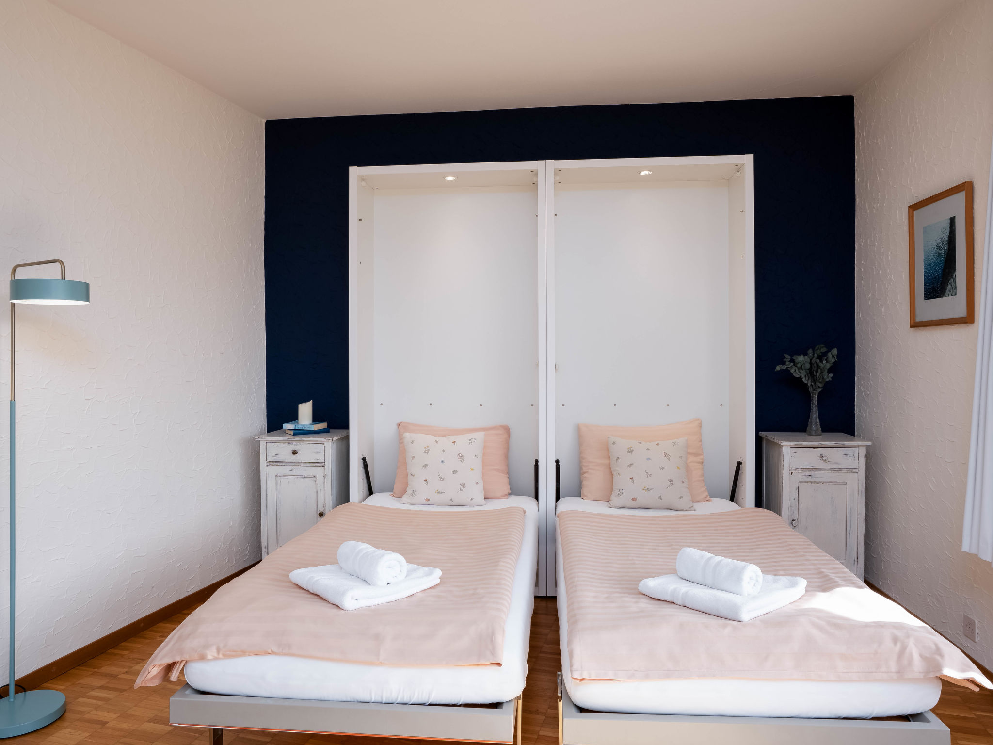 "Suite Classic", 2-Zimmer-Wohnung 70 m2 im 1. Stock, Südlage. Wohn-/Schlafzimmer mit 2 Wandschrankbetten (90 cm, Länge 200 cm), Sat-TV und Radio. 1 Zimmer mit 1 Doppelbett (1 x 180 cm, Länge 200 cm). Kochnische (Backofen, elektrische Kaffeemaschine, Kapseln für die Kaffeemaschine (Nespresso) extra). Bad/WC. Ölheizung. 2 Balkone. Schöne Sicht auf den See, die Berge und die Ortschaft. Zur Verfügung: Internet (Wireless LAN, gratis). Bitte beachten: Nichtraucher-Unterkunft, Nichtraucher-Haus. Maximal 1 Haustier/Hund erlaubt. NL-00004943