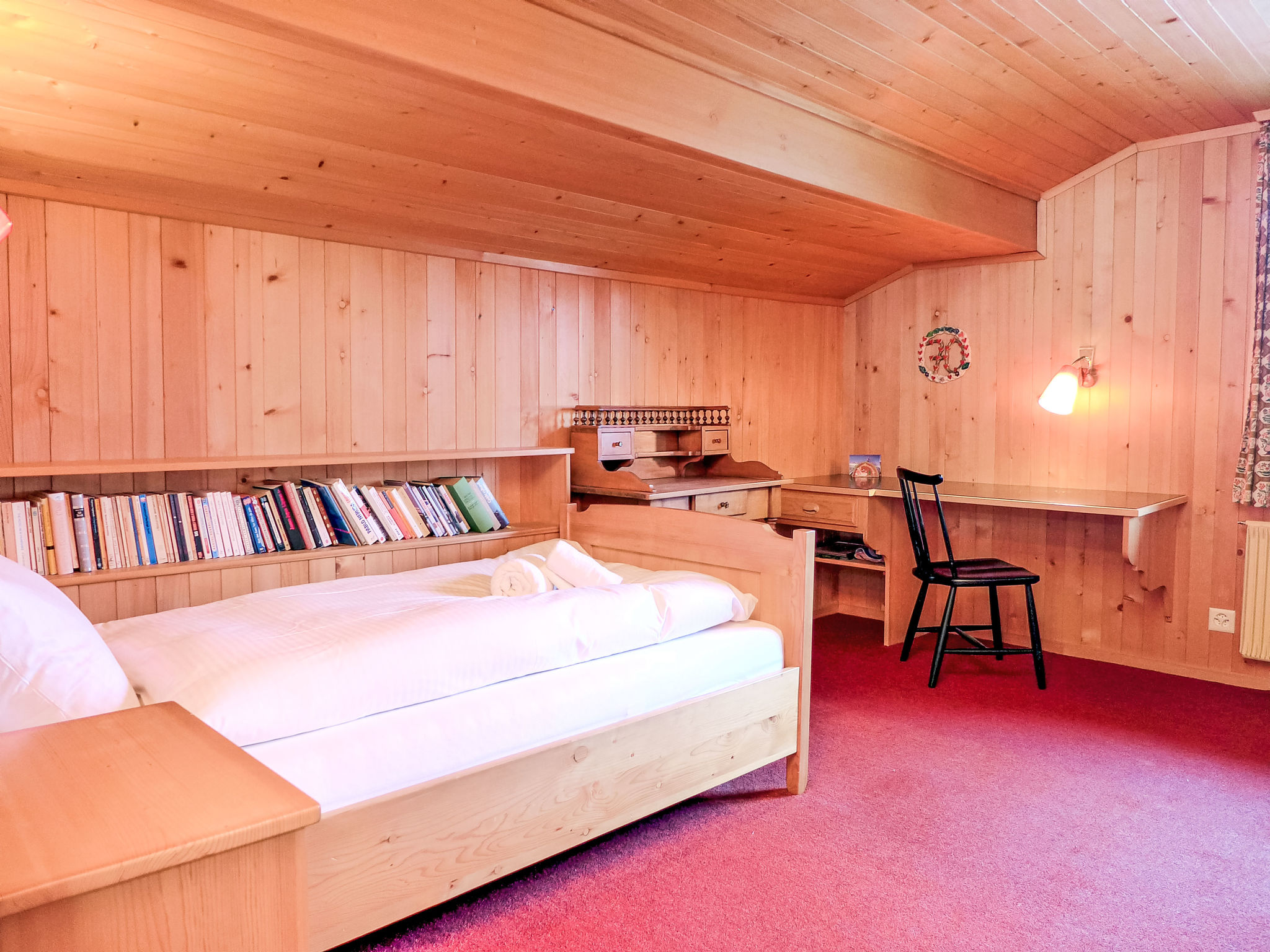 Gemütliches, rustikales, freistehendes Zweifamilienhaus "Chalet Colette", auf 2 Stockwerken, umgeben von Wiesen. Im Ortsteil Schybersboden, 550 m vom Zentrum, ruhige, sonnige, erhöhte Lage am Hang, exzellente Lage: Absolut zentral und dennoch ruhig, im Grünen, Richtung Süden. Zur Mitbenutzung: naturbelassenes Grundstück. Sitzplatz. Im Hause: Skiraum, Zentralheizung, Waschmaschine, Wäschetrockner (zur Mitbenutzung, extra). Sehr steile Zufahrt. Im Winter bitte Schneeketten mitbringen, im Winter 4x4 empfohlen. 80 m steiler Fussweg bis zum Haus. Parkplatz in 50 m. Einkaufszentrum 550 m, Restaurant 600 m, Bäckerei 700 m, Fahrradverleih 1 km, Zentrum zu Fuss in 10 Minuten erreichbar, Bushaltestelle "Kreuzweg Bus Nr. 122" 350 m, Bahnstation "Grindelwald Dorf" 700 m, Hallenbad 300 m. Golfplatz (9 Loch) 3.5 km, Tennis 2 km, Minigolf 800 m, Sportzentrum 600 m, Luftseilbahn 1 km, Bergeisenbahn 600 m, Gondelbahn 800 m, Skiverleih 300 m, Skibushaltestelle 650 m, Langlaufloipe 2 km, Kinderspielplatz 600 m. Bekannte Seen in der Umgebung sind gut erreichbar: Thuner-/Brienzersee 18 km. Bitte beachten: kein Fahrstuhl vorhanden. Gratis Skibus. Der gratis Skibus fährt zum Skigebiet First, Männlichen/kl. Scheidegg.