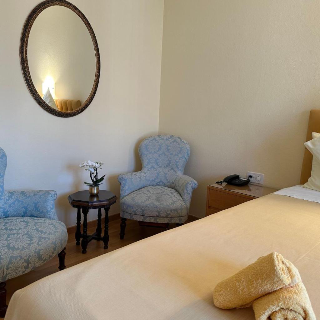 Hier sind die Zimmer versehen mit einem eigenen Badezimmer mit kostenlosen Pflegeprodukten und ausgewählte Zimmer sind zusätzlich versehen mit einem Balkon und andere verfügen außerdem über Gartenblick.
