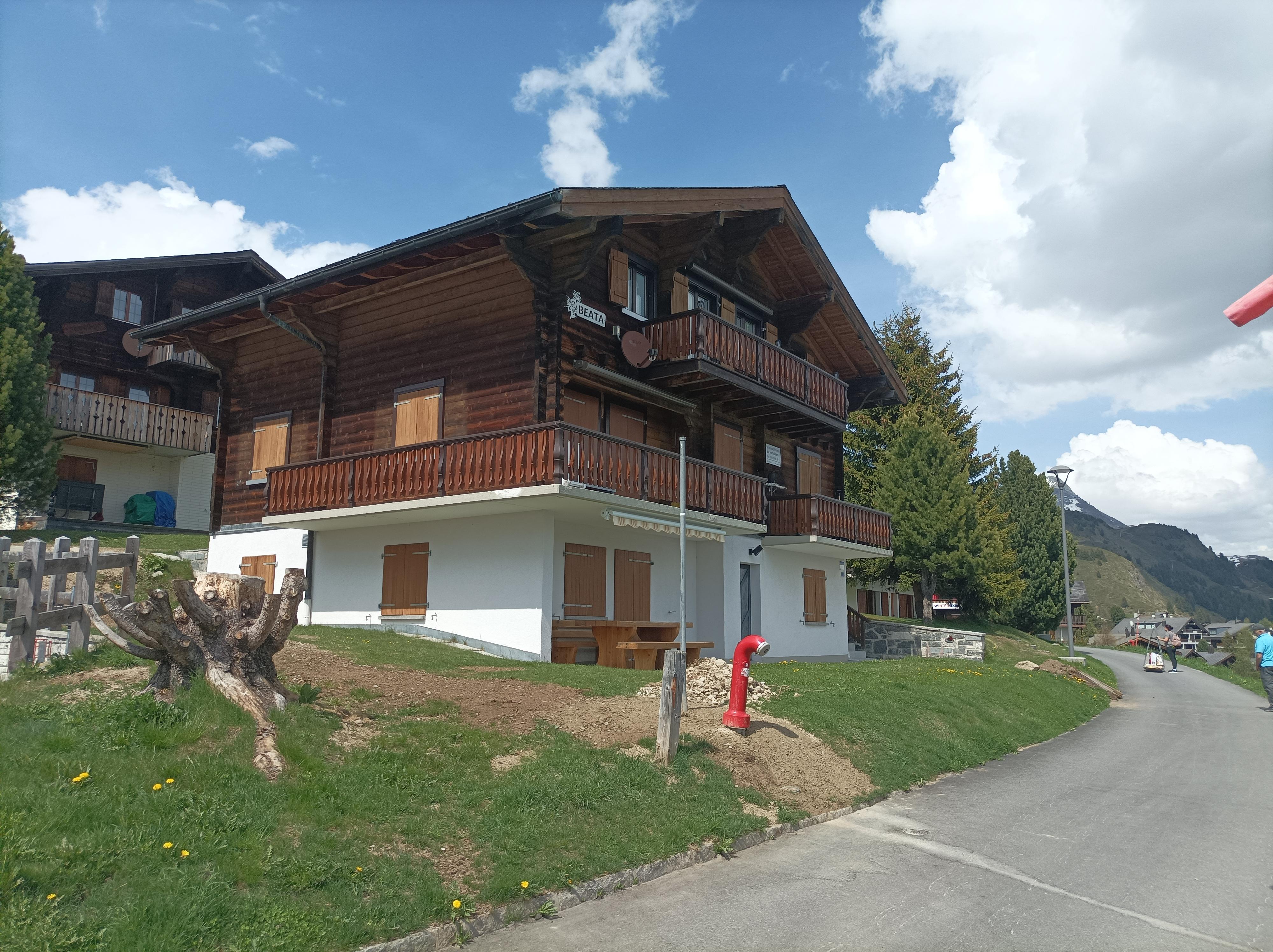 Von der Bergstation (Riederalp West) sind es nur 40m bis zum Chalet Beata. Das Chalet besitzt 3 Wohnungen und liegt direkt an der Aletschpromenade. Ihre Freizeitgeräte, wie Velos, Skis etc. können im dafür vorgesehen Lokal deponiert werden. Mit den Sportgeräten fahren sie direkt vom Haus auf die Skipiste im Winter oder auf die ihre Biker-Route im Sommer. Herrliche Wanderrouten können mit den sehr nahegelegen Bergbahnen in kürzester Zeit erreicht werden.