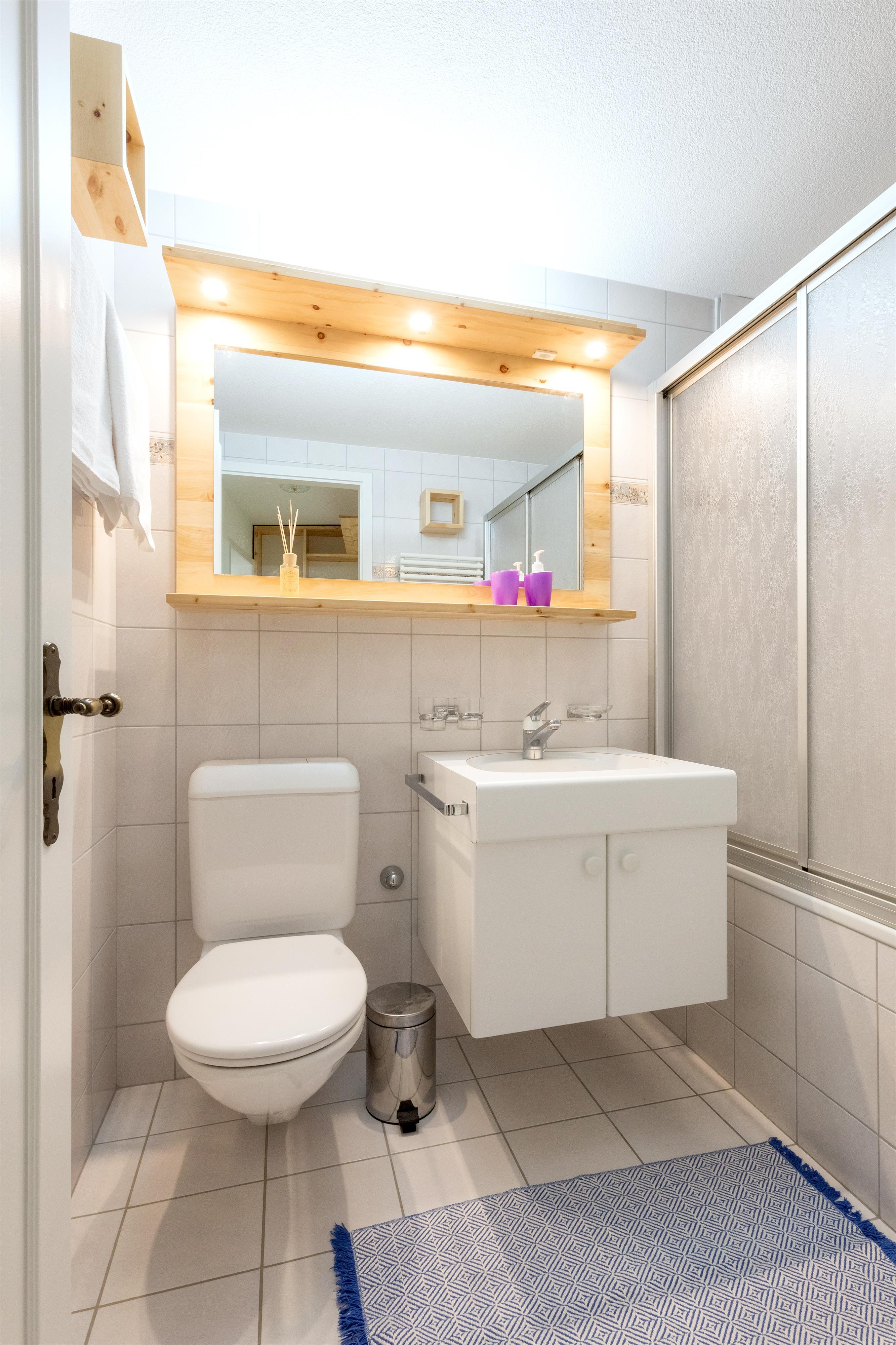 Helle, 2.5-Zi-Wohnung in einem Mehrfamilienhaus. Die Wohnung liegt an  zentraler, ruhiger Lage mit schöner Aussicht in die Berge und den Untersee. In 2 Gehminuten erreichen Sie bequem das Zentrum mit verschiedenen Einkaufsmöglichkeiten und die Busstation mit dem Gratis- Arosa- Bus.