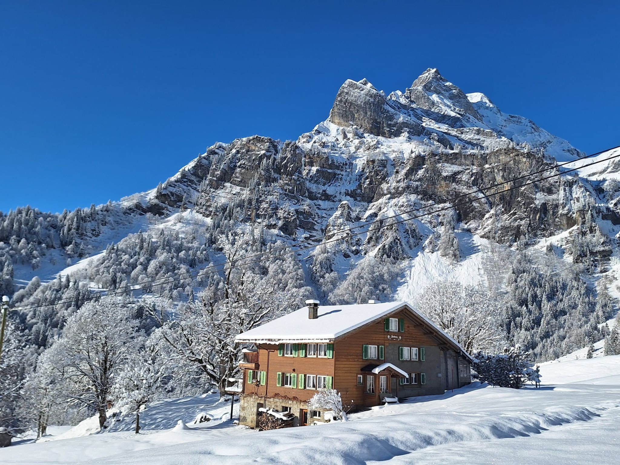 Die Ferienwohnung in Braunwald befindet sich ausserhalb des Dorfes an ruhiger Lage mit Blick auf die schöne Bergwelt. Das Haus steht frei und der Abstand zum nächsten Haus beträgt gut 100 m. Die Wohnung bietet Platz für bis zu 7 Personen und mehr und befindet sich in einem ehemaligen Bauernhaus. Die Wohnung verfügt über vier Schlafzimmer und eine kleine Dusche und ein WC. Sie verfügt über eine charmante Stube mit einer schönen Terrasse, was zum Verweilen einlädt. Die Küche ist mit allen nötigem ausgestattet. (Kochherd mit Backofen, Geschirrspüler, Kühlschrank mit Gefrierfach, Wasserkocher und Kapsel-Kaffeemaschine). Die Wohnung wird mit einem Kachelofen geheizt. Eine Waschmaschine und Tumbler stehen zur gemeinsamen Nutzung zur Verfügung.