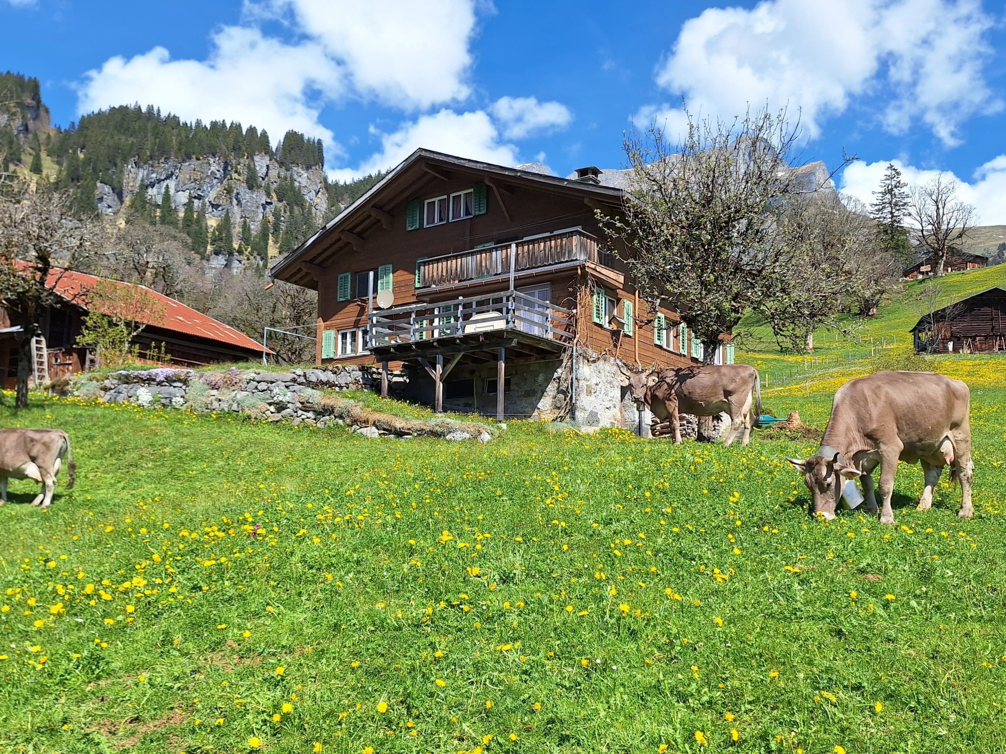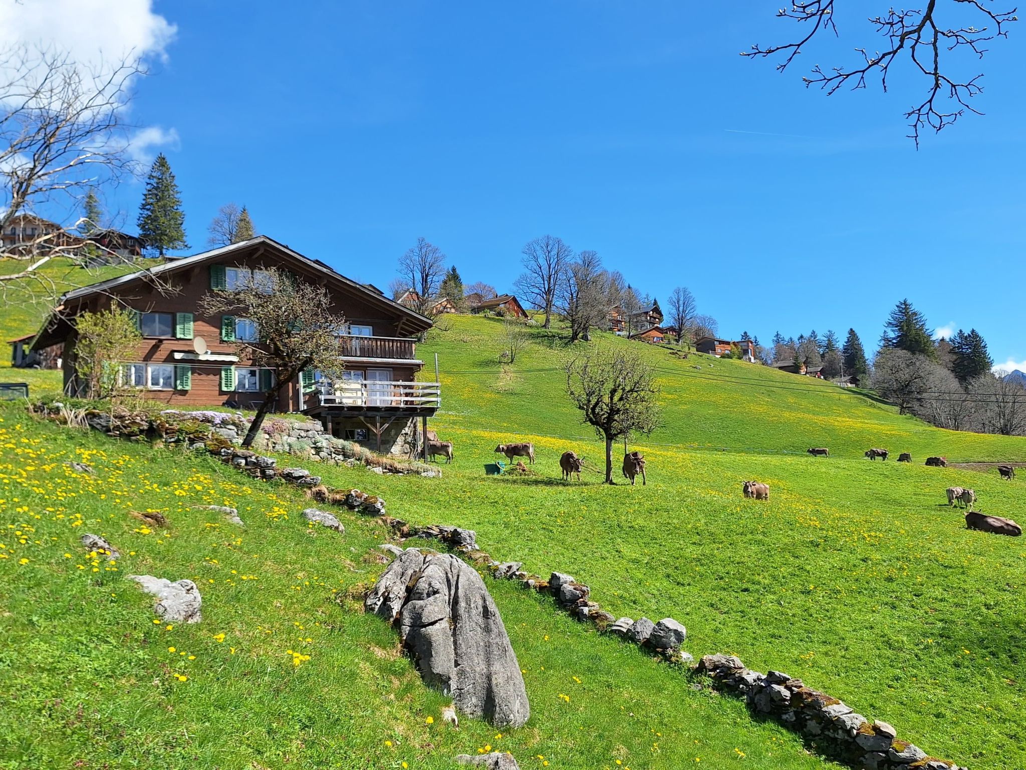 Die Wohnung ist knapp 200 m von unserem Bauernhof entfernt. Im Frühling und im Herbst weiden unsere Kühe mit Glocken auf den Wiesen im Sommer sind sie auf unserer Alp.