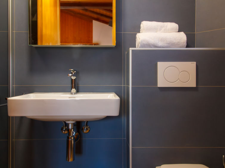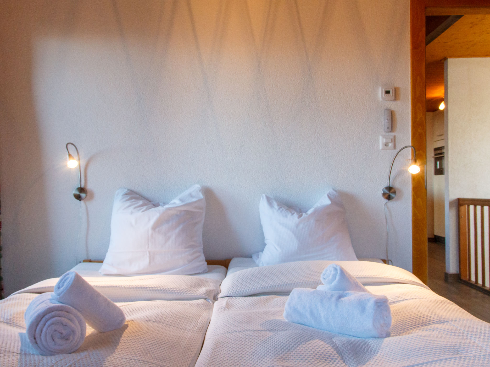 "Beke", 4-Zimmer-Chalet 110 m2 auf 2 Stockwerken. Renoviert im Jahre 2024, komfortabel und schön eingerichtet: Eingang. Wohnzimmer mit Schwedenofen und Kabel-TV. Ausgang zum Balkon, Richtung Osten. Esszimmer. Ausgang zum Balkon, Richtung Osten. 1 Zimmer mit 2 Betten (90 cm, Länge 190 cm), sep. WC und Dusche. Ausgang zum Balkon. Offene Küche (Backofen, Geschirrspüler, 4 Glaskeramikplatten, Toaster, Wasserkocher, elektrische Kaffeemaschine, Kapseln für die Kaffeemaschine (Nespresso) extra, Racletteofen, Fondue Set (Chinoise, Käse)). Heizung. Solarstrom. Unteres Geschoss: 1 Zimmer mit 1 Doppelbett (2 x 80 cm, Länge 200 cm). Ausgang zum Gartensitzplatz. Büro. 1 Zimmer mit 2 Betten (90 cm, Länge 200 cm). Bad/WC, Dusche. Balkon, Ostlage, Terrasse, Westlage, grosser Garten, Westlage. Terrassenmöbel, Gartengrill (mobil). Schöne Sicht auf die Berge und das Tal. Zur Verfügung: Waschmaschine, Haartrockner. Internet (Wireless LAN, gratis). Parkplatz, Garage, Höhe 190 cm, Breite 220 cm. Bitte beachten: Nichtraucher-Unterkunft. Maximal 1 Haustier/Hund erlaubt.