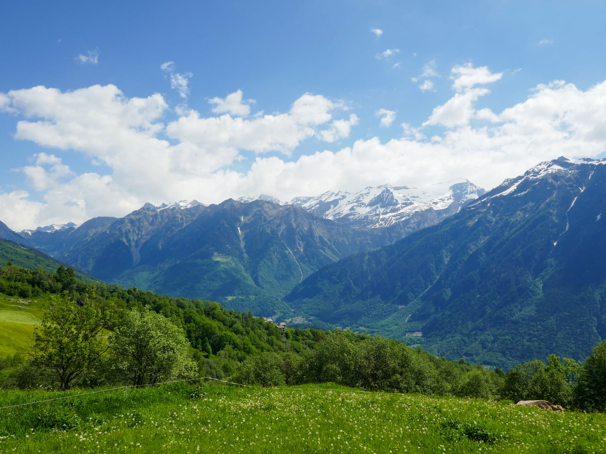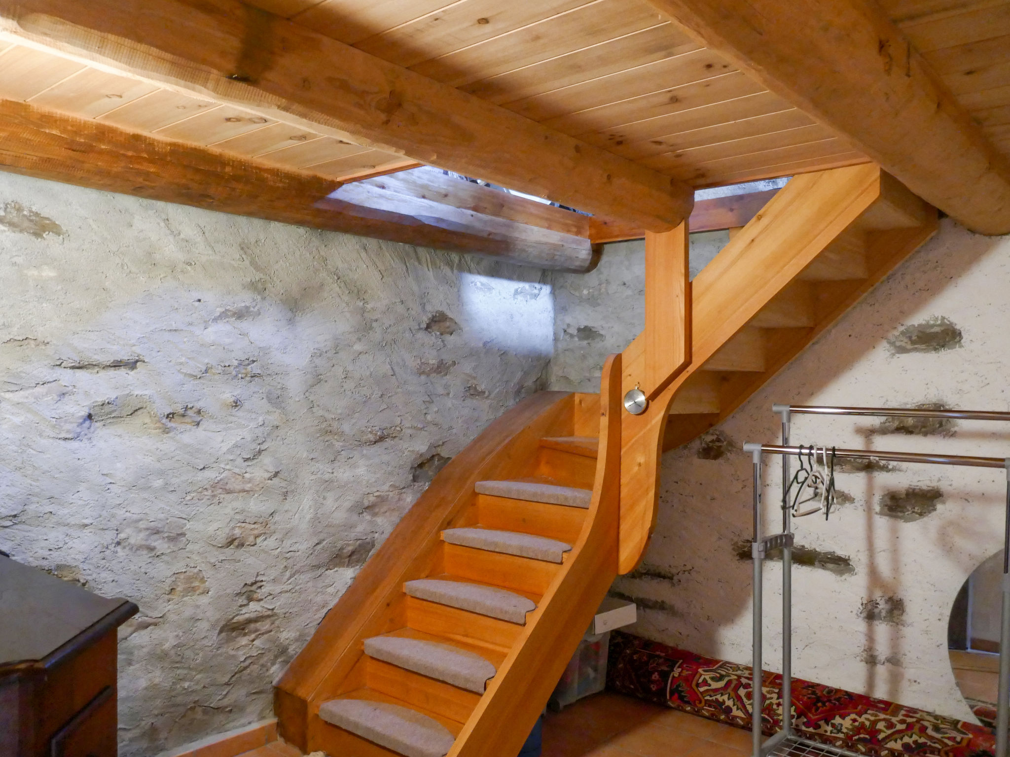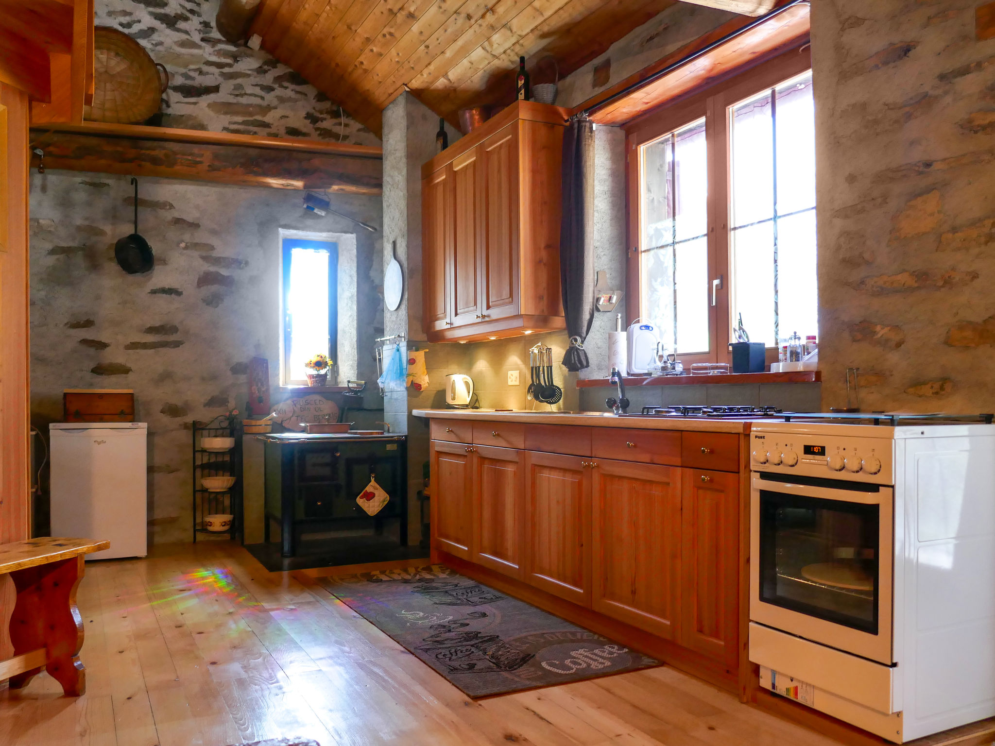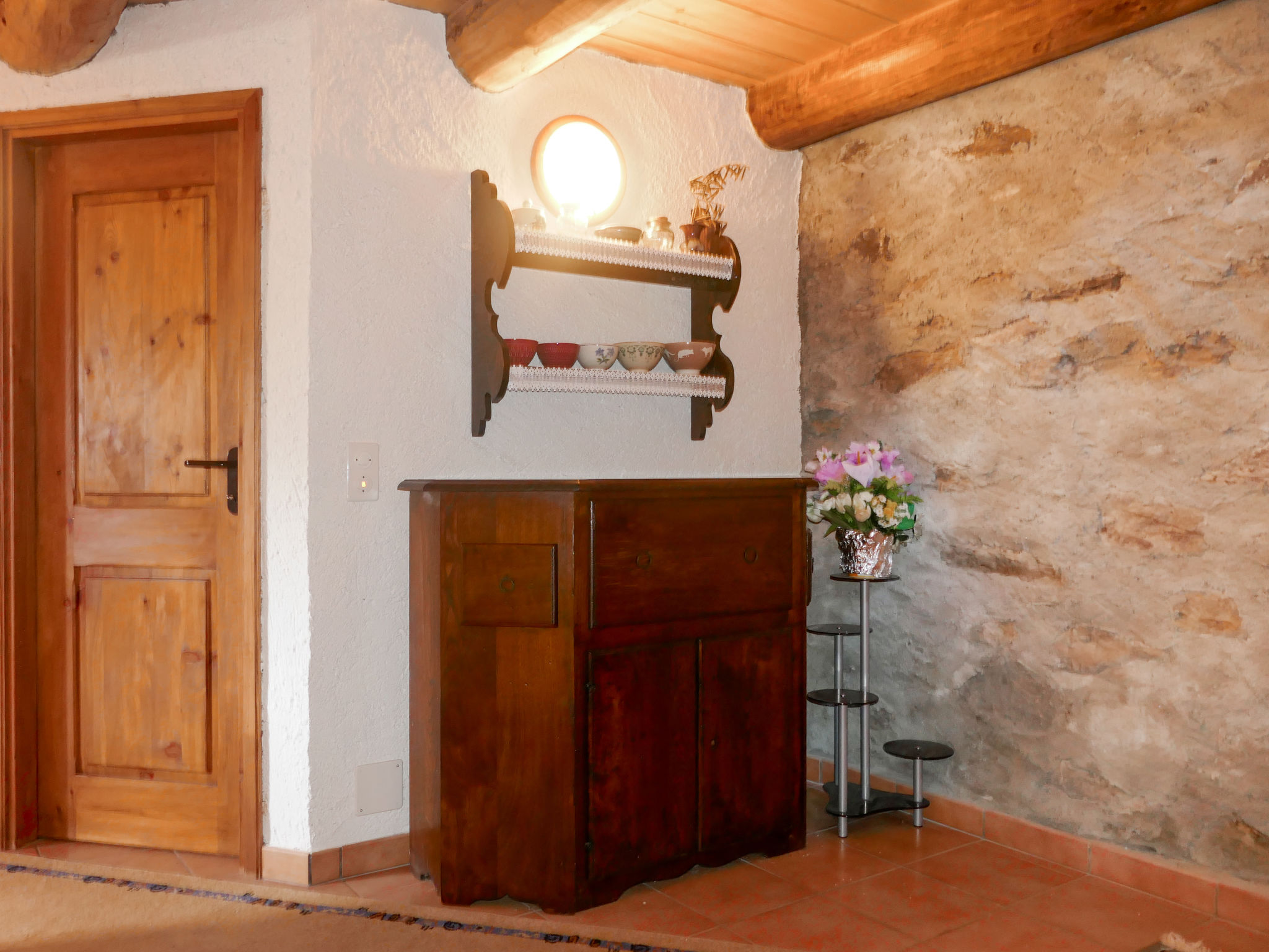 "Rustico Tecc Berbis", 1-Zimmer-Haus. Geräumig, teilweise abgeschrägt, rustikal und gemütlich eingerichtet: offenes Wohn-/Esszimmer mit offenem Kamin, Essecke und Sat-TV. Ausgang zur Terrasse. Offener Zwischenstock mit 2 Betten (95 cm, Länge 195 cm). Offene Küche (4 Glaskeramikplatten, Toaster, Wasserkocher, Mikrowelle, Fondue Set (Käse)). Unteres Geschoss: Dusche/WC. Holzheizung. Terrassenmöbel, Gartengrill (mobil), Liegestühle (2). Sehr schöne Sicht auf die Berge, das Tal und die Landschaft. Zur Verfügung: Kinderhochstuhl, Babybett bis 2 Jahre (extra), Haartrockner. Bitte beachten: Nichtraucher-Haus. >> Wichtig: Der Holzofen in der Küche dient nur der Dekoration. Zündung verboten! NL-00002457