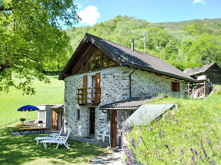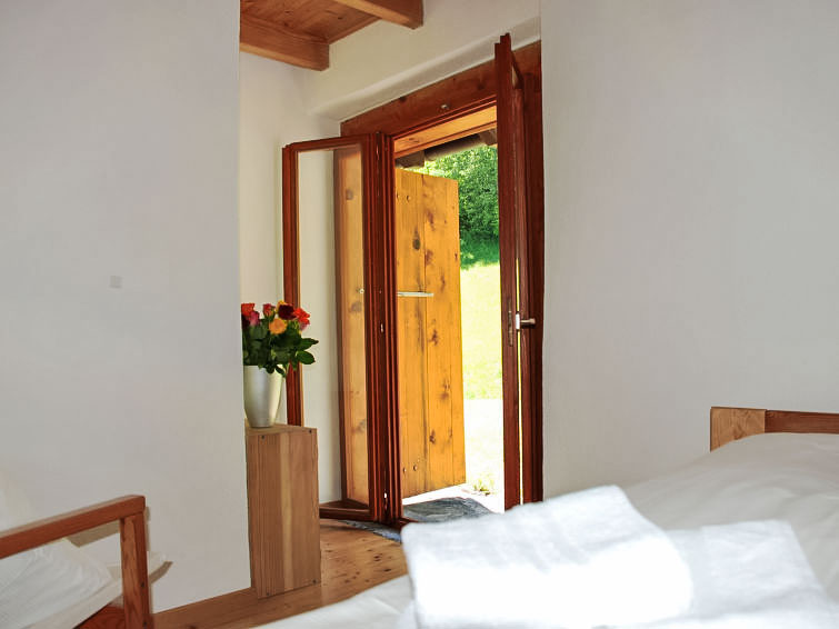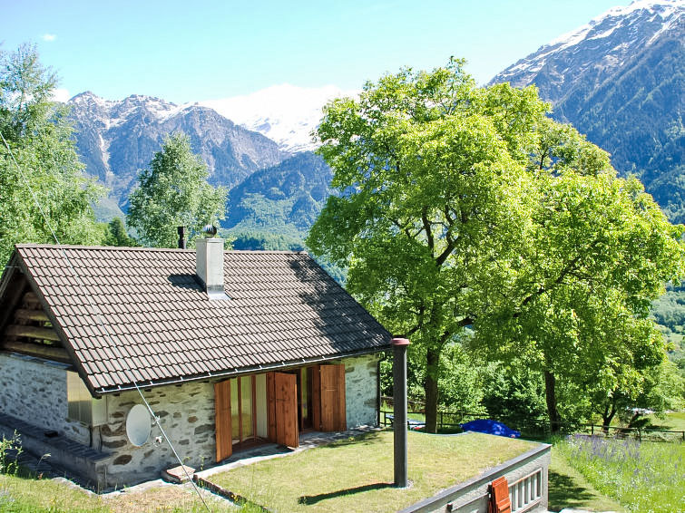 "Sole", 5-Zimmer-Haus Südostlage. Geräumig, komfortabel und gemütlich eingerichtet: offenes Wohnzimmer mit Schwedenofen und Sat-TV (Flachbildschirm), Radio und DVD. Ausgang zum Gartensitzplatz. Offene Küche (Backofen, Geschirrspüler, 4 Induktionskochplatten, Mikrowelle, Tiefkühler, elektrische Kaffeemaschine, Kapseln für die Kaffeemaschine (Nespresso) extra) mit Bar, offenem Kamin und Esstisch. Dusche, 2 sep. WC's, Doppelwaschbecken. E-Heizung, Holzheizung. Obergeschoss: (steile Treppe) 1 Doppelzimmer mit 1 Doppelbett (1 x 160 cm, Länge 200 cm), E-Heizung. Ausgang zum Balkon. 1 Zimmer mit 1 Bett (120 cm, Länge 200 cm), E-Heizung. Ausgang zum Garten. 1 Zimmer mit 1 Bett (120 cm, Länge 200 cm). 2. Obergeschoss: (steile Treppe) abgeschrägte, offene Galerie mit Panoramafenster mit 1 Bett (120 cm, Länge 200 cm). Grosser Gartensitzplatz, Ostlage und Südlage. Gartengrill, Liegestühle (2). Sehr schöne Panoramasicht auf die Berge, das Tal und die Landschaft. Zur Verfügung: Kinderhochstuhl, Babybett bis 3 Jahre (extra), Haartrockner. Internet (WLAN, gratis). Bitte beachten: geeignet für Familien. Nichtraucher-Haus. Maximal 2 kleine Haustiere/Hunde erlaubt. Feuerlöscher. Bitte beachten Sie: Es gibt 300m ungemachte Straße, bevor Sie zum Haus kommen. Bei schlechtem Wetter ist es ratsam das Auto nach der Brücke am Strassenrand zu parken. Anstelle eines abgeschlossenen Schlafzimmers befinden sich manche Schlafplätze in einem offenen Bereich (Galerie, Nische etc.). NL-00003841