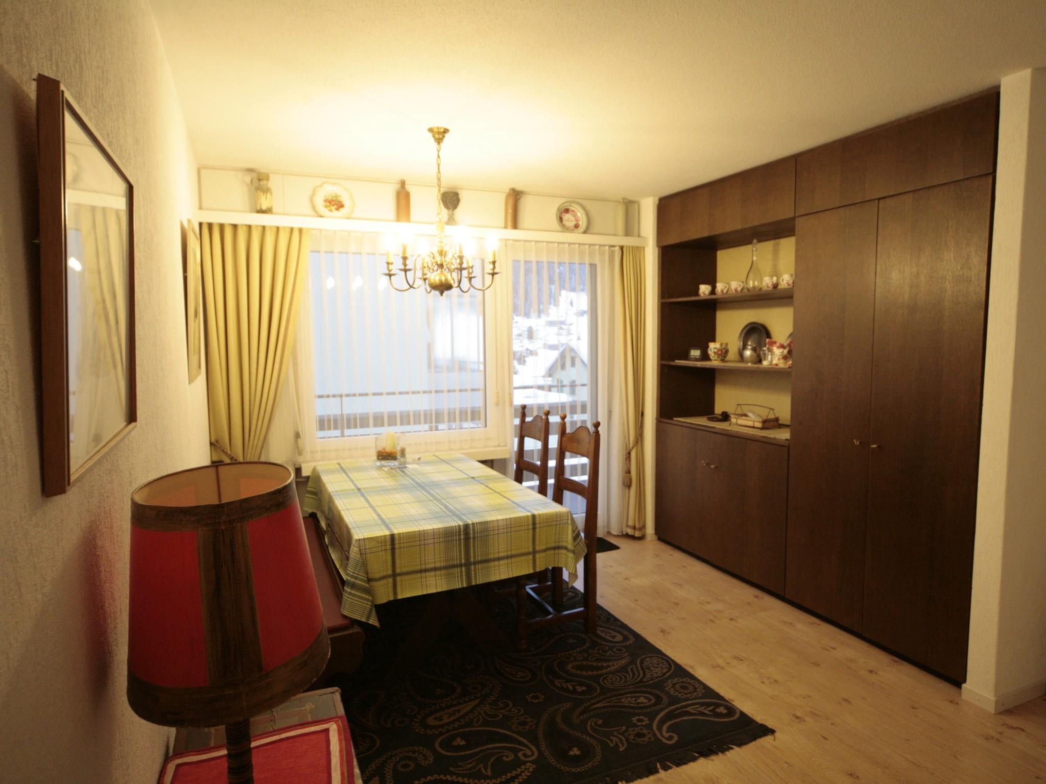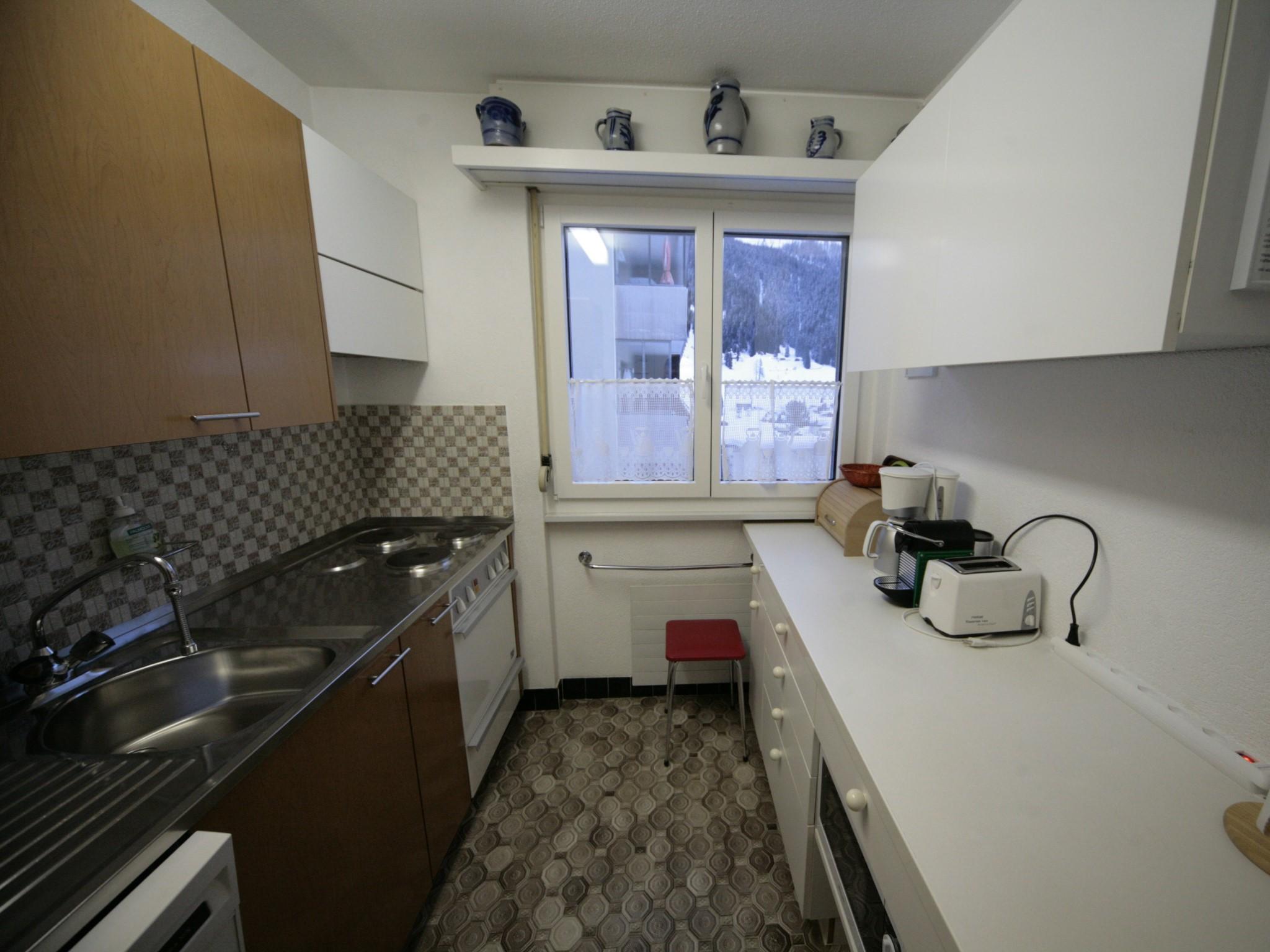 2 1/2 Zimmer-Wohnung (ca. 66m2) im 3. Stock in Mehrfamilienhaus mit Lift; Garage (Fahrzeughöhe max. 182cm); Wohnung mit zwei Südbalkonen; zur Mitbenützung: Skiraum, Garten, Waschmaschine (nach Absprache), Kinderspielplatz, Hallenbad und Sauna (gegen Gebühr); separate Küche mit Backofen, Kühlschrank, Geschirrspülmaschine, Toaster und Kaffeemaschine; Wohnzimmer mit Sitzgruppe; 1 Schlafzimmer mit 2 Betten und einem Schrankbett; separater Ess-Bereich mit Tisch und 6 Stühlen; Bad/WC und separates WC; Bettwäsche, Küchentücher, Frottéewäsche, Duvet Nordisch, Telefon, Radio, CD, Video, DVD, Fernseher, Computer, Internetzugang, Drucker, Fax, 1 Abfallsack (blau), WC-Papier. Haustiere sind nicht erlaubt. Die Wohnung ist mit vielen Bildern und antiken Möbeln ausgestattet und für kleinere Kinder ungeeignet. Deshalb vermieten wir die Wohnung nicht an Familien mit Kinder unter 10 Jahren. (Weitere Details und Bilder unter www.homepage.swissonline.ch/rast/davos)