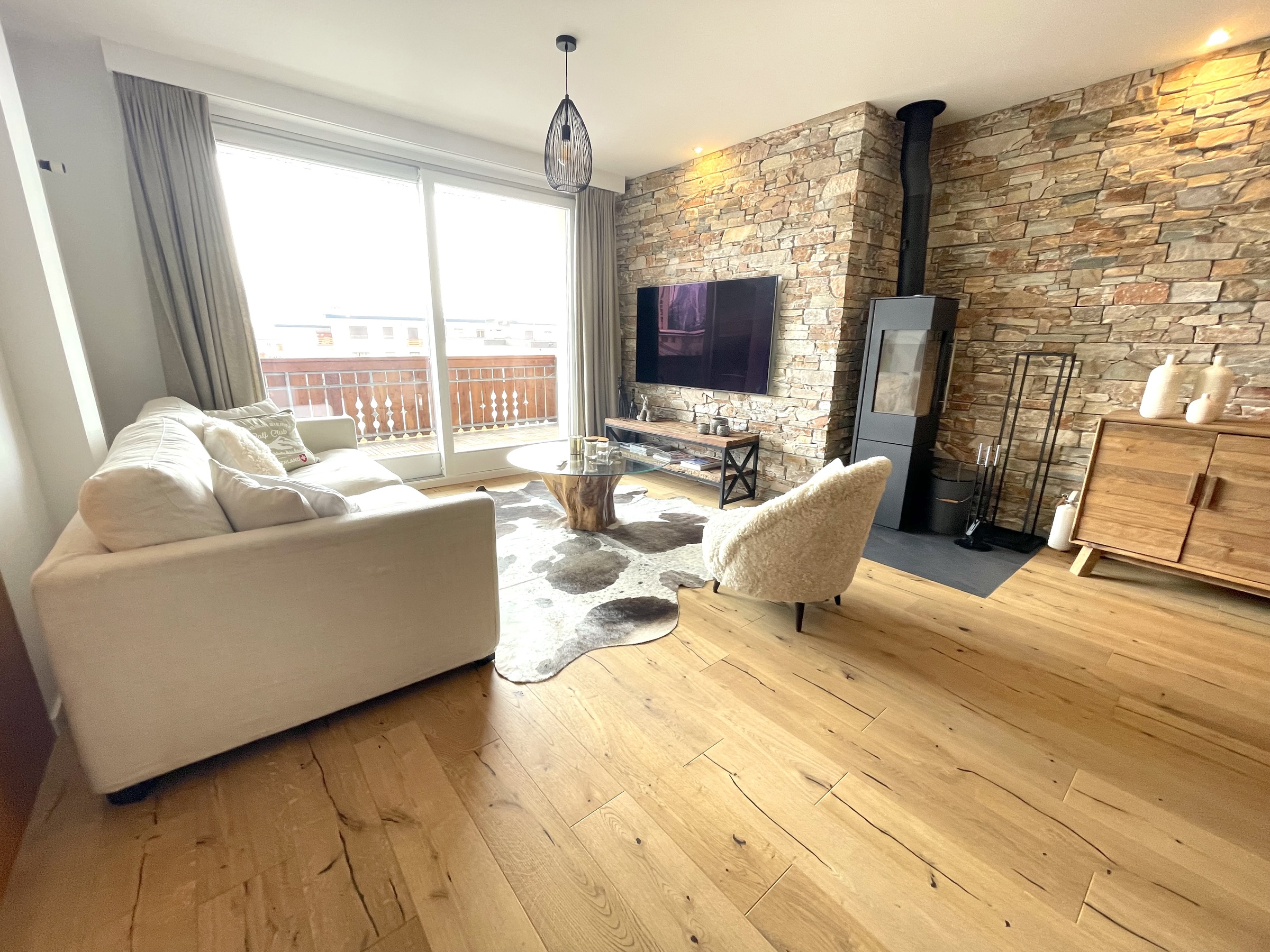 Sie sind nur wenige Schritte von all Ihren Wünschen entfernt: Restaurants, Skifahren, Golf, Shopping, Kino, etc. Diese gemütliche 3,5-Zimmer-Wohnung kann maximal 5 Personen beherbergen. Möbel und Dekoration sind in einem schicken Berg-Stil gehalten. Es verfügt über hochwertige Annehmlichkeiten sowie einen privaten Abstellraum neben der Eingangstür.Eingangsbereich mit großem Kleiderschrank, geräumiges Wohnzimmer mit Großbildfernseher, schwedischem Holzofen, voll ausgestattete Küche mit Kühlschrank, Geschirrspüler, Backofen, Nespresso-Kaffeemaschine, eleganter Essbereich. 1 Hauptschlafzimmer mit 160cm Bett und Zugang zum Südbalkon, 1 Duschraum mit WC-Waschbecken + Waschmaschine, 1 zweites Schlafzimmer mit 160x200 Bett + 1 Einzelbett 90x200 Etagenbett (Hinweis: dieses Zimmer hat kein Fenster) mit TV und eigenem Bad-WC-Waschbecken.- Waschmaschine/Trockner (2 in 1) in der Wohnung- Wohnfläche ca. 90 m2 + Balkon- WIFI unbegrenzt inbegriffen- 1 nummerierter Außenparkplatz an der Rückseite des Gebäudes- 1 privater Abstellraum für Ski-/Golfausrüstung// INKLUSIVE: PREMIUMQUALITÄT BETTWÄSCHE, BETTEN BEZUG, HOTELKOSMETIK, KURTAXE, ENDREINIGUNG, EMPFANG IN DER AGENTUR + SCHLÜSSELKASTEN BEI SPÄTER ANKUNFT 7/7 //