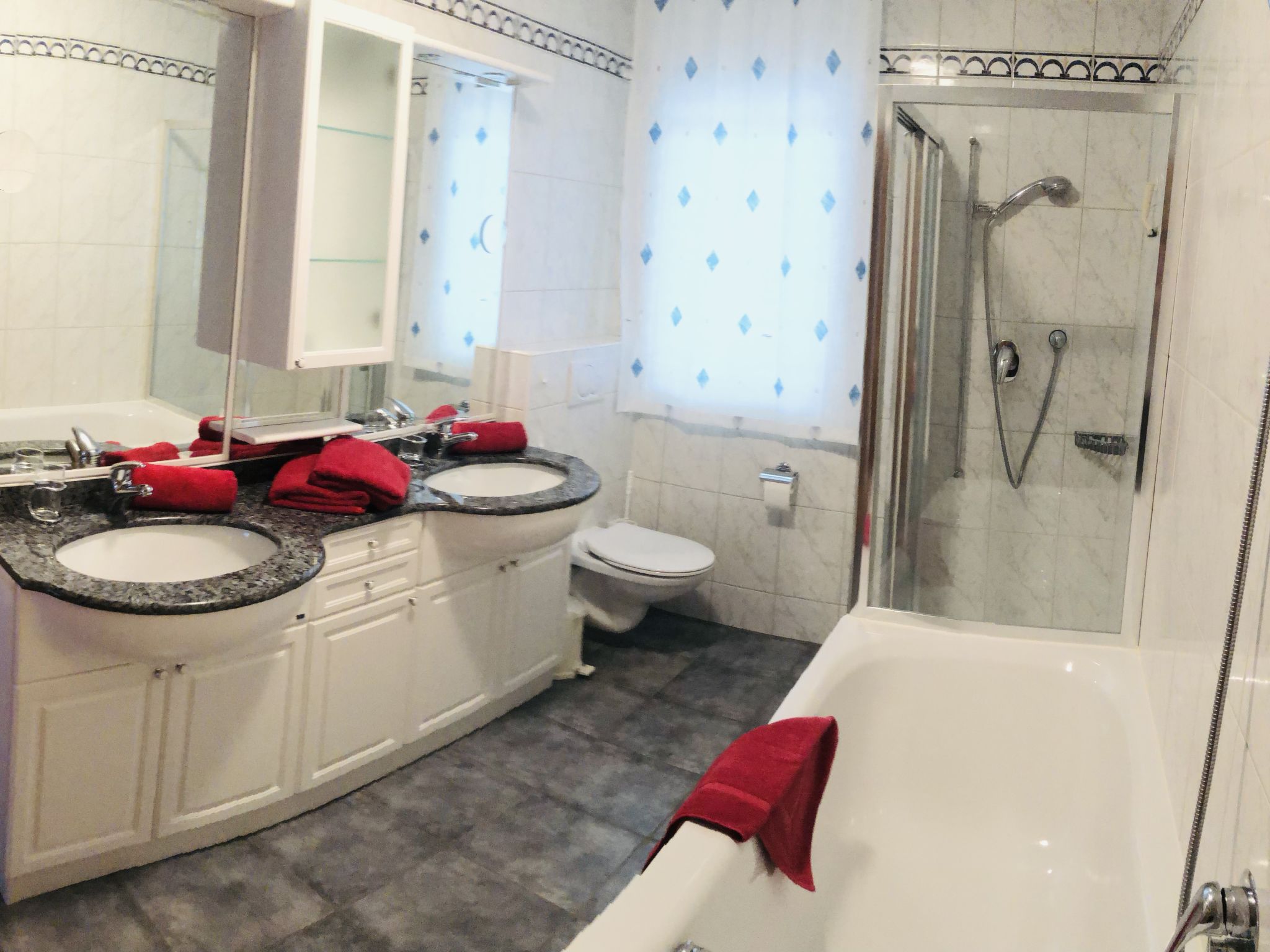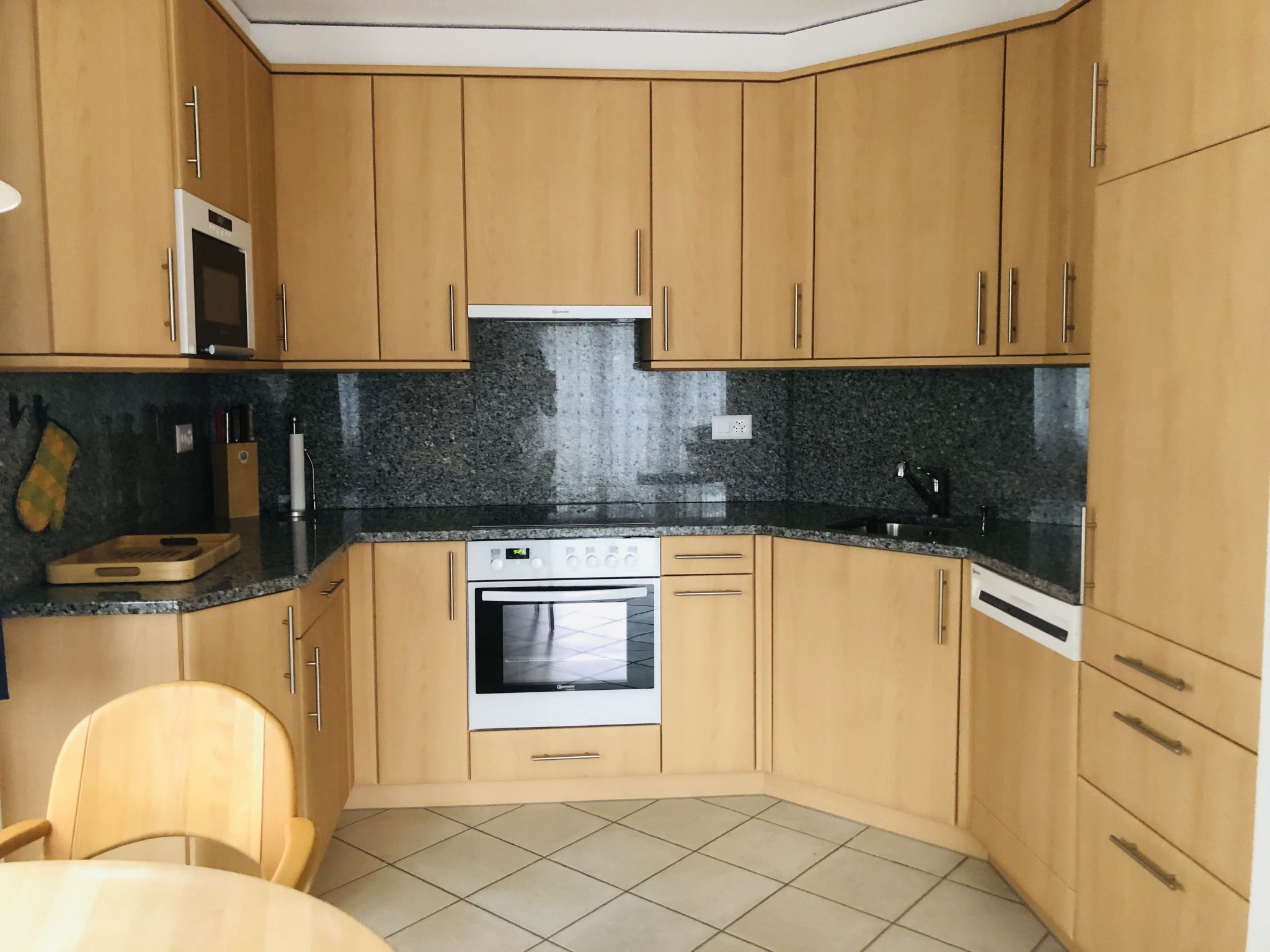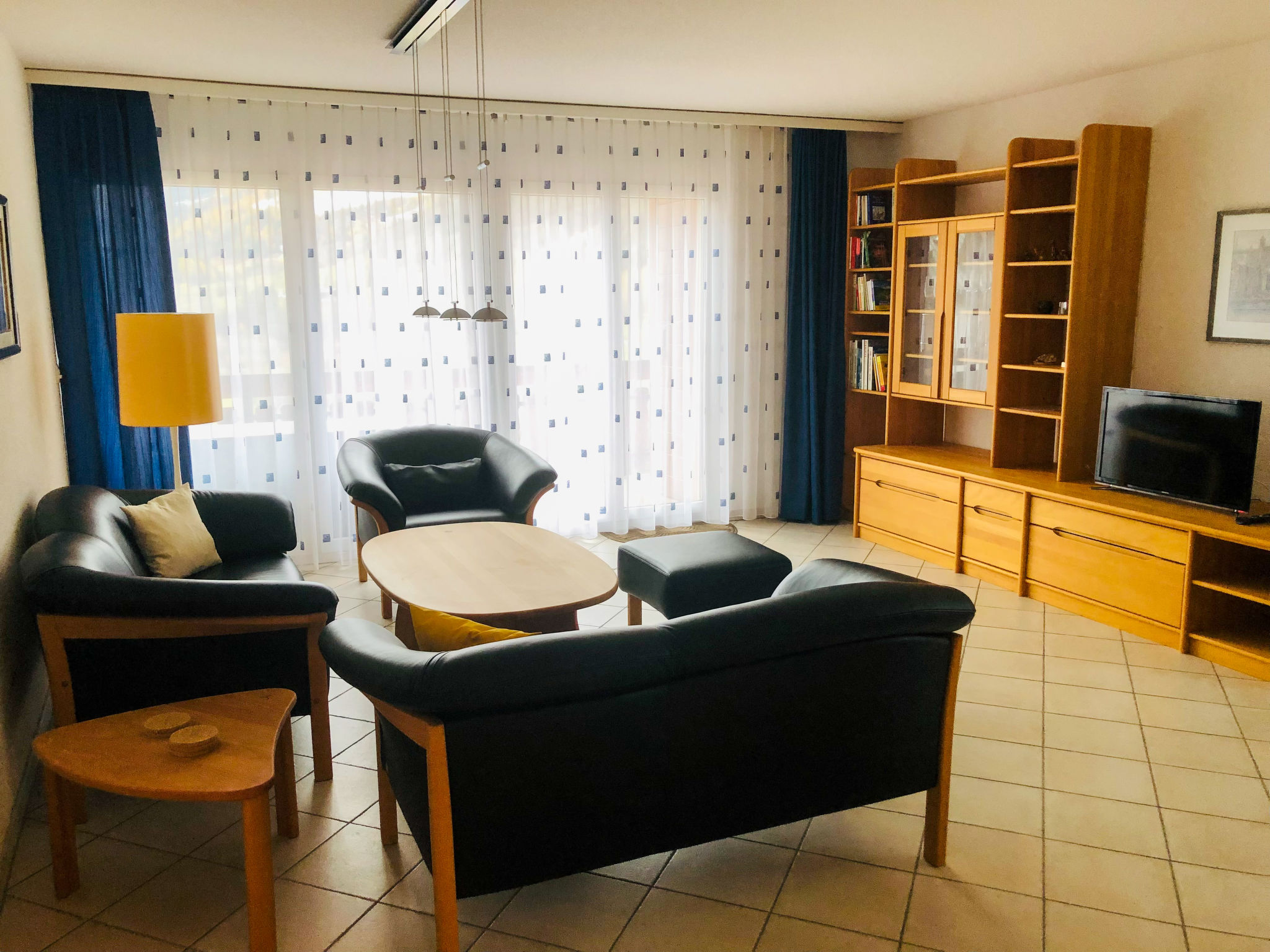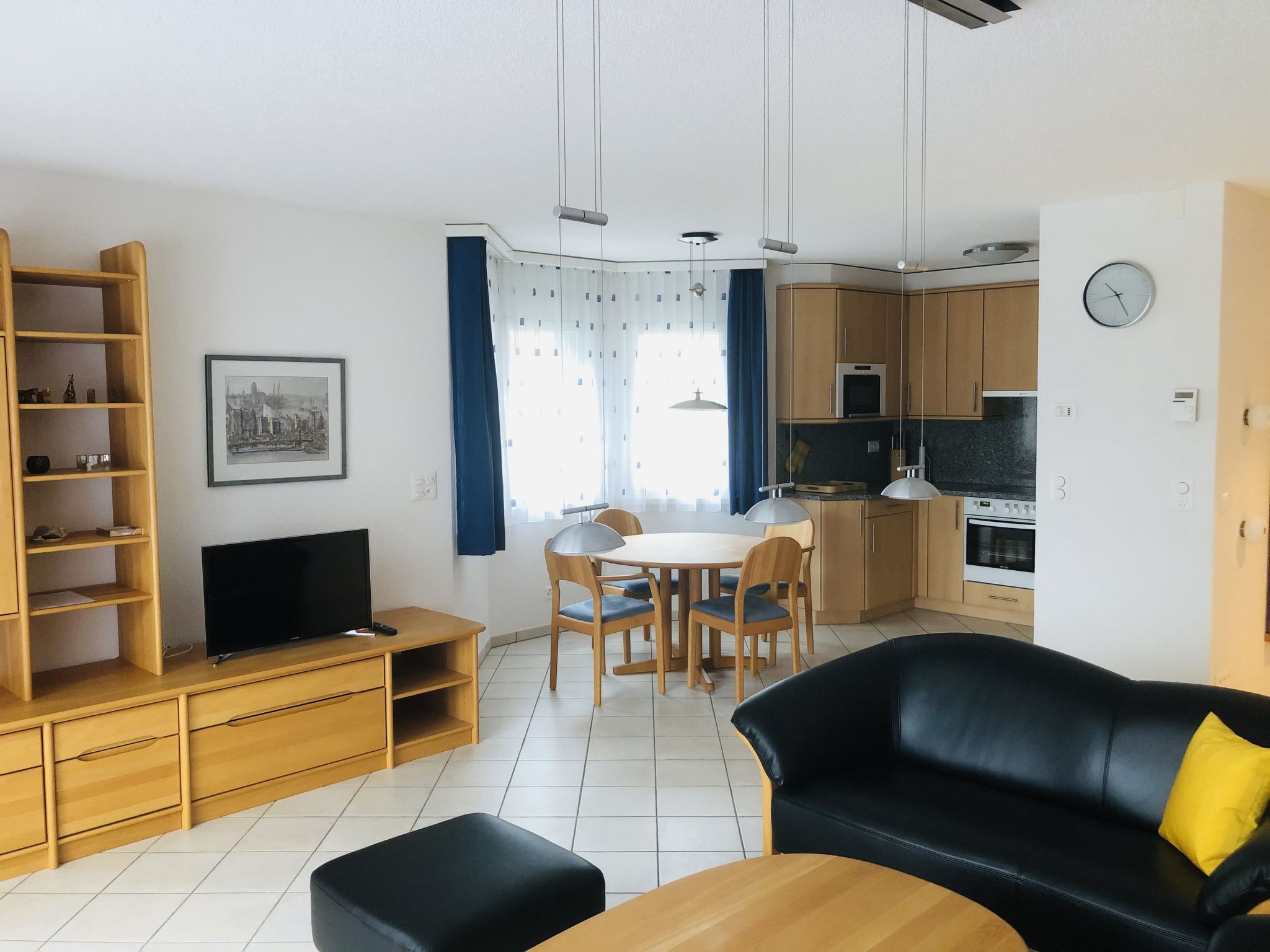 3-Zimmer-Wohnung 90 m2. Gemütlich eingerichtet: Wohn-/Esszimmer mit Kabel-TV (Flachbildschirm), Radio. Ausgang zum Balkon. 2 Doppelzimmer, jedes Zimmer mit 1 Doppelbett (2 x 90 cm, Länge 200 cm). Offene Küche (Backofen, Geschirrspüler, 4 Glaskeramikplatten, Mikrowelle). Sep. WC, Bad/Dusche/WC. Balkon 6 m2. Schöne Sicht auf die Berge und die Ortschaft. Zur Verfügung: Internet (Wireless LAN, gratis). Bitte beachten: Nichtraucher-Unterkunft. Maximal 1 Haustier/Hund erlaubt.