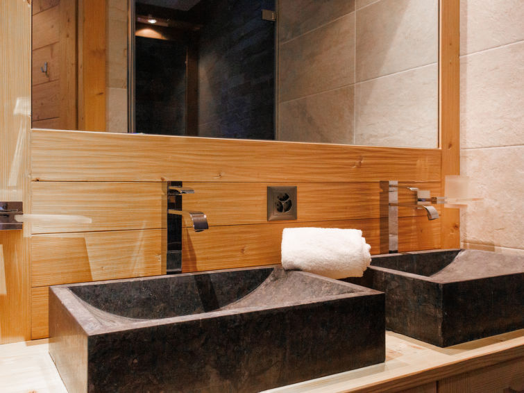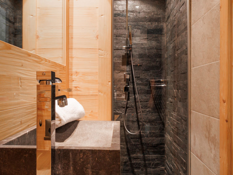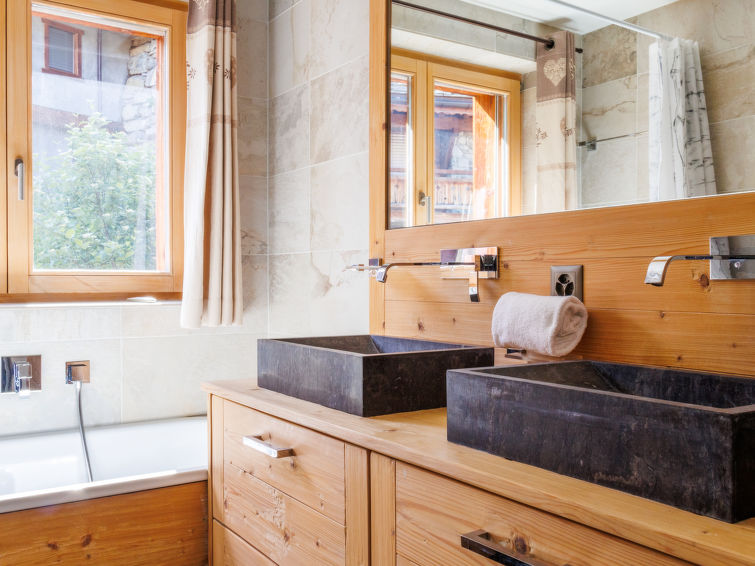 "Le Montagnard 6", 4-Zimmer-Wohnung 123 m2 im 2. Stock. Objekt geeignet für 4 Erwachsene + 4 Kinder. Geräumig, sehr schön und luxuriös eingerichtet: grosses Wohn-/Esszimmer mit Panoramafenster mit offenem Kamin, Kabel-TV und DVD. Ausgang zum Balkon, Richtung Norden und Richtung Osten. 1 grosses Zimmer mit 1 Doppelbett (180 cm, Länge 200 cm), Bad/Dusche/WC und Kabel-TV. 1 Zimmer mit 1 Doppelbett (180 cm, Länge 200 cm), Dusche/WC und Kabel-TV. Ausgang zum Balkon. 1 Kinderzimmer mit 1 x 2 Etagenbetten (90 cm, Länge 190 cm), 1 Ausziehbett (2 Pers. 2 x 90 cm, Länge 190 cm), Kabel-TV. Offene Küche (Backofen, Geschirrspüler, 4 Induktionskochplatten, Toaster, Wasserkocher, Mikrowelle, elektrische Kaffeemaschine, Kapseln für die Kaffeemaschine (nespresso) extra, Racletteofen, Fondue Set (Käse)). Dusche/WC. Fussbodenheizung. Balkon 26 m2, Nordlage und Ostlage Balkon 10 m2. Balkonmöbel (4). Sehr schöne Sicht auf die Berge. Zur Verfügung: Waschmaschine, Wäschetrockner, Kinderhochstuhl, Babybett, Haartrockner. Internet (Wireless LAN, gratis). Parkplatz Nr. Montagnard 6 (überdacht, 2 Autos), Höhe 220 cm. Bitte beachten: geeignet für Familien. Nichtraucher-Unterkunft. 4 Abonnements für Thermalbad „Bisses“ sind während des Aufenthalts im Mietpreis inbegriffen. Dieses Thermalbad ist ein Teil des „4 Vallées Mer de Glace“ Komplex.