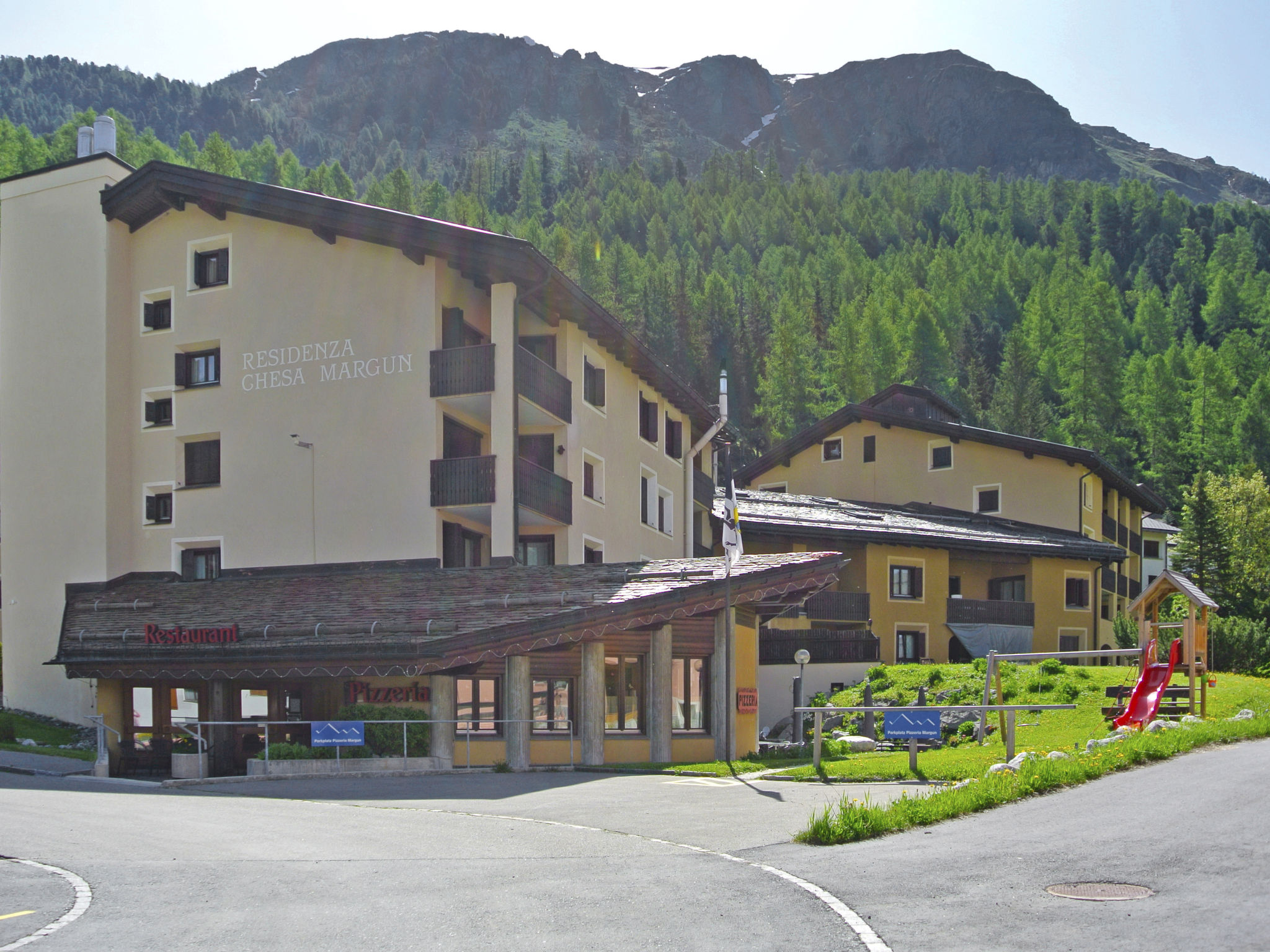 Gemütliches Appartementhaus "Residenza Chesa Margun", 1'815 m.ü.M., umgeben von Bäumen und Wiesen. 7 Häuser in der Residenz. Im Ortsteil Surlej, ruhige, sonnige, erhöhte Lage am Hang, 5 m vom Waldrand, 1 km vom See, 200 m vom Skigebiet, in einer Sackgasse, Richtung Süden. Zur Mitbenutzung: Liegewiese. Kinderspielplatz (Rutschbahn, Schaukel). In der Anlage: Empfang, Restaurant, Bar, Wireless LAN, Fahrstuhl, Einstellraum für Fahrräder, Skiraum, Zentralheizung, Waschmaschine (extra), Wäschetrockner (zur Mitbenutzung, extra). Brötchenservice. Zufahrt bis zum Haus. Im Winter 4x4 empfohlen. Gemeinschaftsgarage. Maße: Höhe 203 cm. E-Ladestation. Einkaufsgeschäft 2 km, Bäckerei 250 m, Fahrradverleih 100 m, Bushaltestelle "Surlej Foppas" 210 m, Thermalbad "Samedan" 14 km. Golfplatz (8 Loch) 7 km, Surfschule 3 km, Tennis 3 km, Sportzentrum 3 km, Wanderwege ab Haus 100 m, Luftseilbahn 500 m, Skilift, Sessellift 200 m, Skiverleih 100 m, Skibushaltestelle 20 m, Skischule, Kinderskischule, Langlaufloipe 200 m, Eisfeld 3 km. Bekannte Skigebiete sind gut erreichbar: Corvatsch 500 m. Bekannte Seen in der Umgebung sind gut erreichbar: Silvaplanasee 1 km. Wandergebiete: Panoramaweg 1 km, Via Engiadina 1 km. Bitte beachten: Angeln (mit Bewilligung). Gratis Skibus. Der gratis Skibus fährt zum Skigebiet Silvaplana-Surlej-Corvatsch Bahn. Bitte beachten: Weitere Unterkünfte sind buchbar. Ferienwohnung Ref. CH7513.600 befindet sich auf dem gleichen Grundstück. Alle Häuser/Wohnungen sind individuell eingerichtet. Die Residenz steht ca. 500 m unterhalb der Corvatschbahn. Die Südwohnungen haben Bergsicht, die Nordwohnungen Sicht auf den Wald. Kinderecke mit verschiedenen Spiele für kleine und grosse Kinder. Skifahren auf dem Corvatsch-Snownight (beleuchtete Piste). Extra Skipass notwendig. Das Haus verfügt über eine Ladestation für Elektroautos.