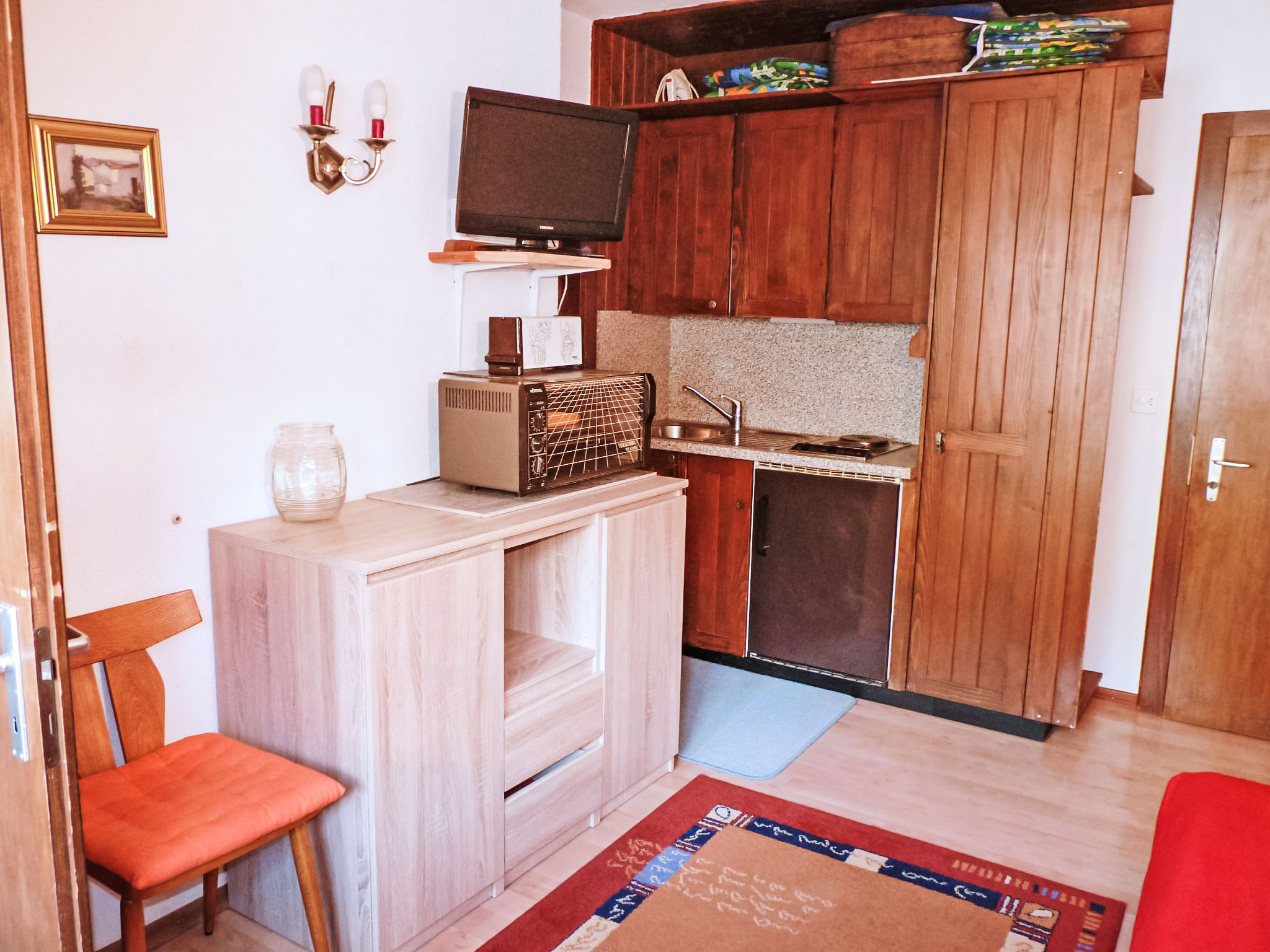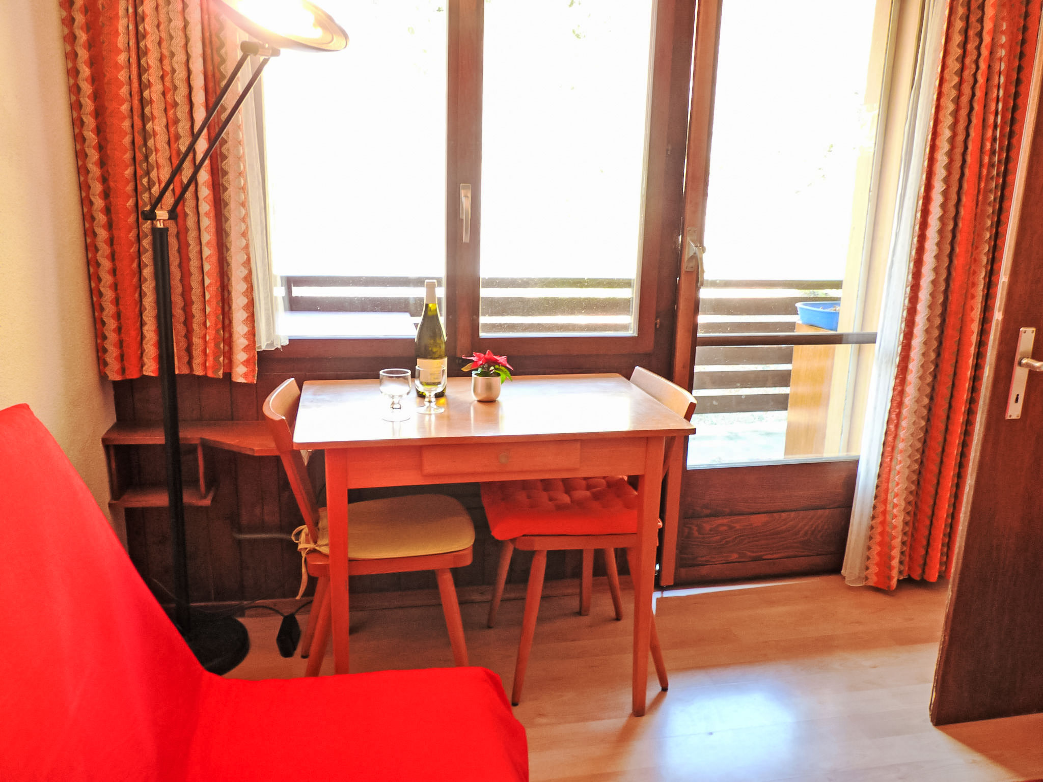"Tourbillon A 27", 2-Zimmer-Wohnung 25 m2 im 2. Stock, Nordlage. Zweckmässig eingerichtet: kleines Wohn-/Esszimmer mit 1 Diwanbett, Kabel-TV, Flachbildschirm und Radio. Ausgang zum Balkon. 1 Zimmer mit 2 Betten (80 cm). Kochnische (2 Kochplatten, Mini-Backofen). Dusche/WC. Balkon 10 m2. Schöne Sicht auf die Berge und den Wald. Parkplatz. Bitte beachten: Nichtraucher-Unterkunft. Maximal 1 Haustier/Hund erlaubt. Im Haus "Tourbillon A".