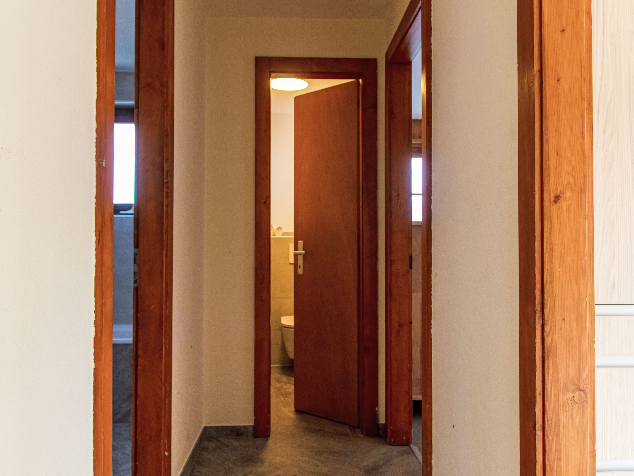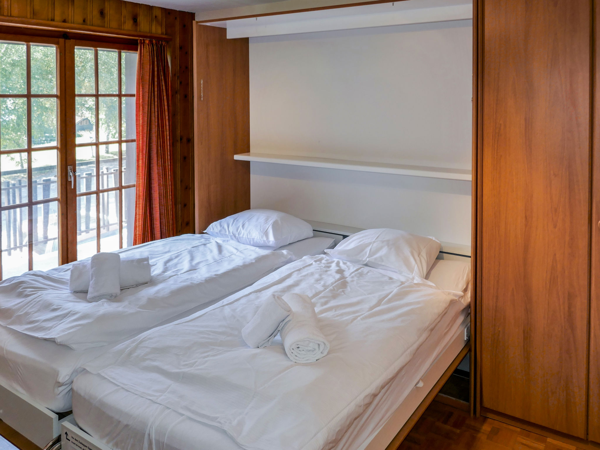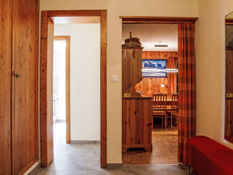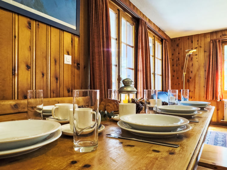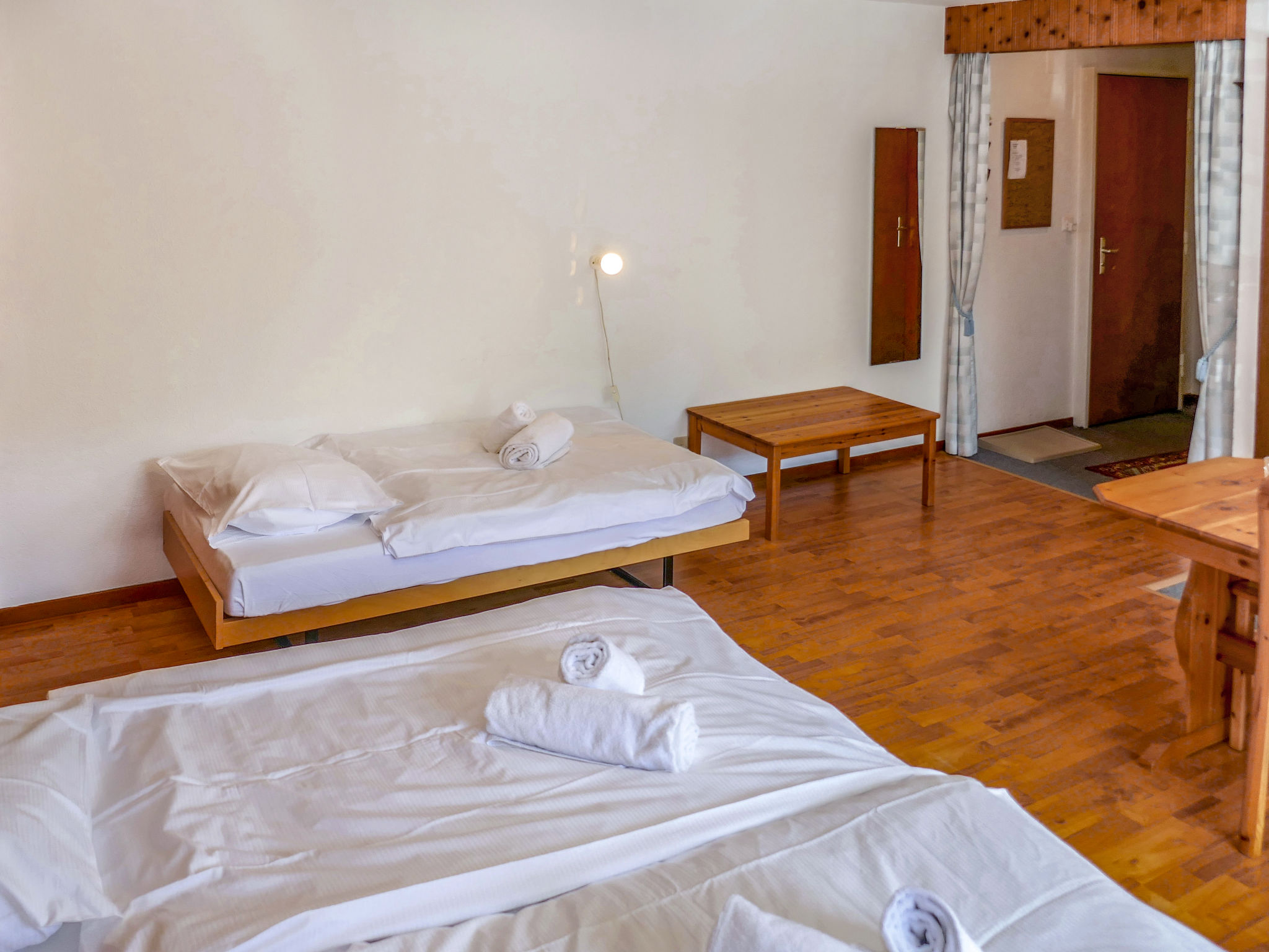 "Mont-Soleil 2&3", 4-Zimmer-Wohnung 120 m2 im 1. Stock. Teilweise renoviert im Jahre 2024, zweckmässig eingerichtet: Wohnzimmer mit Schiebetür mit 2 Wandklappbetten (90 cm, Länge 200 cm), offenem Kamin und Kabel-TV. Ausgang zum Balkon, Richtung Osten und Richtung Süden. 1 Zimmer mit 1 x 2 Etagenbetten (90 cm, Länge 200 cm). Ausgang zum Balkon, Richtung Norden. 1 Zimmer mit 1 franz. Bett (140 cm, Länge 200 cm). 1 Doppelzimmer 30 m2 mit 3 Betten (90 cm, Länge 190 cm), Bad/WC. Ausgang zum Balkon. Küche (4 Kochplatten, Backofen, Geschirrspüler, Toaster, Mikrowelle, Tiefkühler, Racletteofen, Fondue Set (Käse)). Bad/WC, sep. WC. 3 Balkone. Balkonmöbel. Sicht auf die Berge und das Tal. Zur Verfügung: Internet (Wireless LAN, gratis). Bitte beachten: ein Doppelzimmer liegt außerhalb der Wohnung. Nichtraucher-Unterkunft. Keine interne Verbindung zwischen den separaten Wohneinheiten. Dreibettzimmer mit separatem Zugang oder vom gemeinsamen Balkon aus.