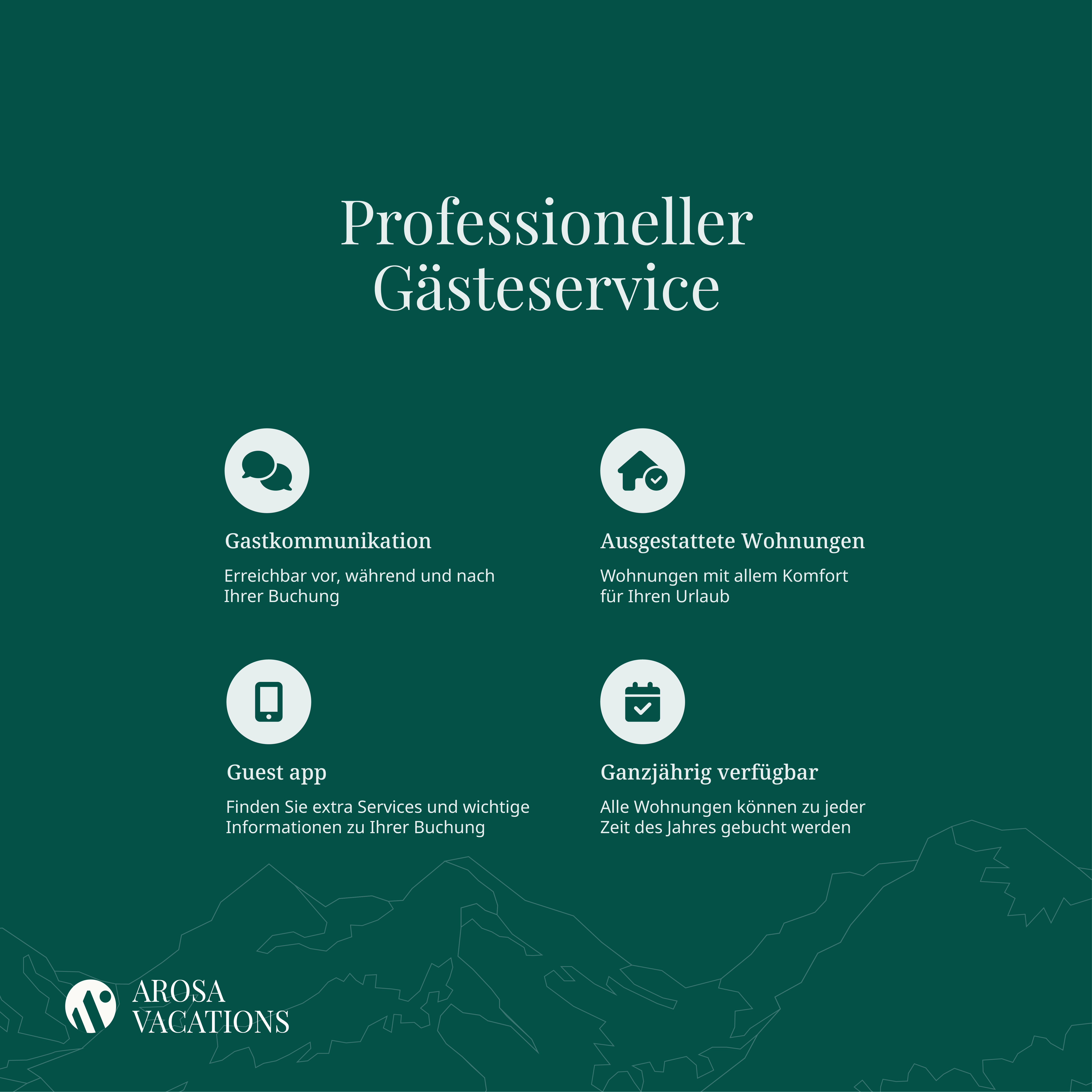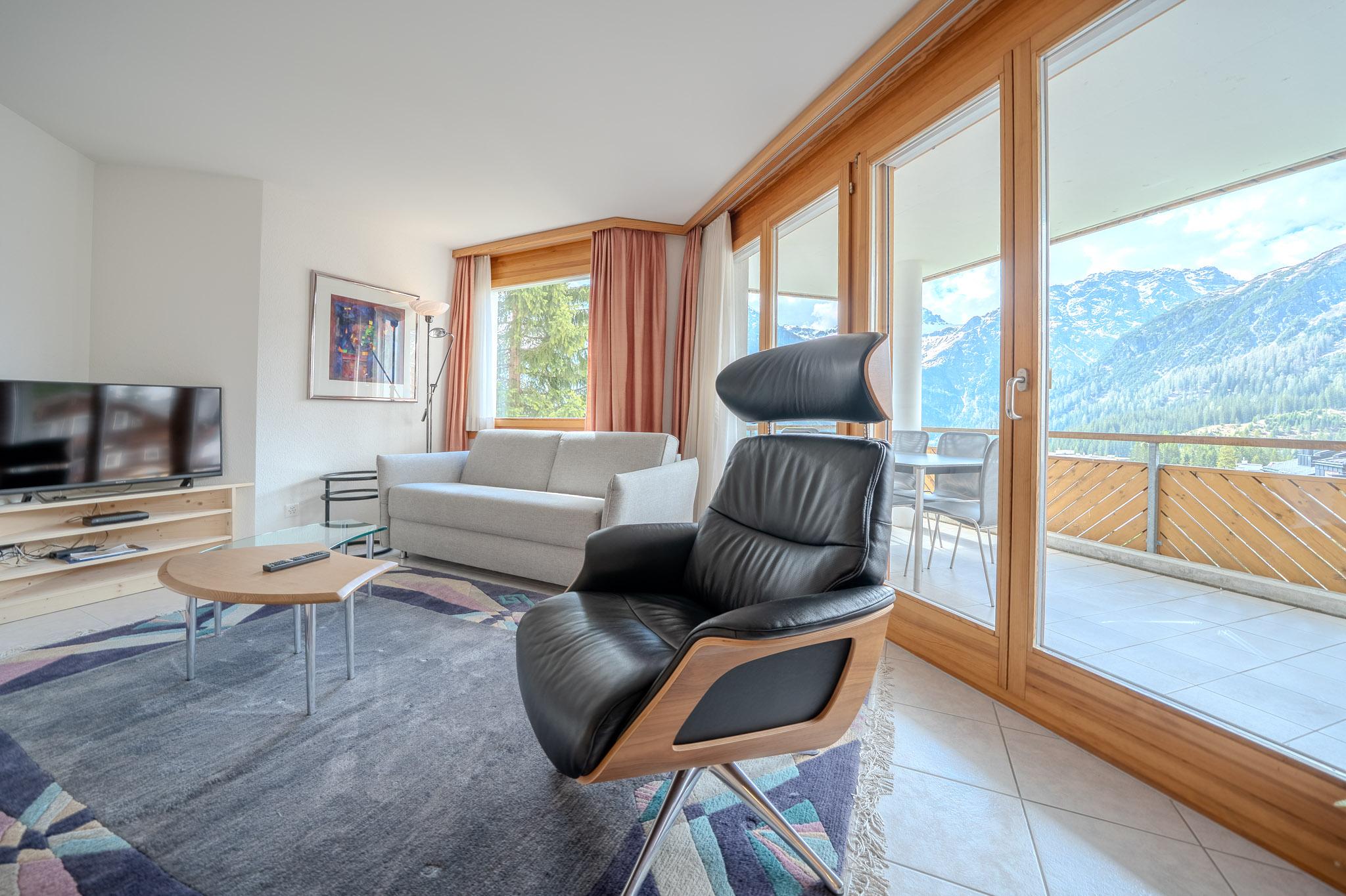 Diese vollständig ausgestattete und familienfreundliche Wohnung bietet Platz für bis zu 4 Gäste. Sie verfügt über zwei Schlafzimmer, zwei Badezimmer und einen grossen Balkon mit herrlicher Aussicht auf die Berge und Arosa. Die Wohnung vereint eine gemütliche Atmosphäre mit perfekter zentraler Lage – mit einem der beeindruckendsten Ausblicke in Arosa – und einem privaten Parkplatz in der Tiefgarage des Gebäudes.