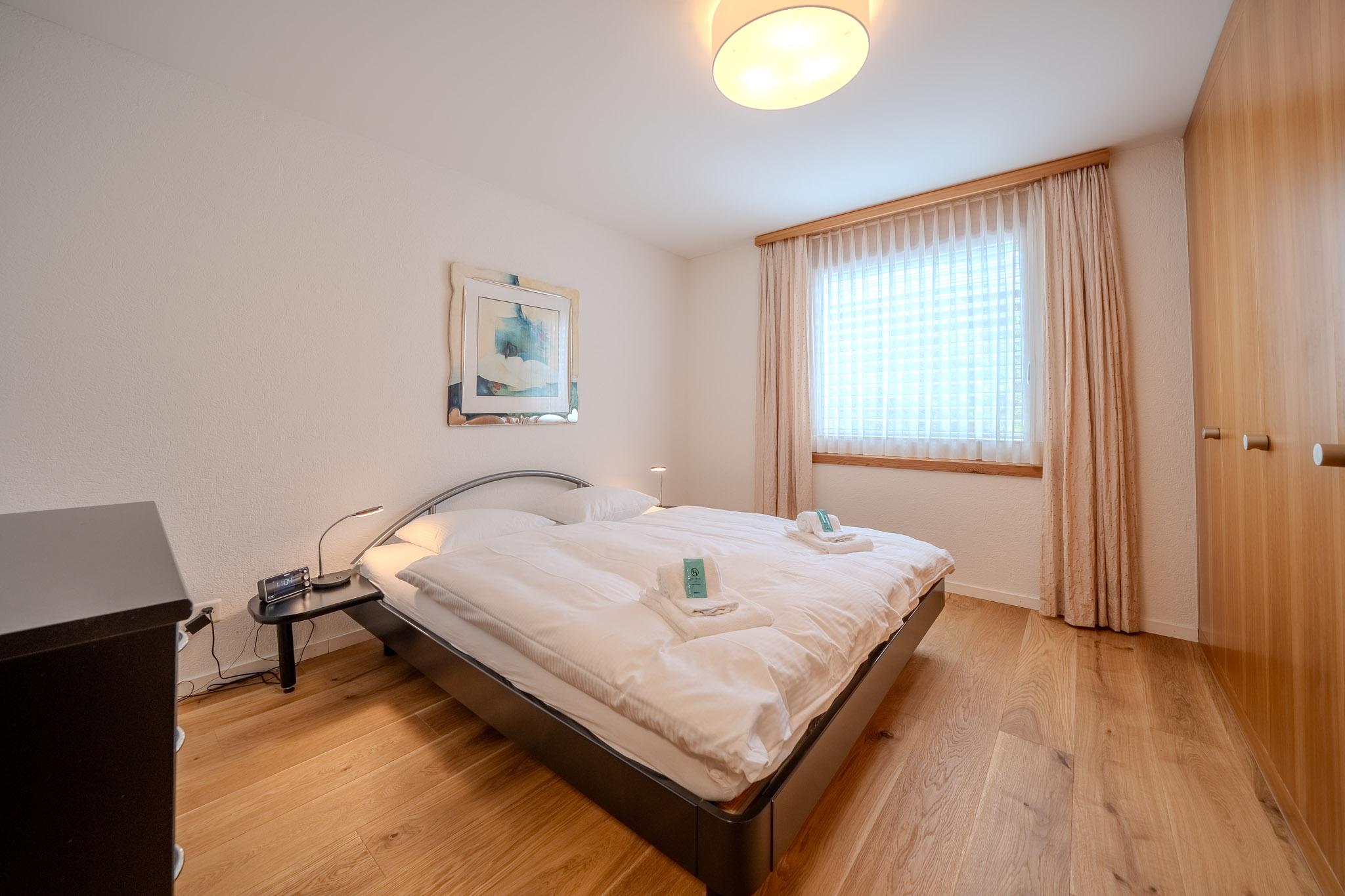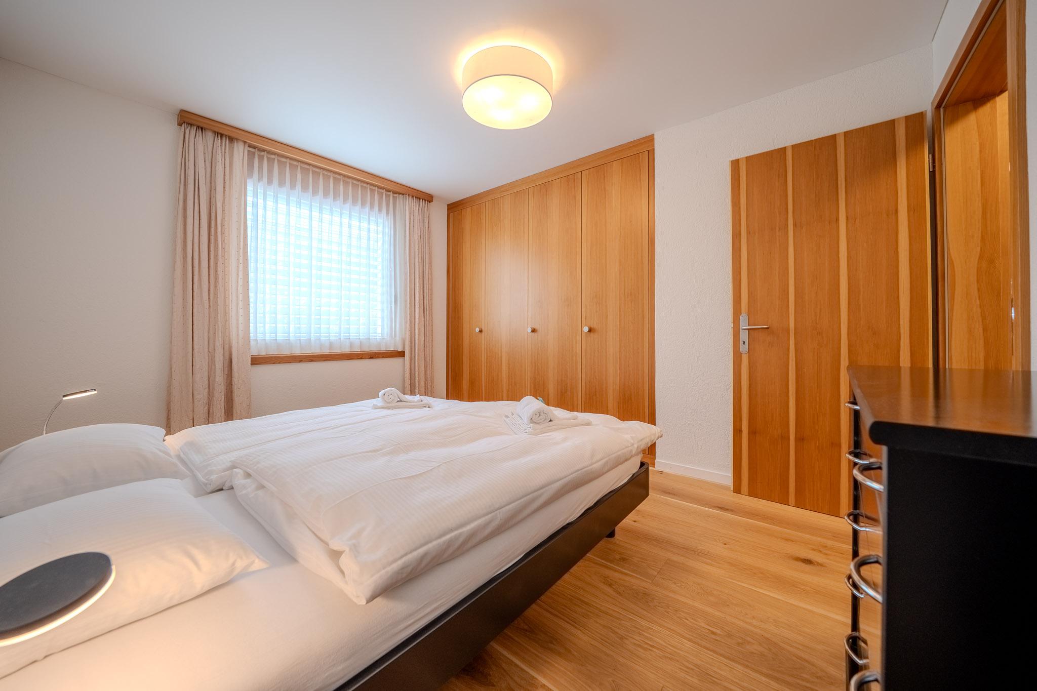 Restaurants, Geschäfte und die Bushaltestelle sind nur wenige Schritte entfernt – der perfekte Ausgangspunkt für entspannte Ferien in den Schweizer Alpen.