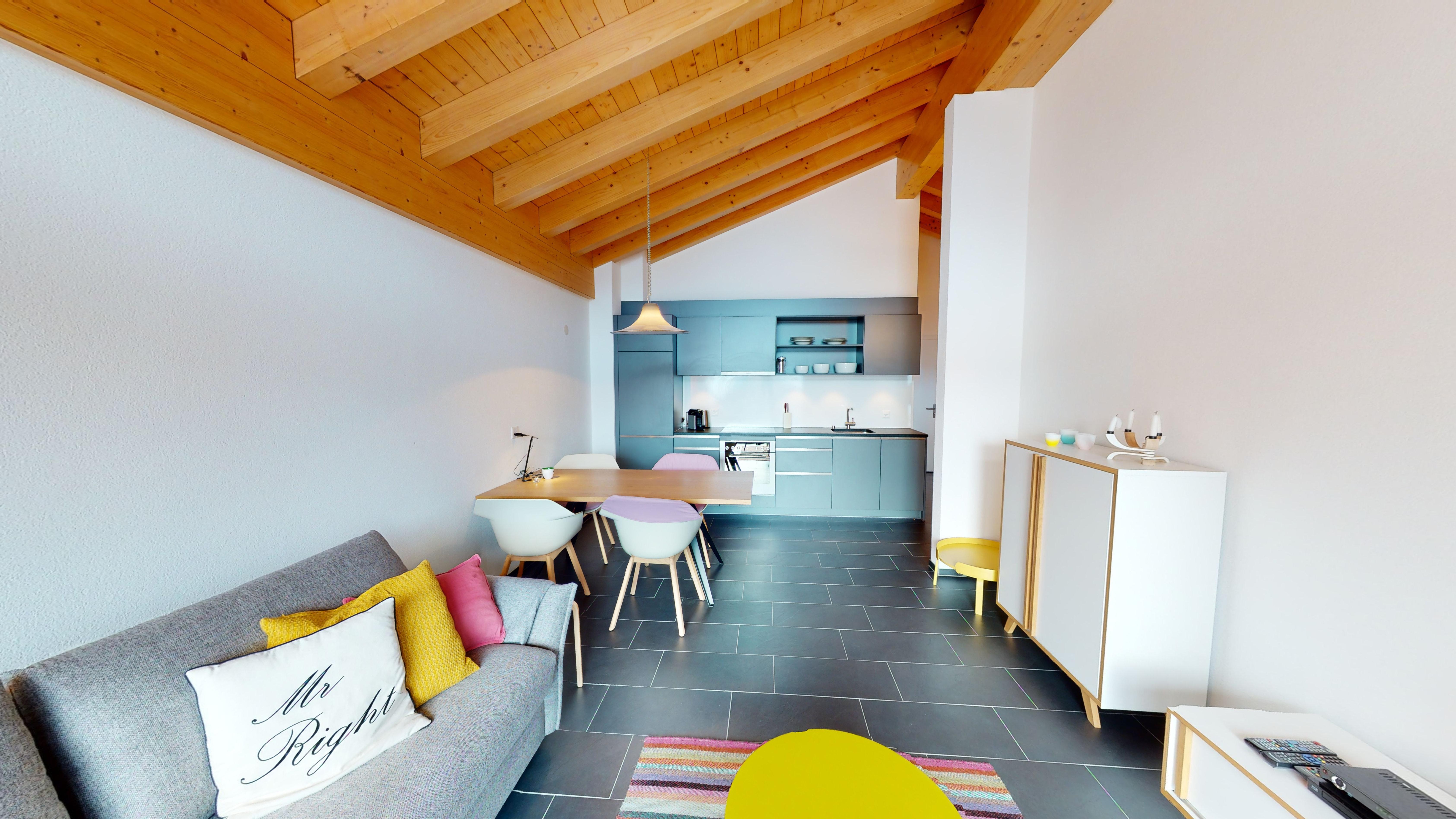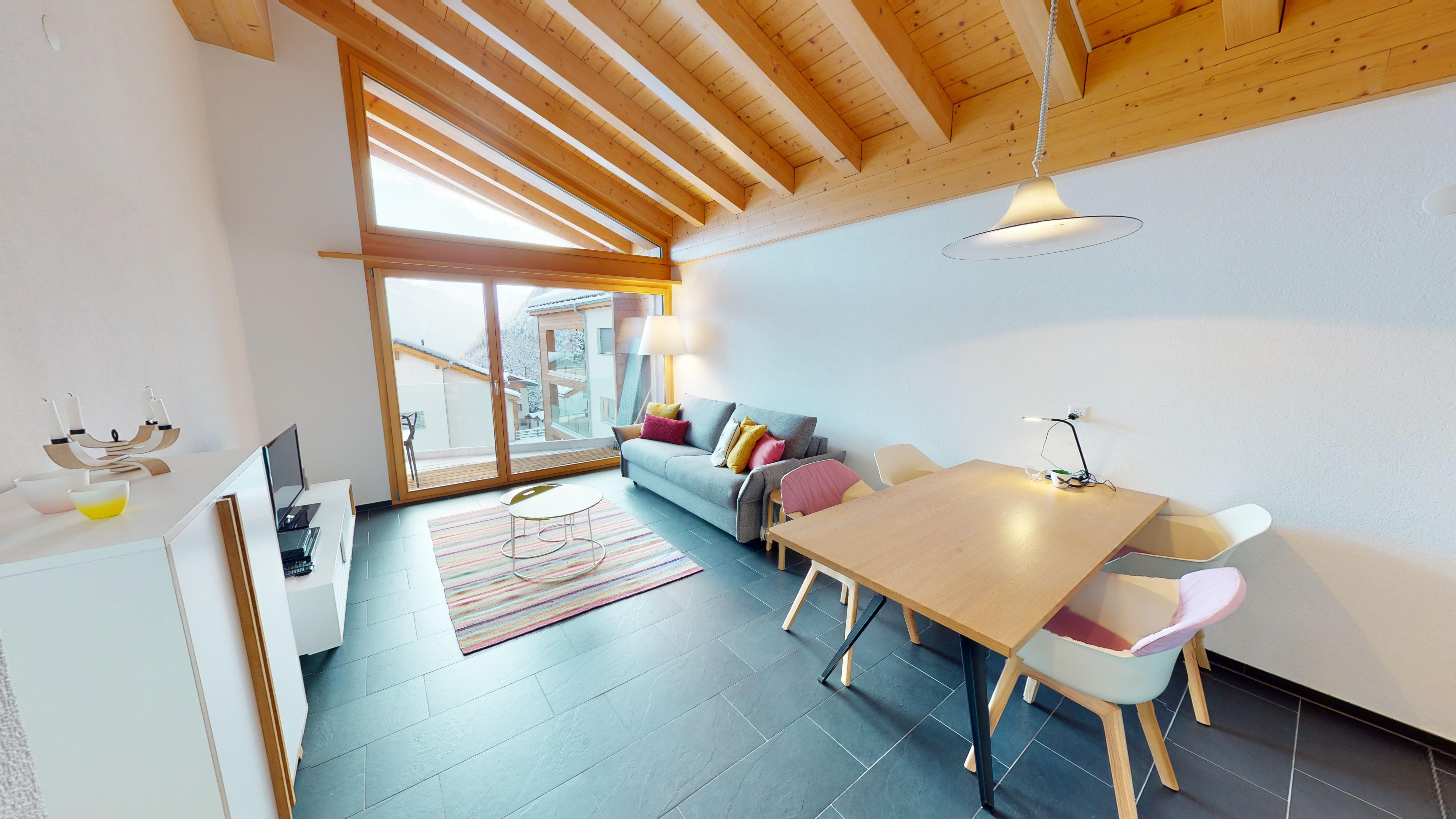 von Blatten ist atemberaubend. Die Wohnung besitzt einen Balkon sowie Zugang zur Einstellhalle und zu Waschküche und Skiraum. Rund zwei Gehminuten von der Talstation Blatten-Belalp und der Postautohaltestelle an exklusiver Lage. 7 km bis Naters.