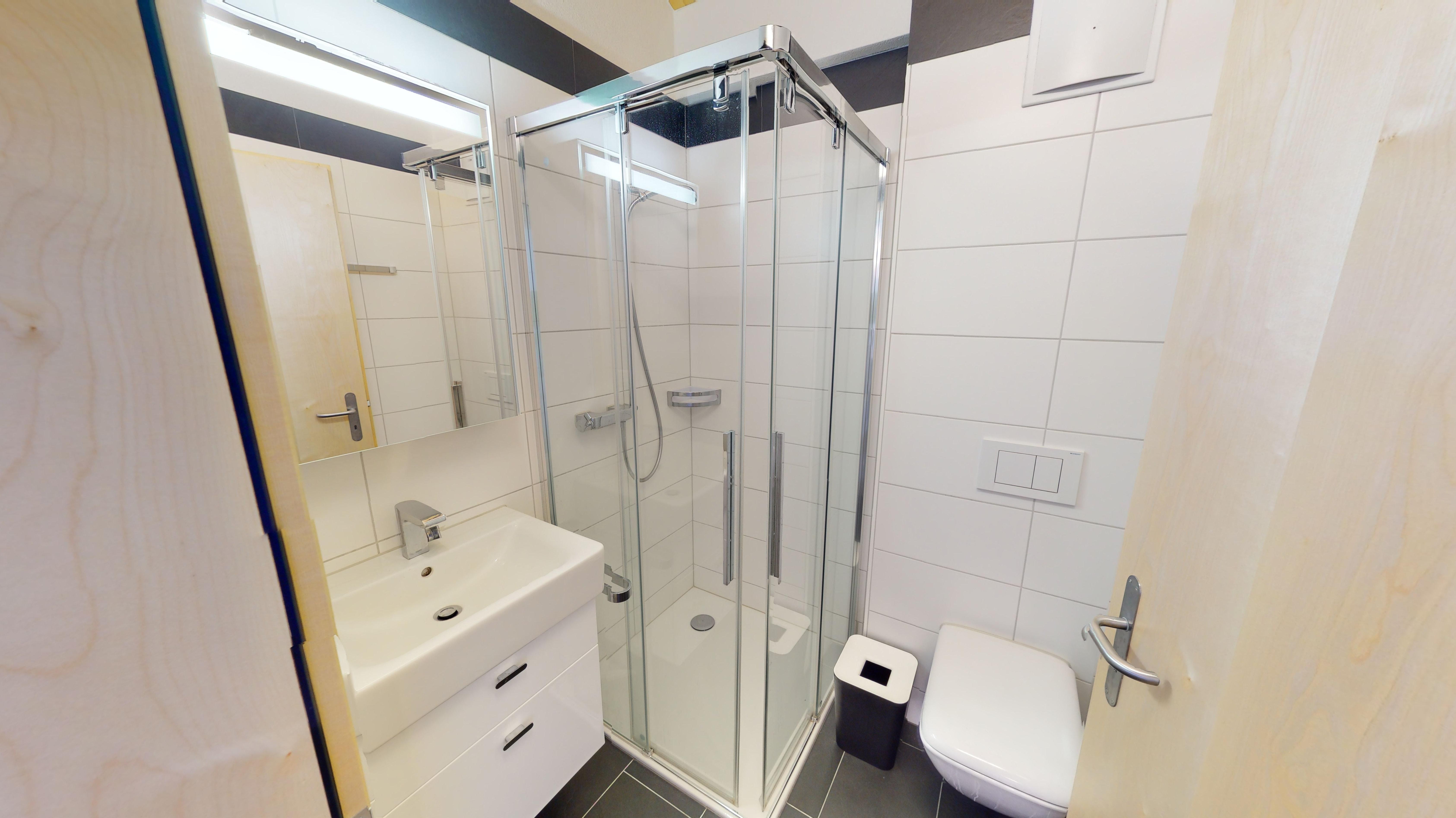 Das Haus A ist nicht direkt mit der Einstellhalle verbunden, Zugang über Haus B.