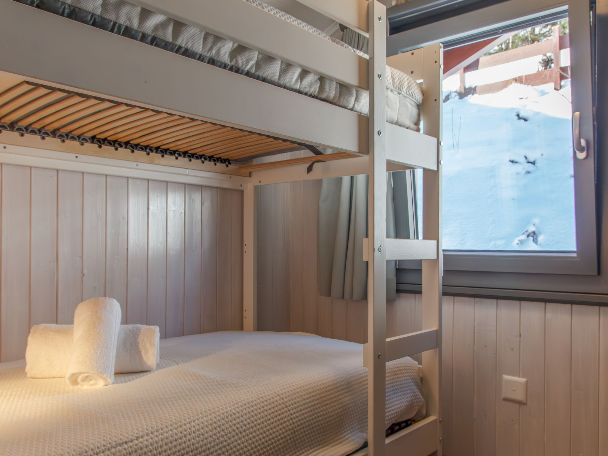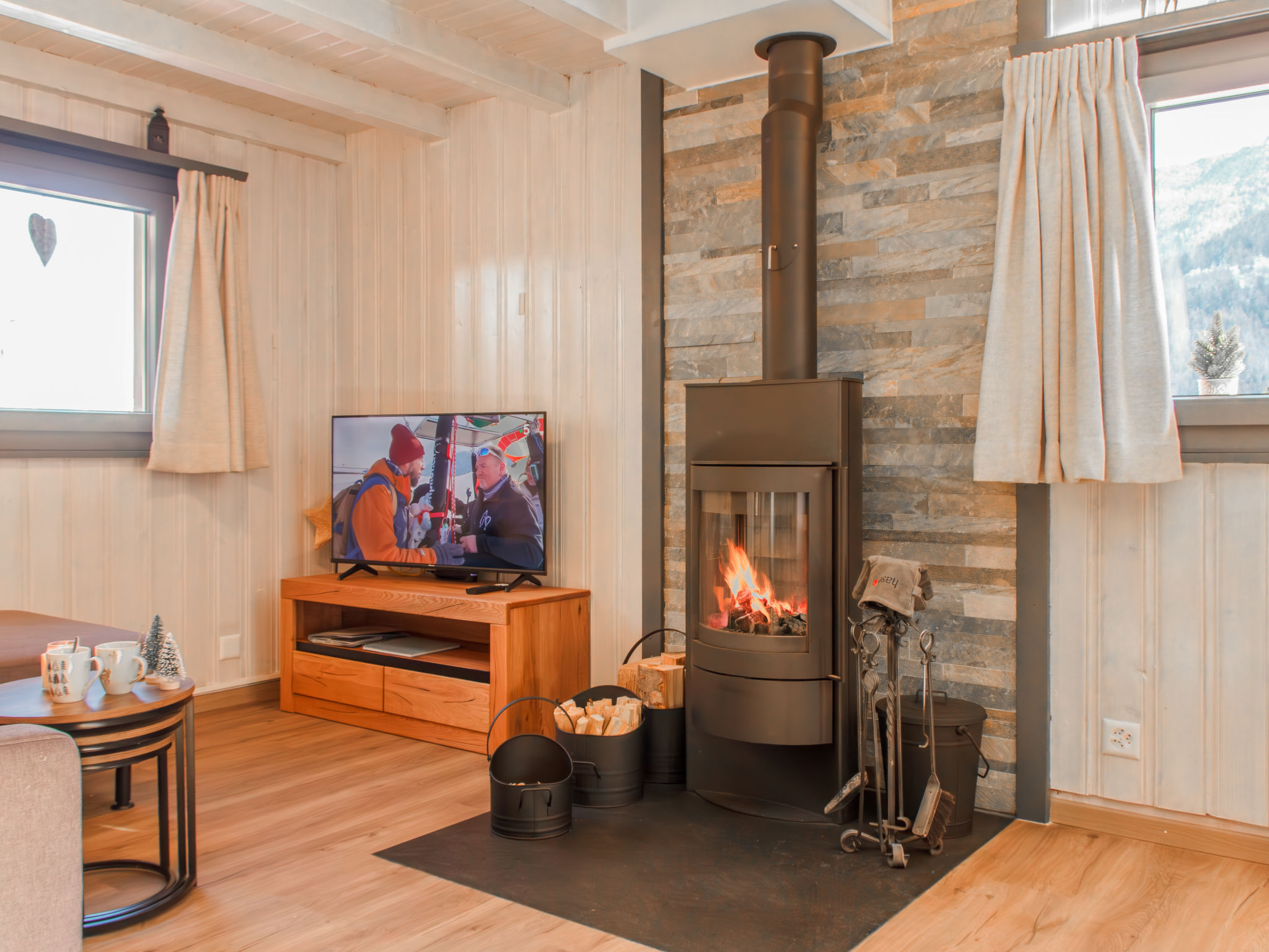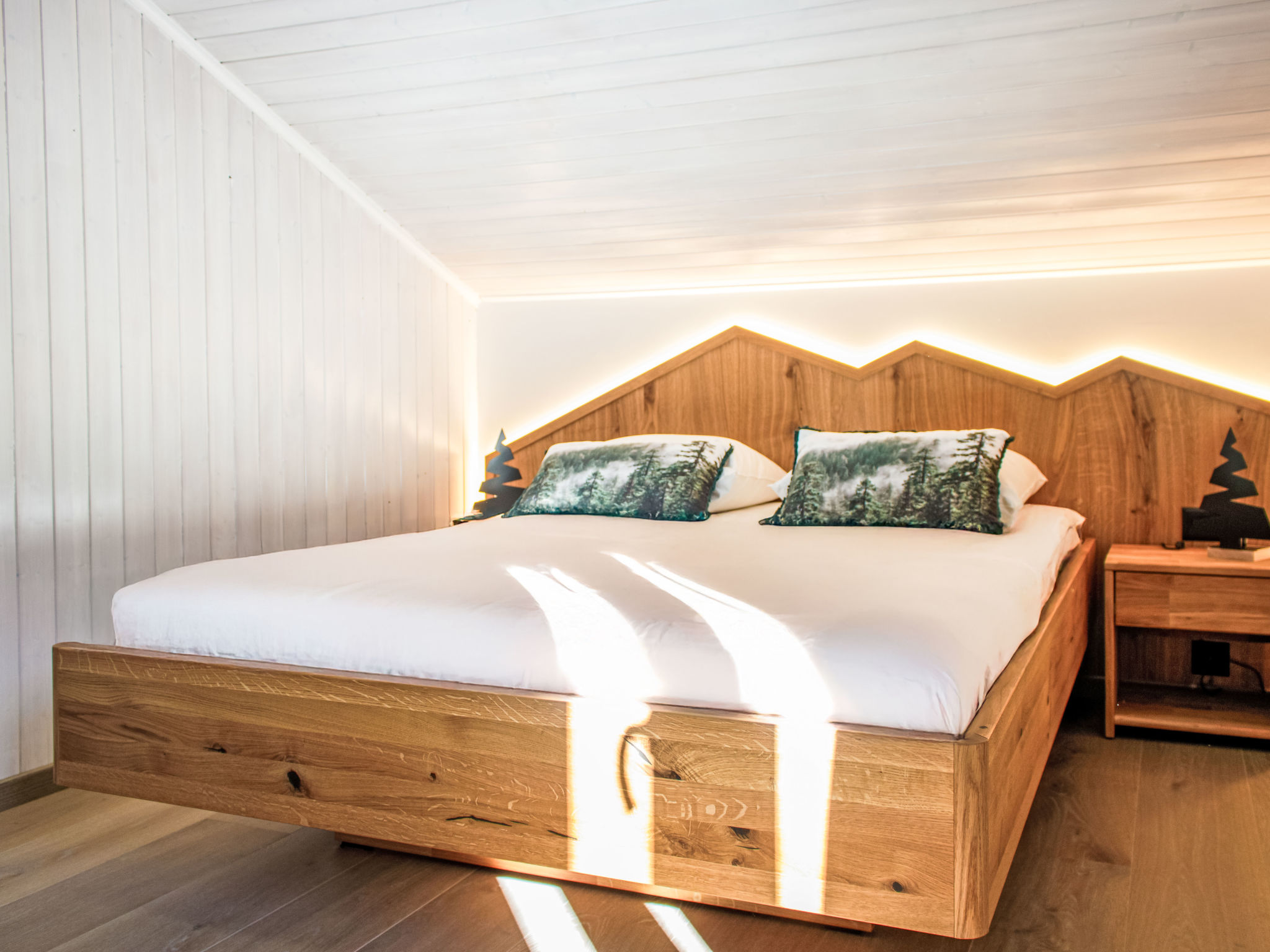"Boletus", 4-Zimmer-Chalet 65 m2 auf 2 Stockwerken. Renoviert im Jahre 2024, komfortabel und geschmackvoll eingerichtet: Eingang. Wohn-/Esszimmer mit Schwedenofen und Kabel-TV. Offene Küche (Geschirrspüler, 4 Glaskeramikplatten, Toaster, Wasserkocher, Mikrowelle, elektrische Kaffeemaschine, Kapseln für die Kaffeemaschine (Nespresso) extra, Racletteofen, Fondue Set (Käse)). Dusche/WC. E-Heizung. Obergeschoss: 1 Zimmer mit 1 x 2 Etagenbetten (90 cm, Länge 200 cm). 2 Zimmer, jedes Zimmer mit 1 franz. Bett (140 cm, Länge 200 cm). Bad/WC. Sehr schöne Sicht auf die Berge. Zur Verfügung: Haartrockner. Internet (Wireless LAN, gratis). Parkplatz. Bitte beachten: Nichtraucher-Unterkunft. Rauchmelder.