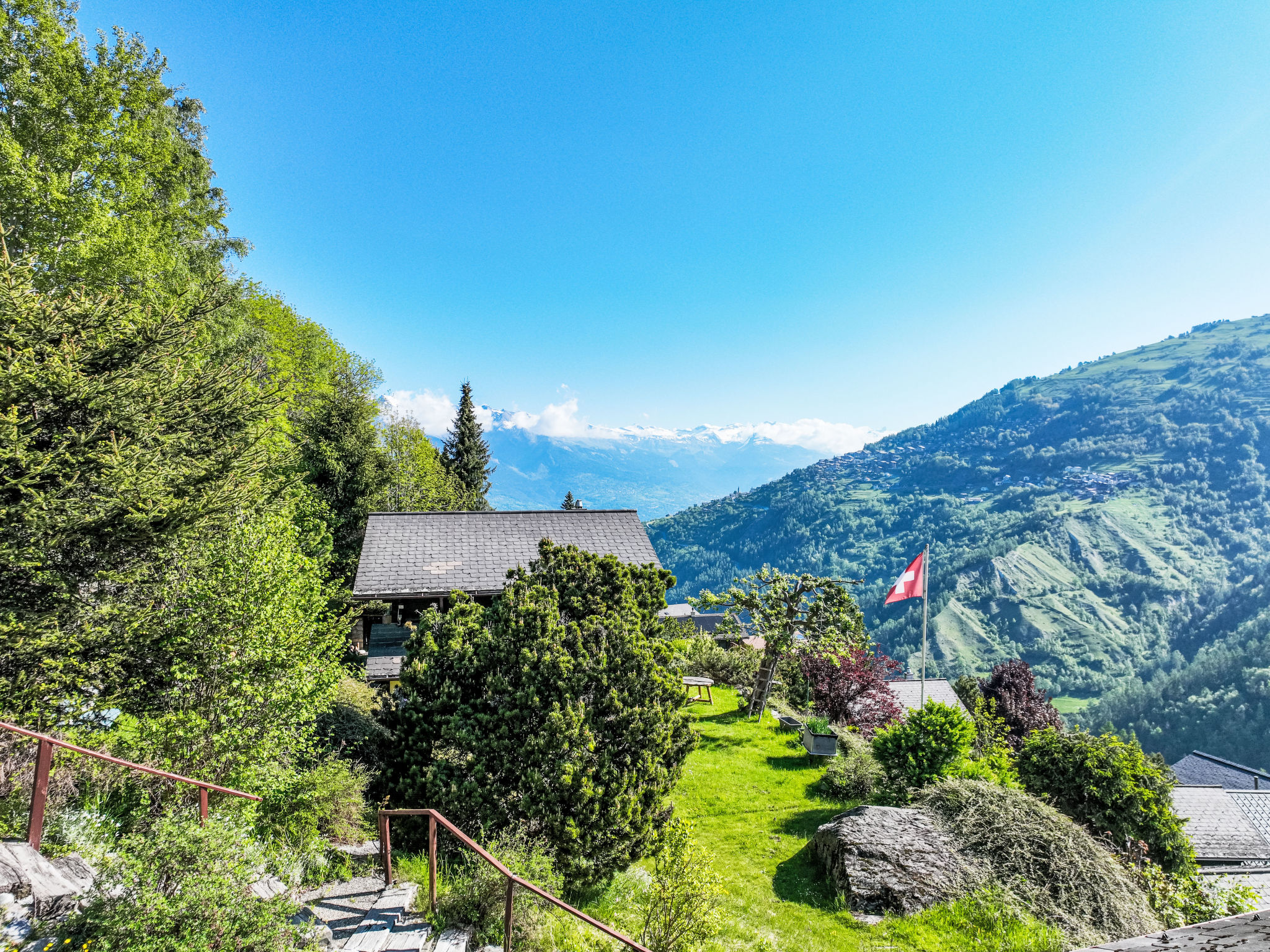Schönes Chalet "Le Boletus", auf 2 Stockwerken, renoviert im Jahre 2024. Im Weiler Saclentse, am Ortsrand, 2.8 km vom Zentrum von Haute-Nendaz, ruhige Lage, 3.2 km vom Skigebiet. Zur Alleinbenutzung: Naturgarten. Terrasse, Gartenmöbel, Grill. Im Winter bitte Schneeketten mitbringen, im Winter 4x4 empfohlen. Treppenweg (41 Stufen) bis zum Haus. Parkplatz. Einkaufsgeschäft 3 km, Supermarkt 4 km, Restaurant 2.8 km, Bäckerei 3 km, Bushaltestelle "Basse-Nendaz, Saclentz" 1.1 km, Bahnstation "Sion" 13.7 km. Tennis 4 km, Wanderwege ab Haus 100 m, Skibushaltestelle 1.4 km, Kinderspielplatz 3.8 km. Bekannte Skigebiete sind gut erreichbar: Nendaz tracouet 3.2 km, Siviez 4 Vallées 6.5 km. Wandergebiete: Les Bisses d'en bas Nendaz 100 m. Bitte beachten: Fahrzeug empfohlen.