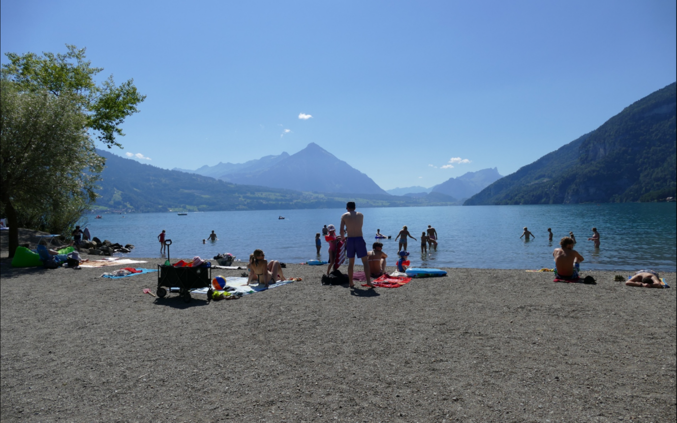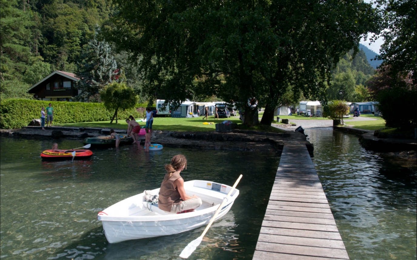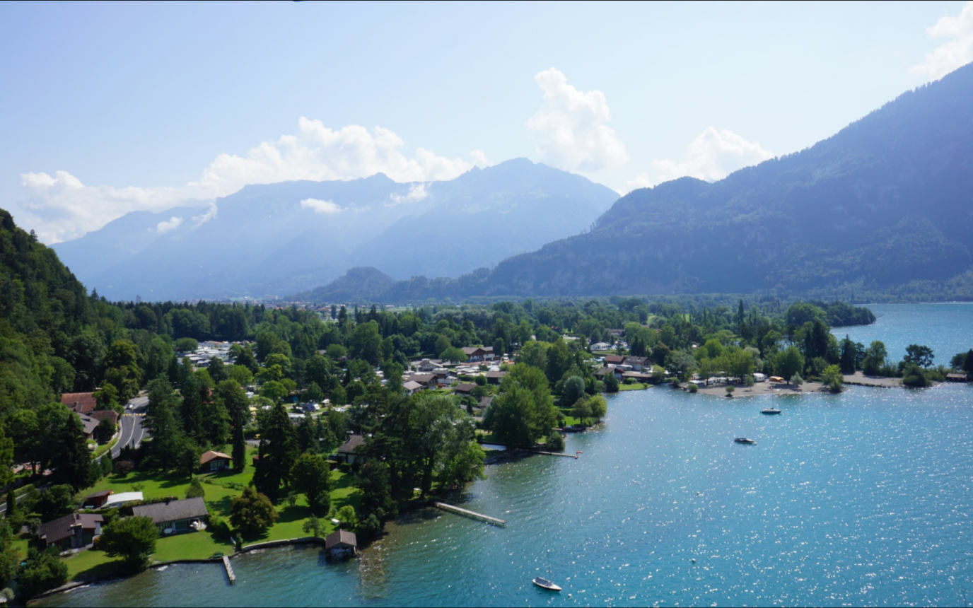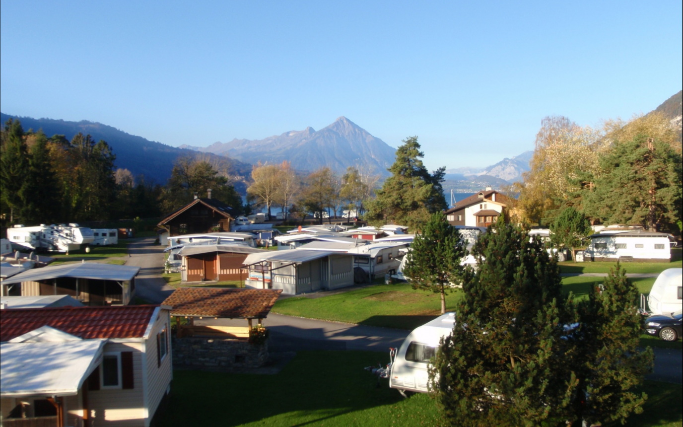Sehr komfortabler Camping als Teil des Ferien- und Wassersportzentrums Neuhaus Manor Farm direkt am sauberen Thunersee inmitten einer herrlichen Bergwelt. Ausgangspunkt für zahlreiche Ausflüge.