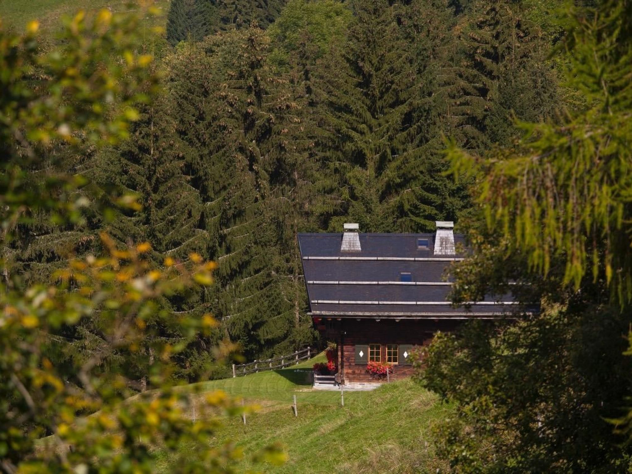Das Chalet grenzt an ein Naturschutzgebiet, in dem es reichlich heiteres Wild gibt.