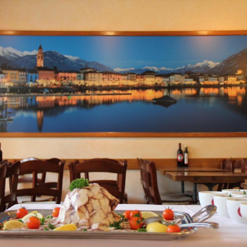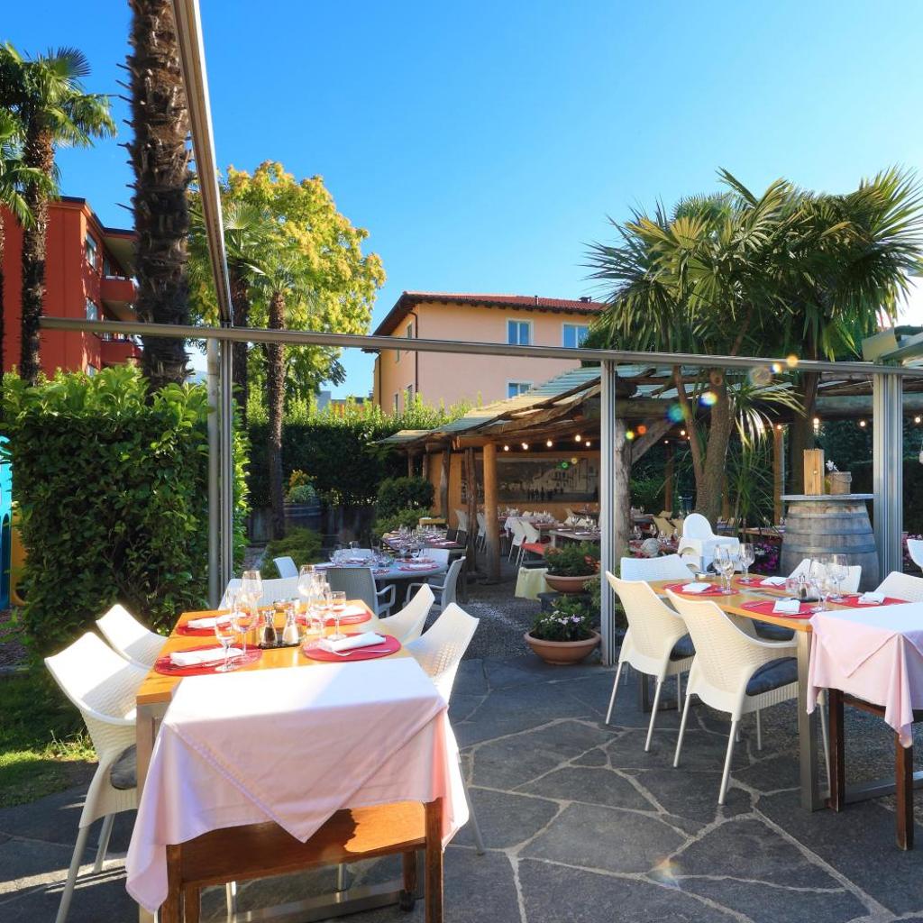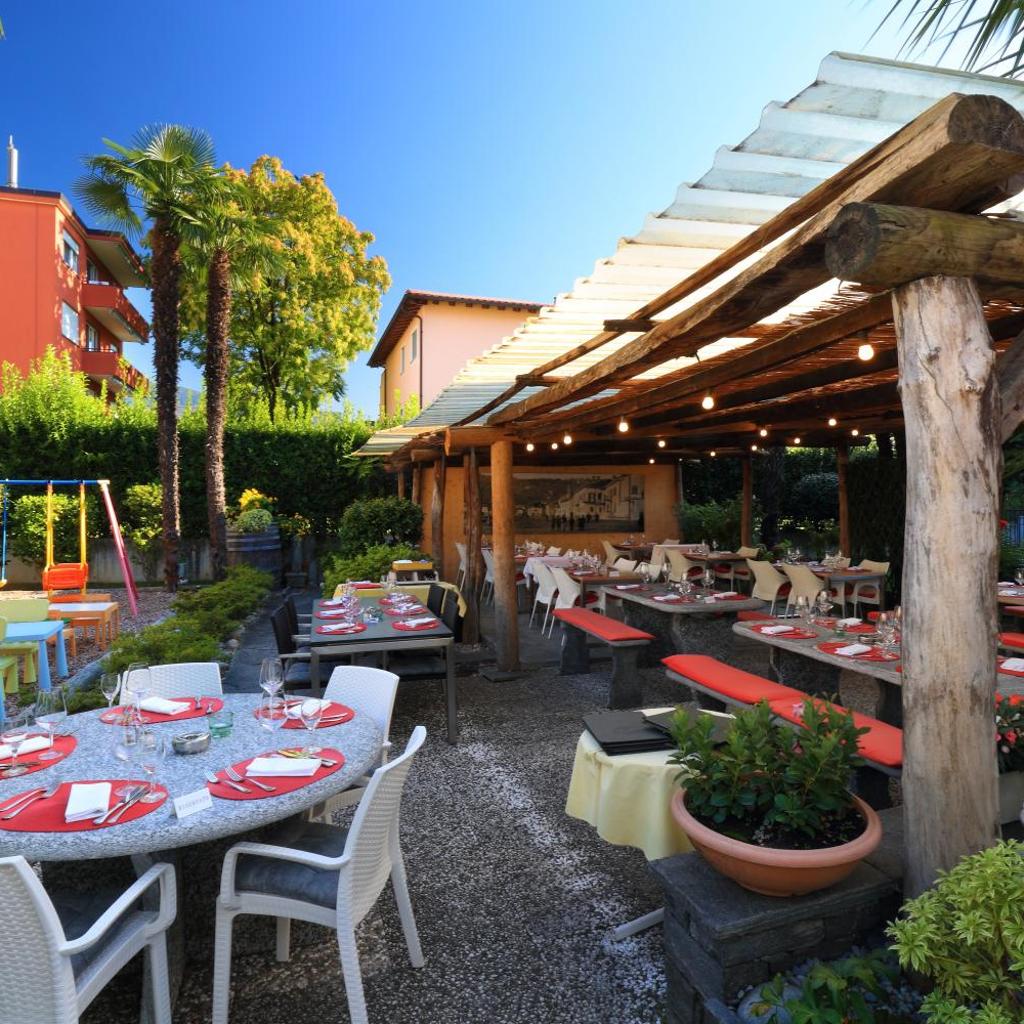Das Restaurant verfügt über eine Sonnenterrasse mit Blick auf den Garten. Es serviert traditionelle Speisen aus Tessin und italienische Gerichte. Bei schönem Wetter wird das Frühstück auf der Terrasse gereicht.