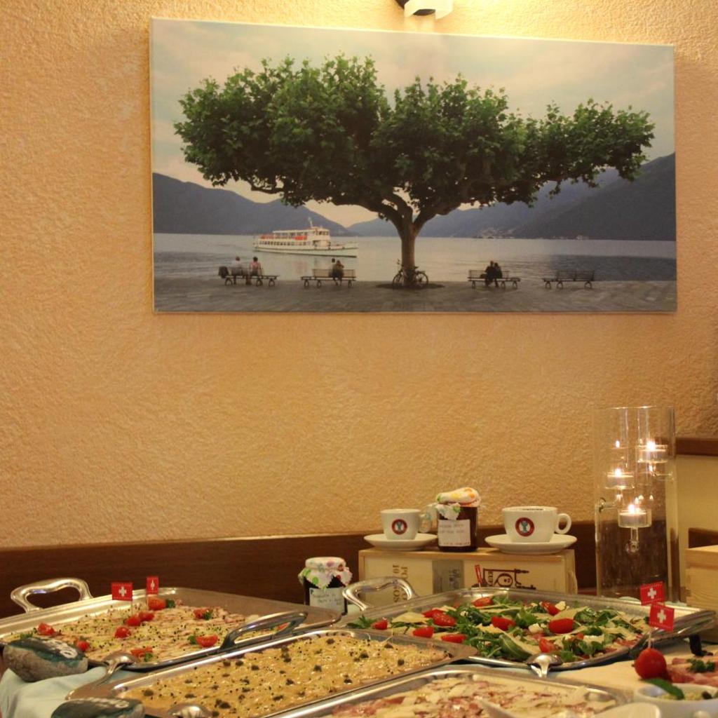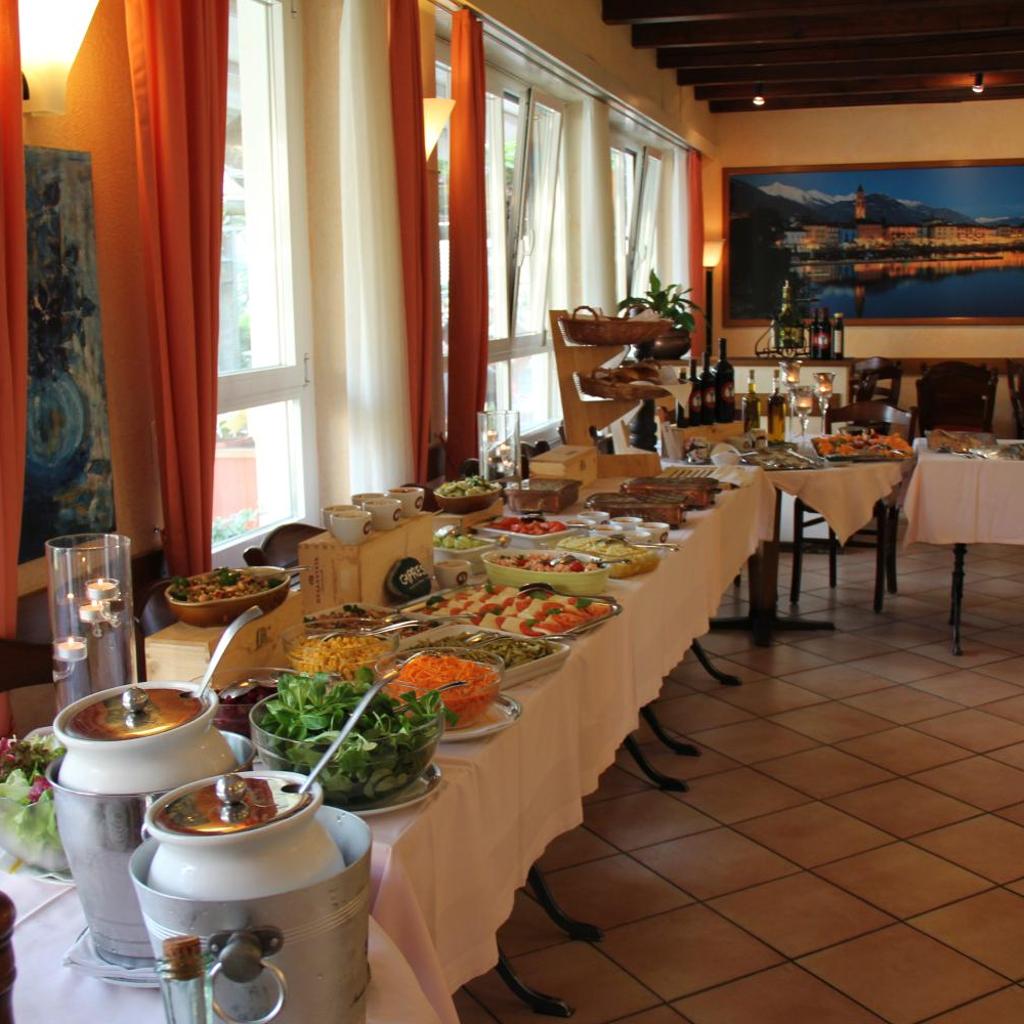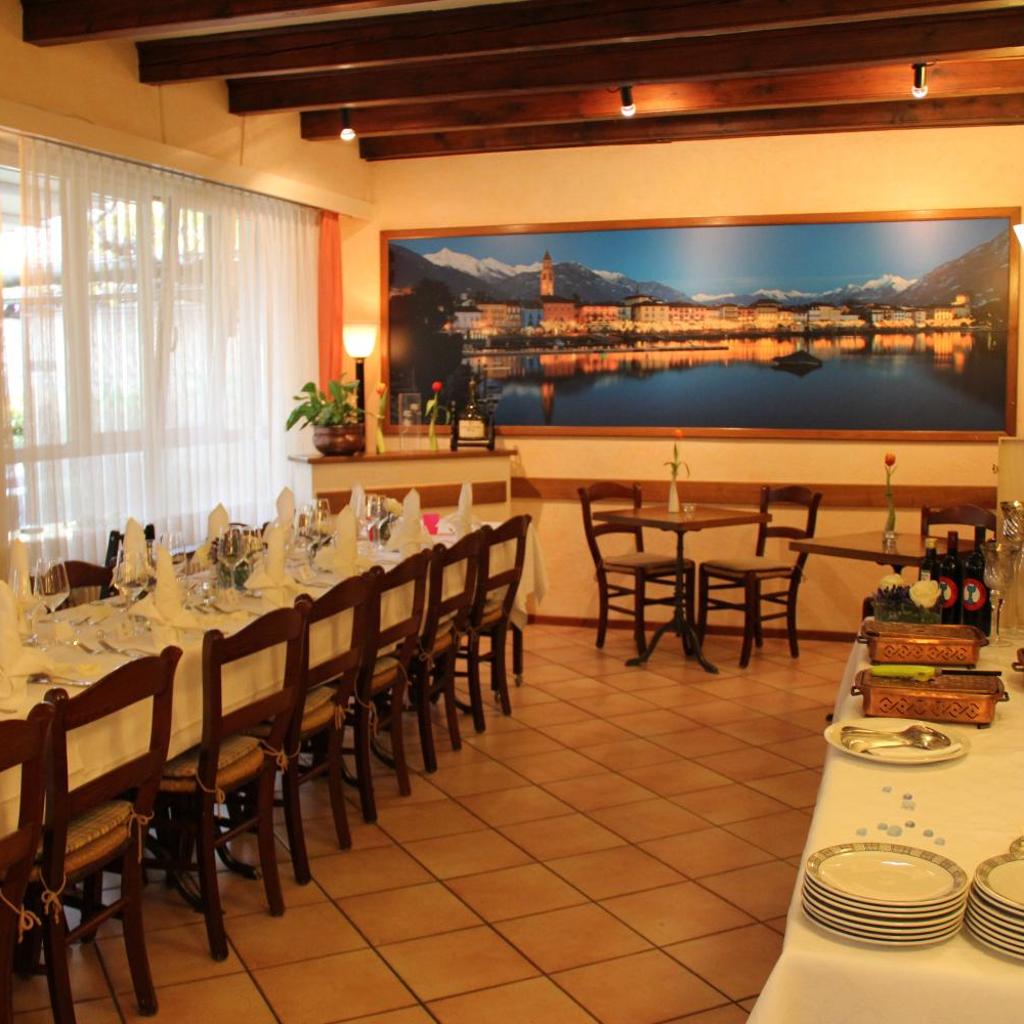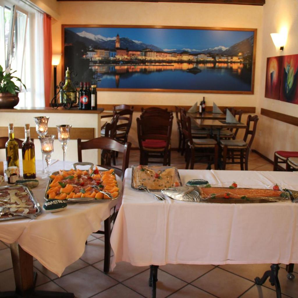 Das Restaurant verfügt über eine Sonnenterrasse mit Blick auf den Garten. Es serviert traditionelle Speisen aus Tessin und italienische Gerichte. Bei schönem Wetter wird das Frühstück auf der Terrasse gereicht.