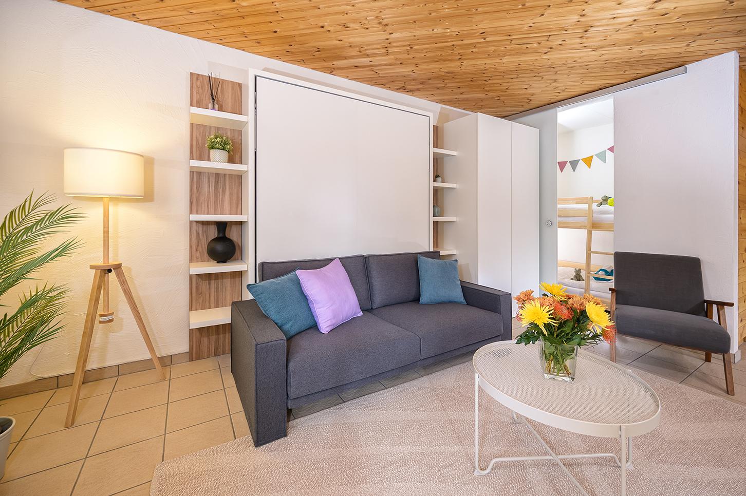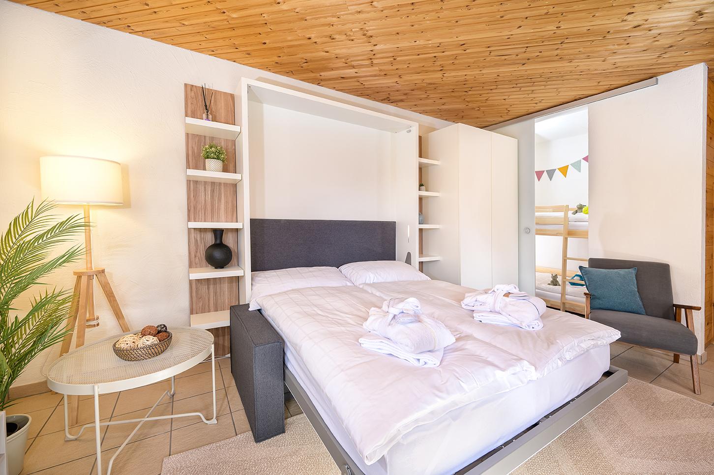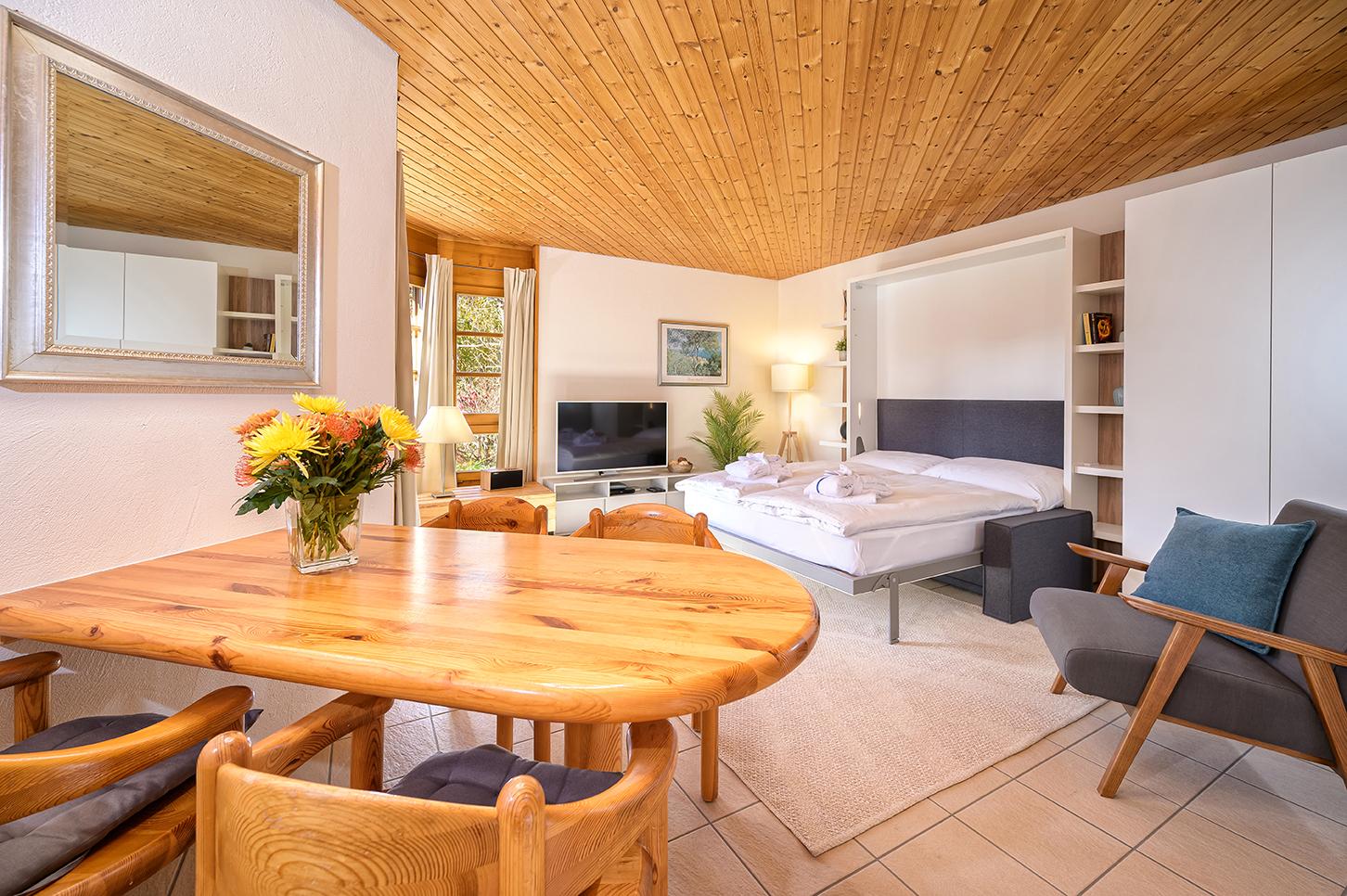 Die Ferienwohnungen befinden sich im Gebäudekomplex des Hotel Schweizerhof in Lenzerheide. Sie können auf Wunsch gewisse Dienstleistungen des Hotels in Anspruch nehmen, oder sie als ganz gewöhnliche Ferienwohnung nutzen. Der Hotelkomplex befindet sich Mitten im Ortskern von Lenzerheide. Die Skilifte sind mit dem Sportbus kostenfrei zu erreichen. Die Langlaufloipe befindet sich direkt am Gebäude. Diese bestimmte Wohnung befindet sich im Sektor 5 des Hotel Schweizerhof.