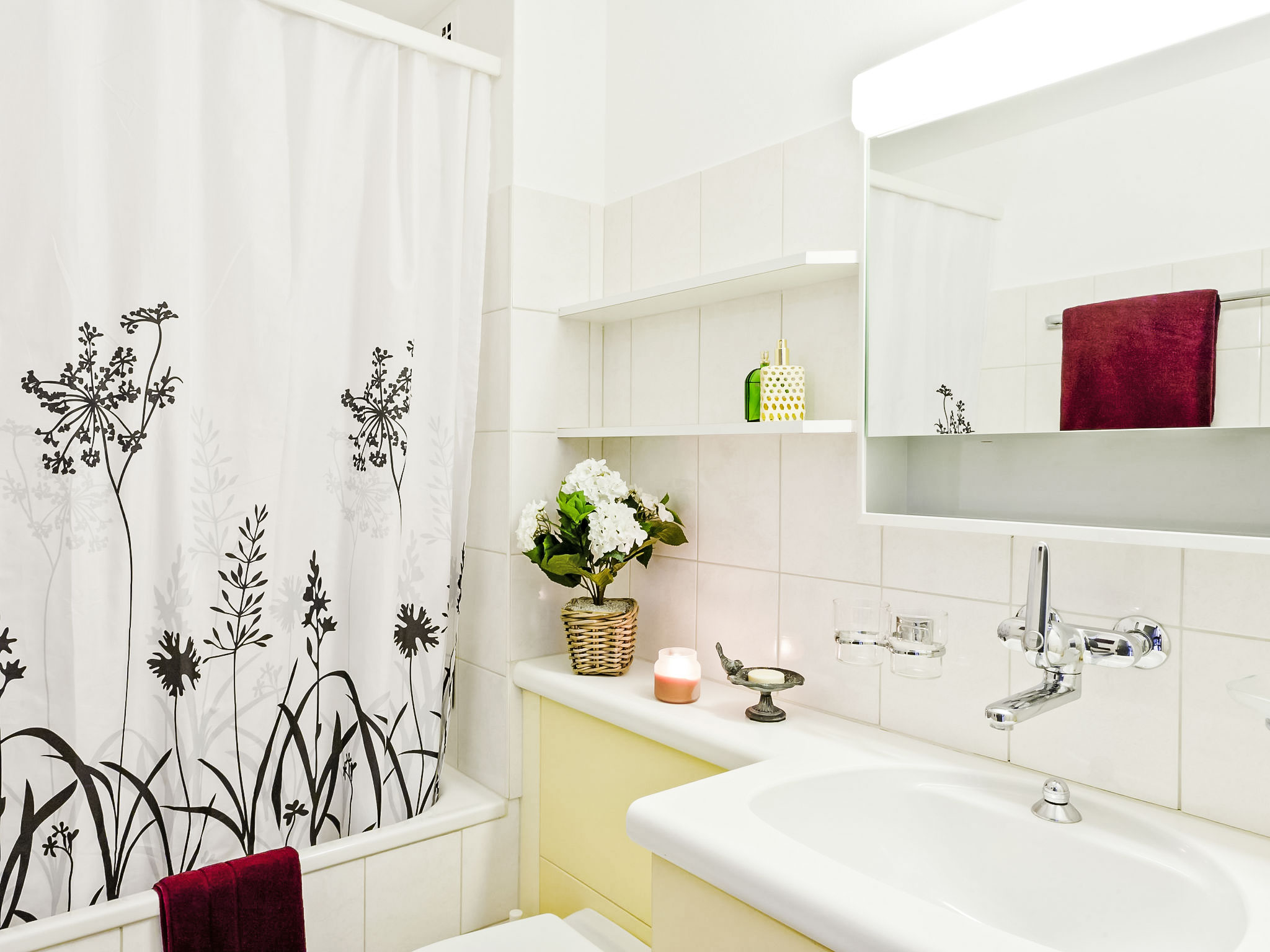 "Junior Suite", 2-Zimmer-Wohnung 50 m2 im 1. Stock, Südlage. Zweckmässig eingerichtet: Wohn-/Esszimmer mit 1 Doppeldiwanbett (1 x 160 cm, Länge 200 cm), Sat-TV und Radio. 1 Zimmer mit 2 Betten (90 cm, Länge 200 cm). Küche (4 Kochplatten, Backofen, Geschirrspüler, elektrische Kaffeemaschine, Kapseln für die Kaffeemaschine (Nespresso) extra). Bad/WC. Warmluftheizung. Balkon. Terrassenmöbel. Zur Verfügung: Internet (Wireless LAN, gratis). Bitte beachten: Nichtraucher-Unterkunft. Maximal 1 Haustier/Hund erlaubt. NL-00008120