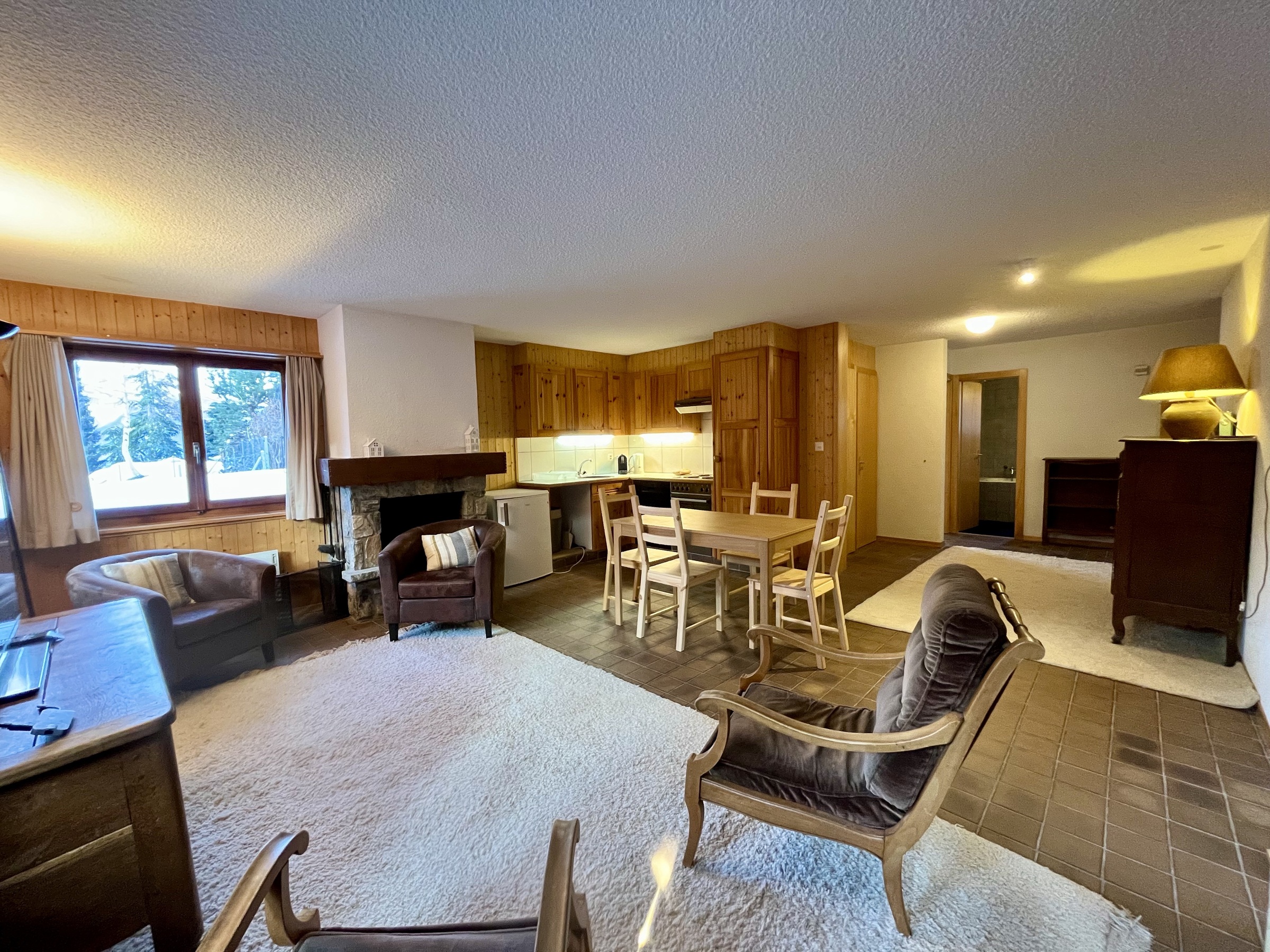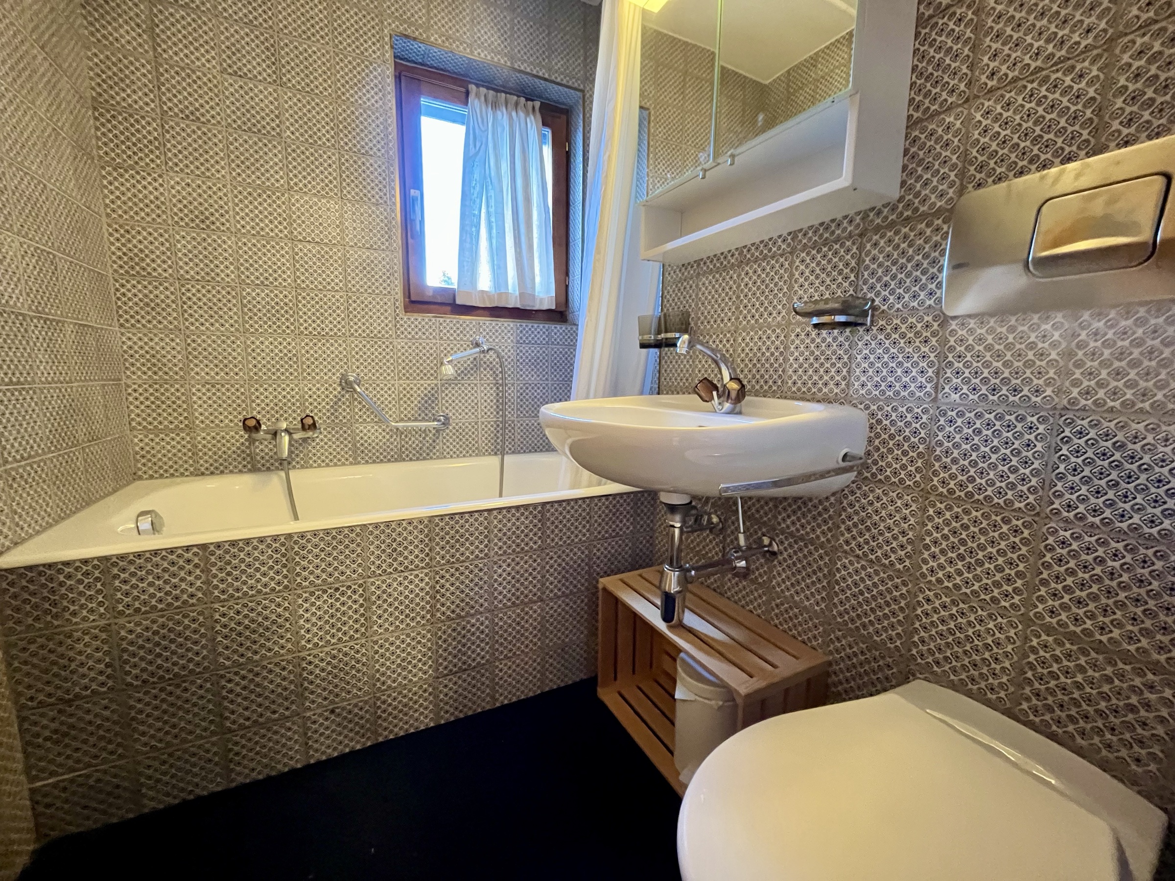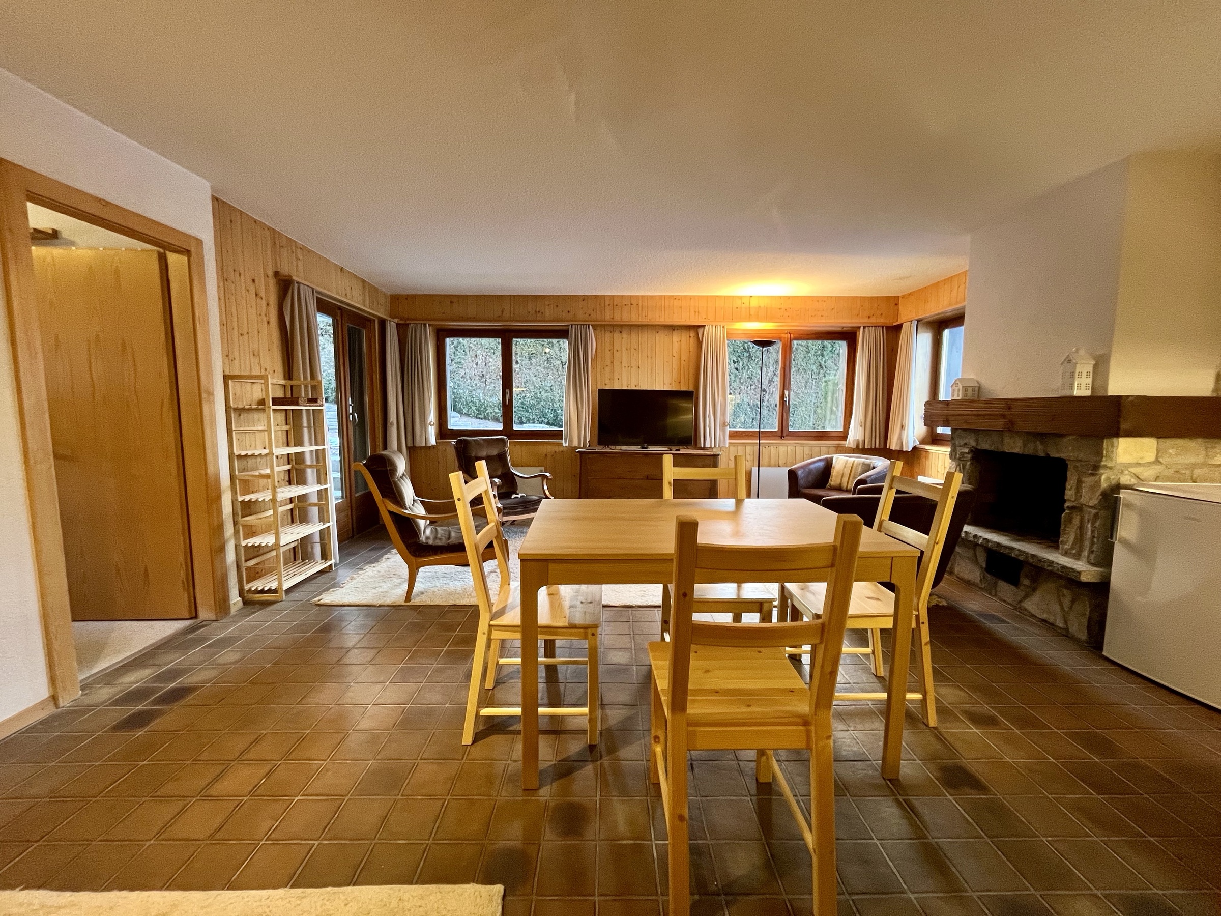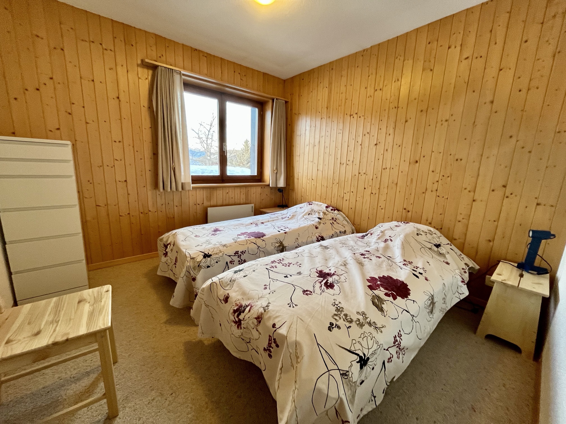 Charmante 4-Zimmer-Wohnung in einem Chalet, 6 Personen. Sie besteht aus: Eingangshalle, separates WC mit Waschbecken und Toilette, Abstellraum mit Waschmaschine, geräumiges Wohnzimmer, Sofa, TV und WLAN, Küche mit Herd, Kühlschrank mit Gefrierfach, 1 Schlafzimmer für 2 Personen mit einem Doppelbett, 1 Schlafzimmer für zwei Personen mit zwei nebeneinander stehenden Betten, 1 Schlafzimmer mit 1 Etagenbett für 2 Personen, 1 Badezimmer mit Badewanne, WC, Waschbecken. Außenbereich: 1 Parkplatz. Shuttlebus-Haltestelle 50 m vom Chalet entfernt. Nur wenige Gehminuten vom lebhaften Zentrum des Ferienortes mit seinen Restaurants, Bars und anderen Annehmlichkeiten entfernt. Ganzjährig leicht erreichbar.