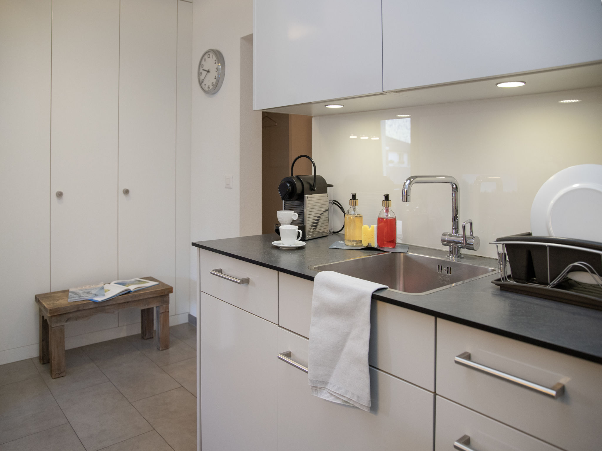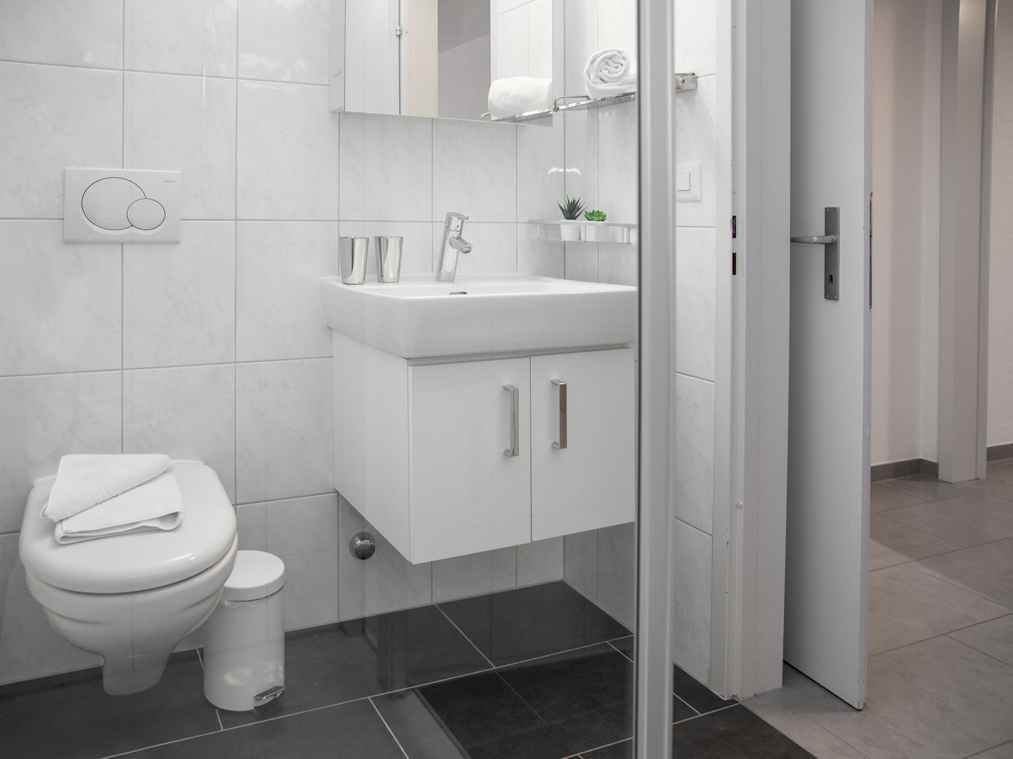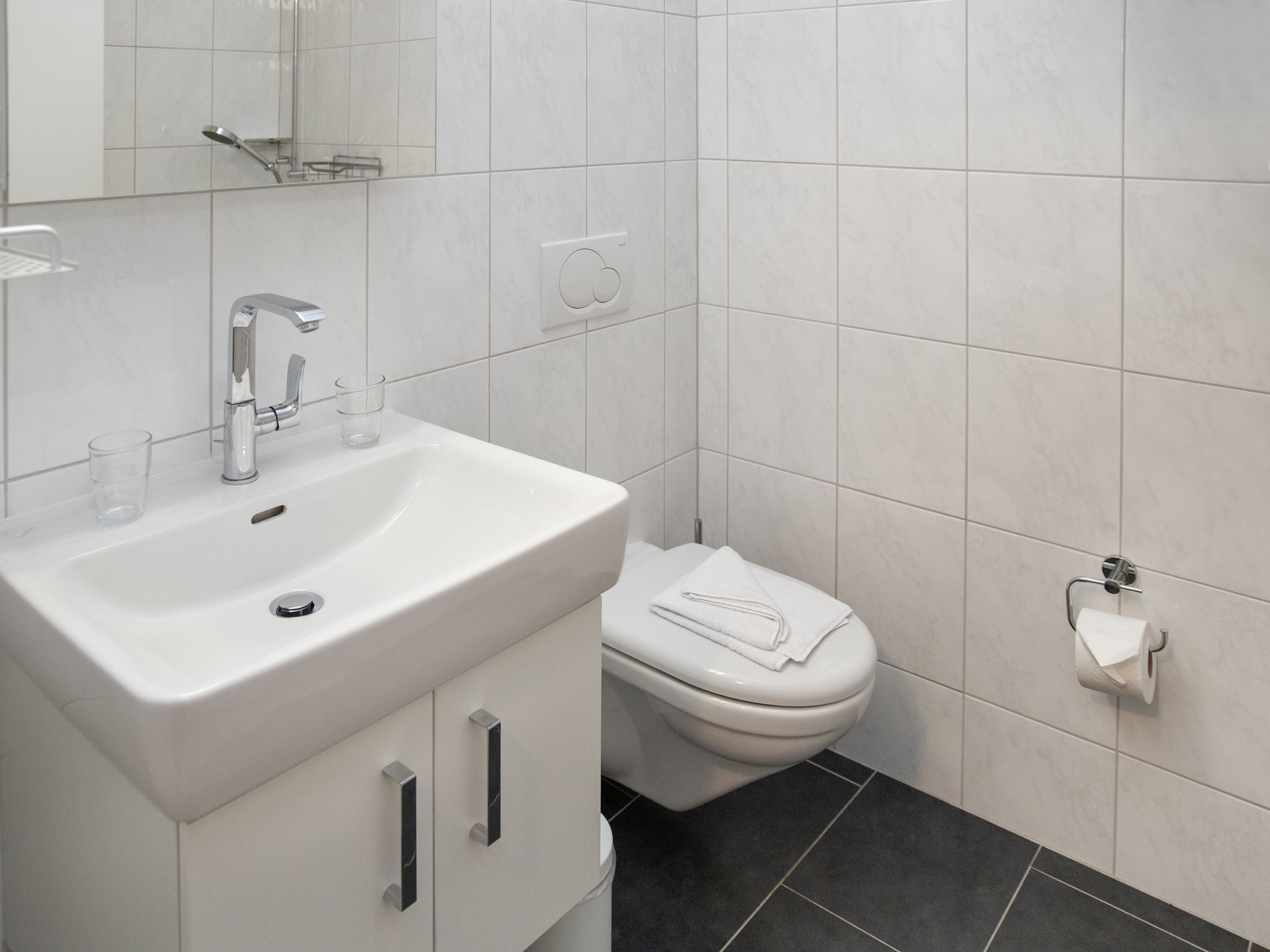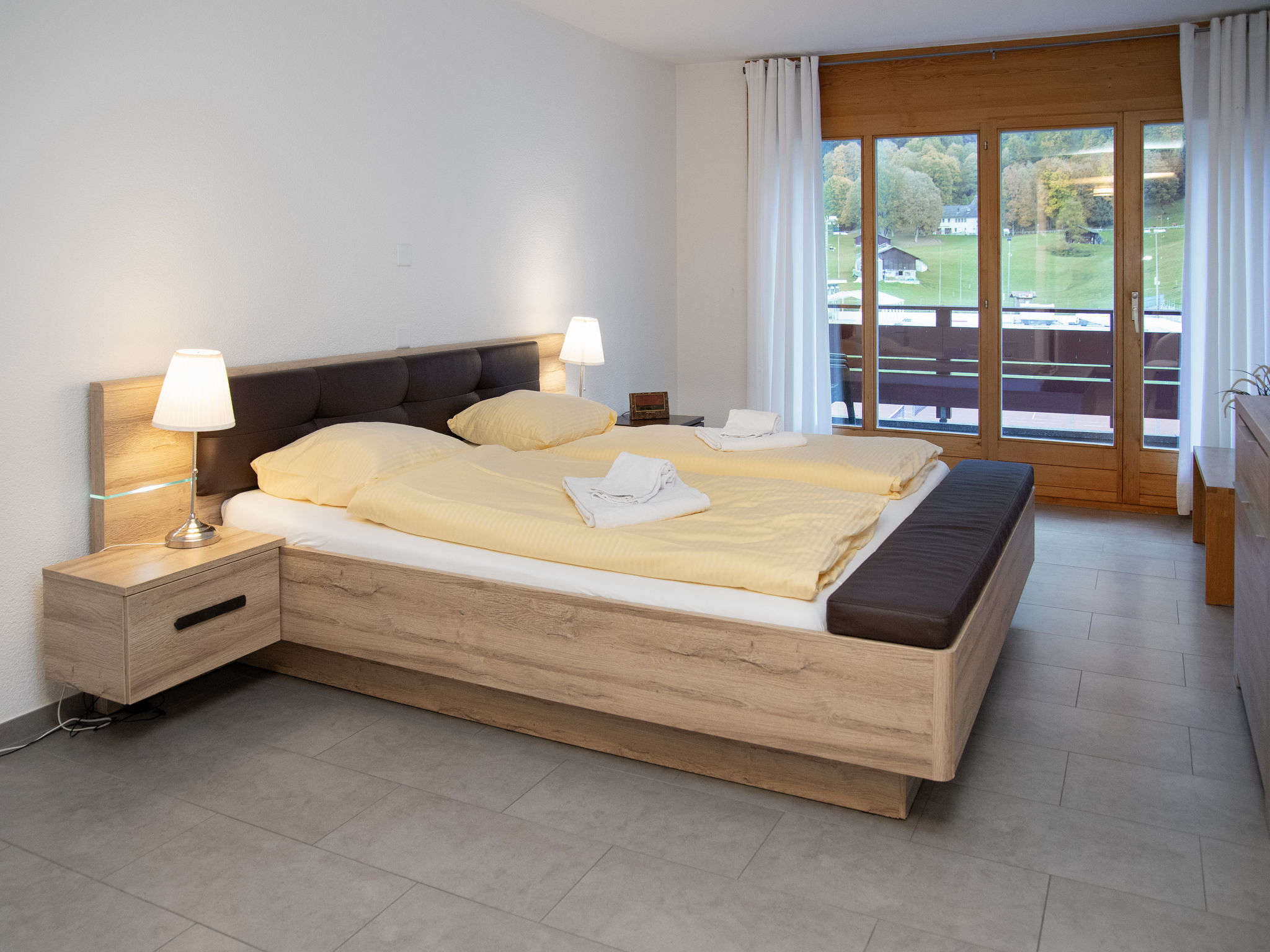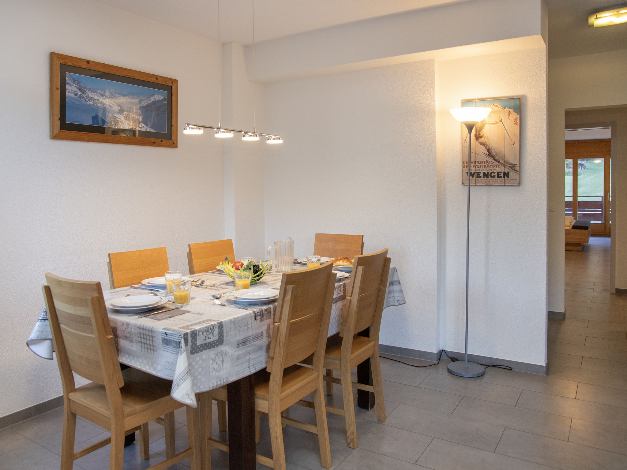 "Eiger Residence Apt.H", 3-Zimmer-Wohnung 112 m2 im 1. Stock. Geräumig und hell, modern und geschmackvoll eingerichtet: Wohn-/Esszimmer mit 1 Doppeldiwanbett (140 cm, Länge 180 cm), Kabel-TV, Flachbildschirm und Radio. 1 Zimmer mit 1 Doppelbett (2 x 90 cm, Länge 200 cm), Bad/WC. 1 Zimmer mit 2 Betten (90 cm, Länge 200 cm), Dusche/WC. Küche (Backofen, Geschirrspüler, 4 Glaskeramikplatten, Toaster, Wasserkocher, Mikrowelle, elektrische Kaffeemaschine, Kapseln für die Kaffeemaschine (Nespresso) extra). 2 Balkone. Schöne Sicht auf die Berge. Zur Verfügung: Haartrockner. Internet (Wireless LAN, gratis). Bitte beachten: Nichtraucher-Unterkunft.