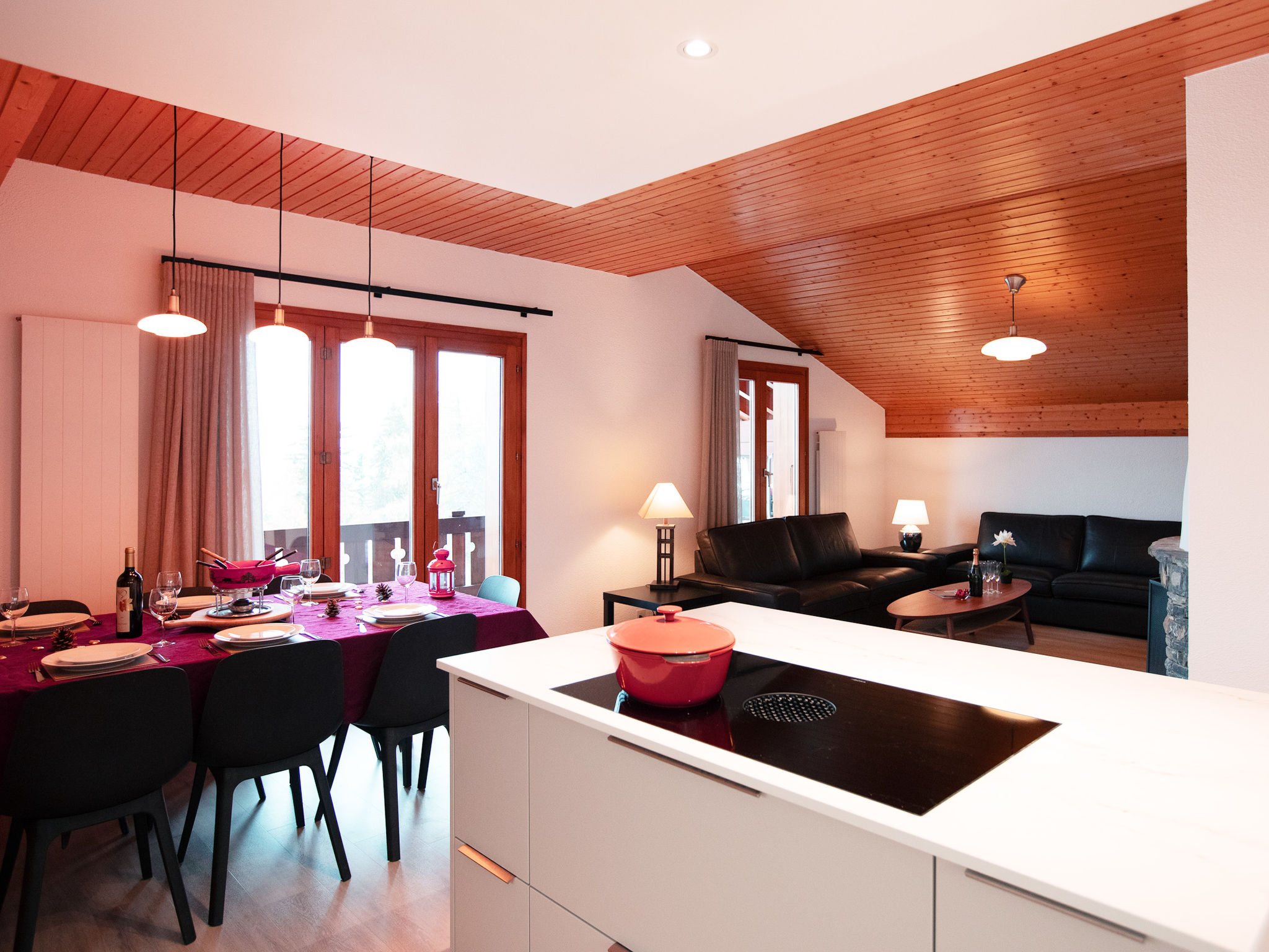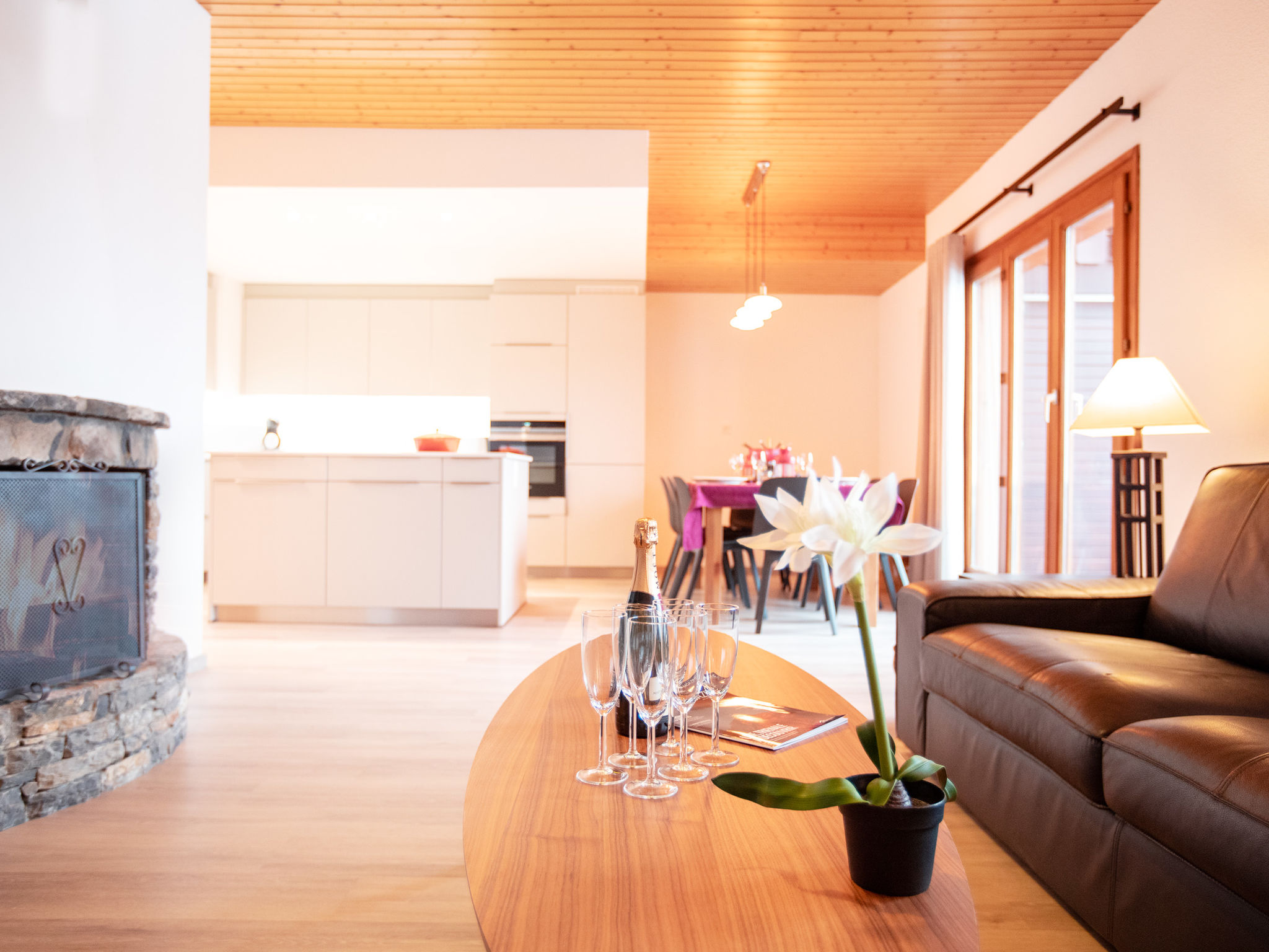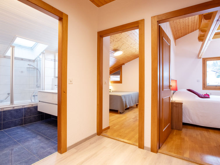 "Grand-Pont 15", 4-Zimmer-Wohnung 90 m2 im 2. Stock, Südlage. Teilweise im Jahre 2023, komfortabel und schön eingerichtet: Wohn-/Esszimmer mit offenem Kamin und Sat-TV (Flachbildschirm), CD und DVD. Ausgang zum Balkon. 2 Zimmer, jedes Zimmer mit 2 Betten. 1 Zimmer mit 2 Betten. Offene Küche (Backofen, Geschirrspüler, 4 Induktionskochplatten, Toaster, Wasserkocher, Mikrowelle, Tiefkühler, elektrische Kaffeemaschine, Kapseln für die Kaffeemaschine (Dolce Gusto) extra, Kombinationsmikrowelle, Fondue Set (Käse)) mit Bar. Bad/WC, Dusche/WC. Balkon 15 m2. Terrassenmöbel, Gartengrill. Sehr schöne Panoramasicht auf die Berge und das Tal. Zur Verfügung: Kinderhochstuhl, Haartrockner. Internet (Wireless LAN, gratis). Garage Nr. 15, Höhe 215 cm, Breite 300 cm. Bitte beachten: Nichtraucher-Unterkunft.