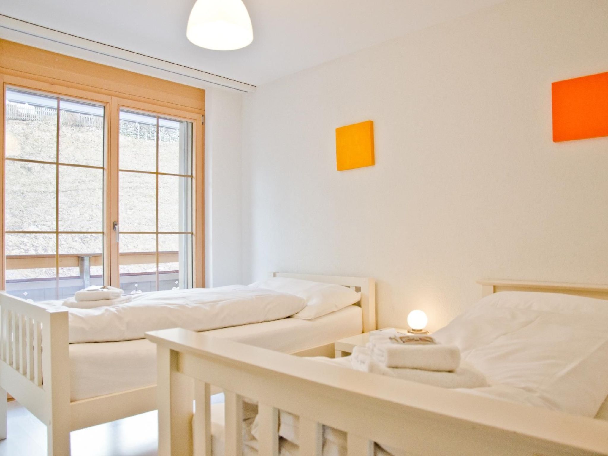 Hell, praktisch und nahe an der Piste – die moderne 4.5-Zimmerwohnung befindet sich im 1. Stock und verfügt über einen tollen Balkon mit fantastischer Aussicht auf die Eigernordwand. Auf 100m2 befinden sich zwei Schlafzimmer mit Doppelbetten, ein Schlafzimmer mit zwei Einzelbetten, ein Badezimmer mit Badewanne und WC sowie ein Badezimmer mit Dusche und WC. Der Wohn-Essbereich schliesst direkt an die praktische Küche an. Mit dem Lift gelangen Sie direkt aus der Garage vor die Haustür.