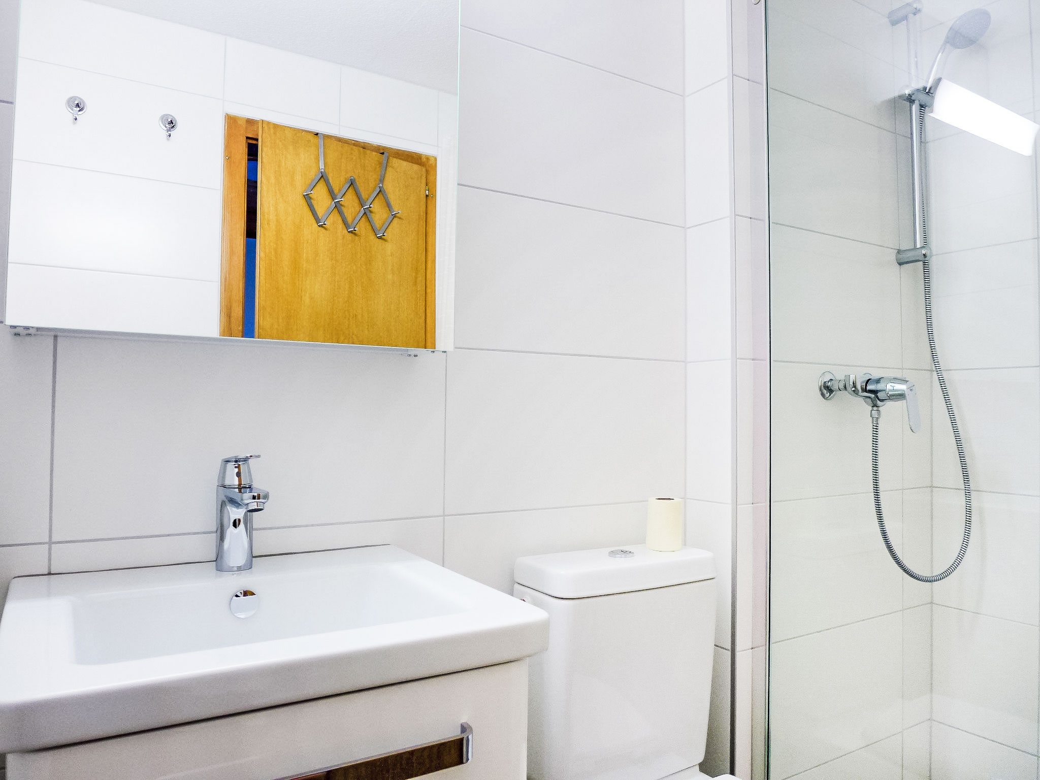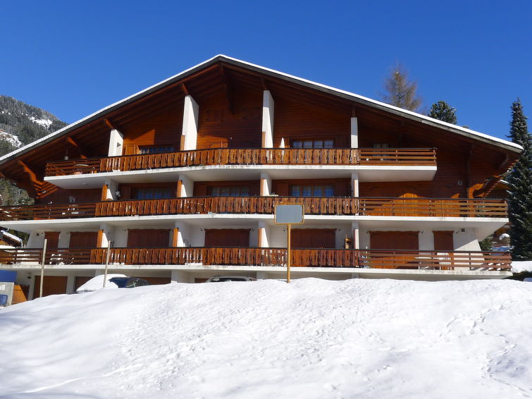 "Ermitage 13", 3-Zimmer-Wohnung 66 m2 auf 2 Stockwerken im 2. Stock, Südlage. Komfortabel und schön eingerichtet: Wohn-/Esszimmer mit TV und DVD. Ausgang zum Balkon, Richtung Süden. Kochnische (4 Kochplatten, Backofen, Toaster, Wasserkocher, elektrische Kaffeemaschine, Racletteofen, Fondue Set (Käse)). Bad/WC. Heizung. Obergeschoss: (steile Treppe) 1 Zimmer mit 2 Betten. 1 Zimmer mit 2 Betten. Kleiner Balkon 9 m2, Südlage. Balkonmöbel. Schöne Panoramasicht auf die Berge und das Tal. Zur Verfügung: Bügeleisen, Haartrockner. Internet (Wireless LAN, gratis). Bitte beachten: Nichtraucher-Unterkunft.