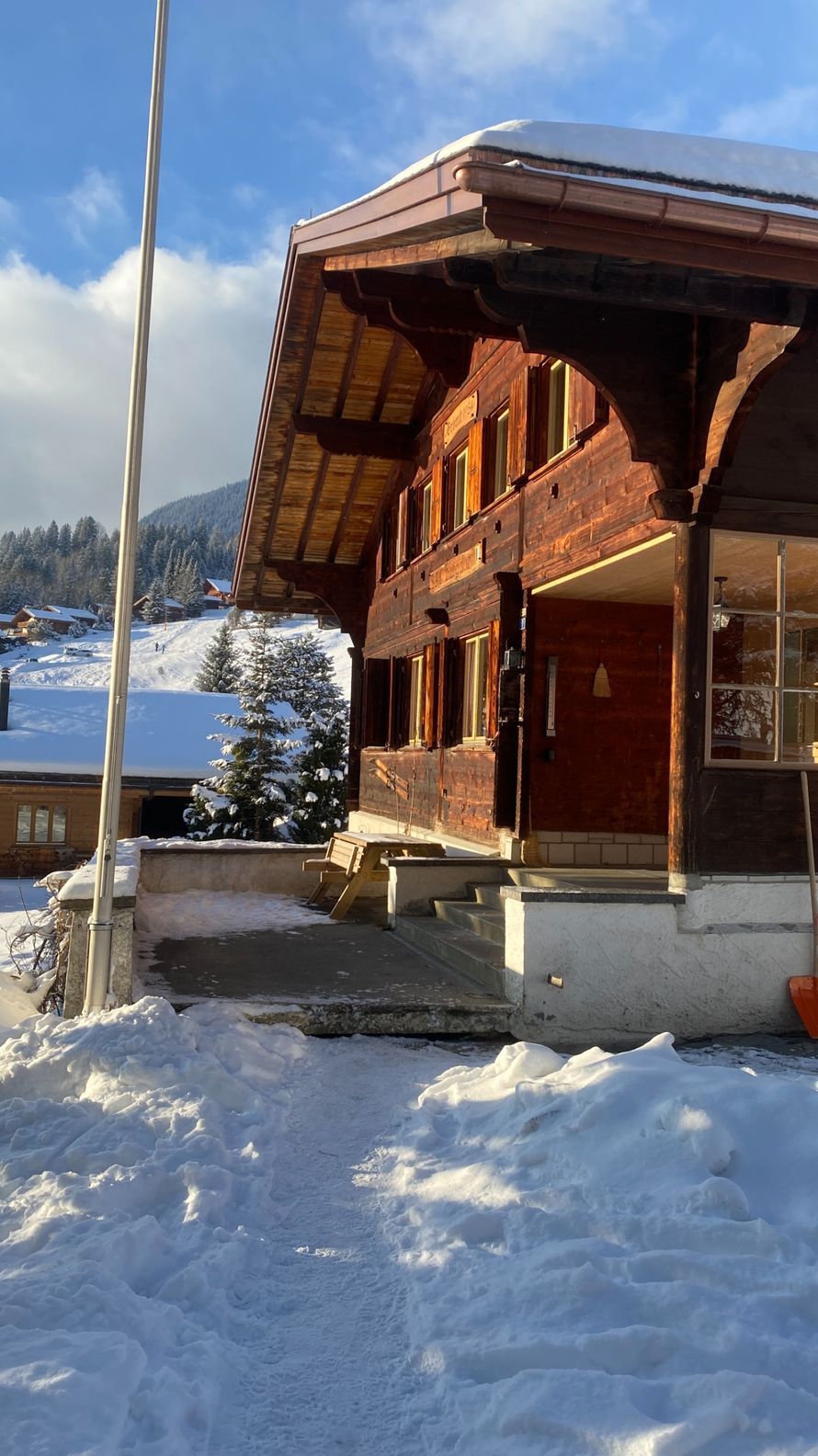 Willkommen in Deinem Gruppenhaus am Nordende von Grindelwald (Kanton Bern, Schweiz)! Nur wenige Schritte von der Skipiste Bort–Grindelwald und der Strasse zum Oberen Gletscher entfernt, findest Du hier den perfekten Ort für Deinen nächsten Aufenthalt in den Bergen. Umgeben von Wohn- und Ferienhäusern, beginnt direkt hinter dem Haus saftiges Weideland – im Sommer wird hier Heu geerntet, im Herbst grasen Kühe.